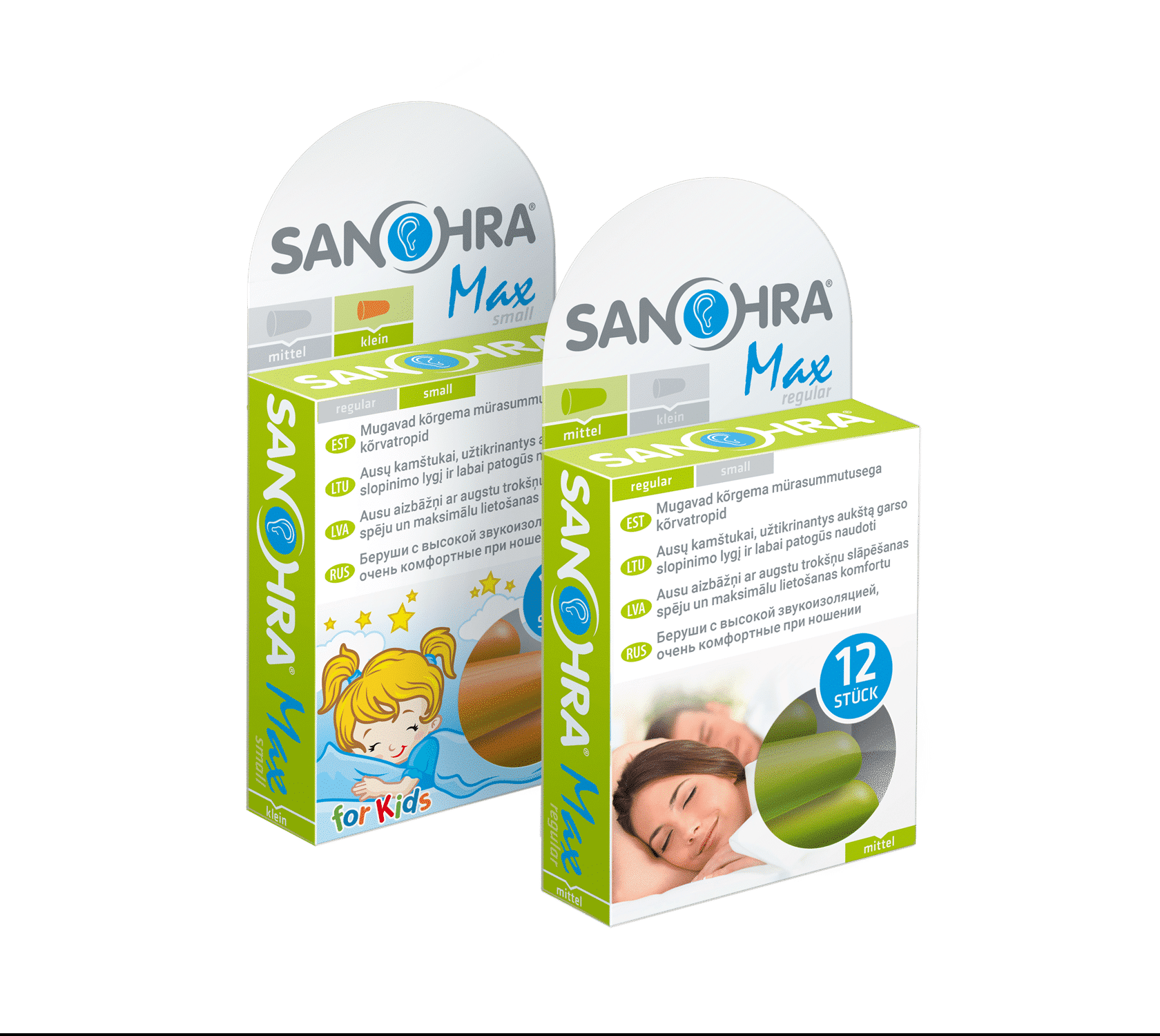 Verta išmėginti ausų kištukus garso izoliacijai. “SANOHRA max” gali praversti, jei norisi su mažaisiais keliautojais apsilankyti koncerte ar lenktynių trasose, kur triukšmo lygis būna aukštas. Beveik linijinis garso slėgio sumažinimas per girdimą garso spektrą užtikrina labai sumažintą, bet neiškreiptą muzikos ar triukšmo suvokimą. Ausų kištukai pagaminti iš minkštos, lanksčios putų medžiagos ir tinka vaikams nuo 1 metų amžiaus.