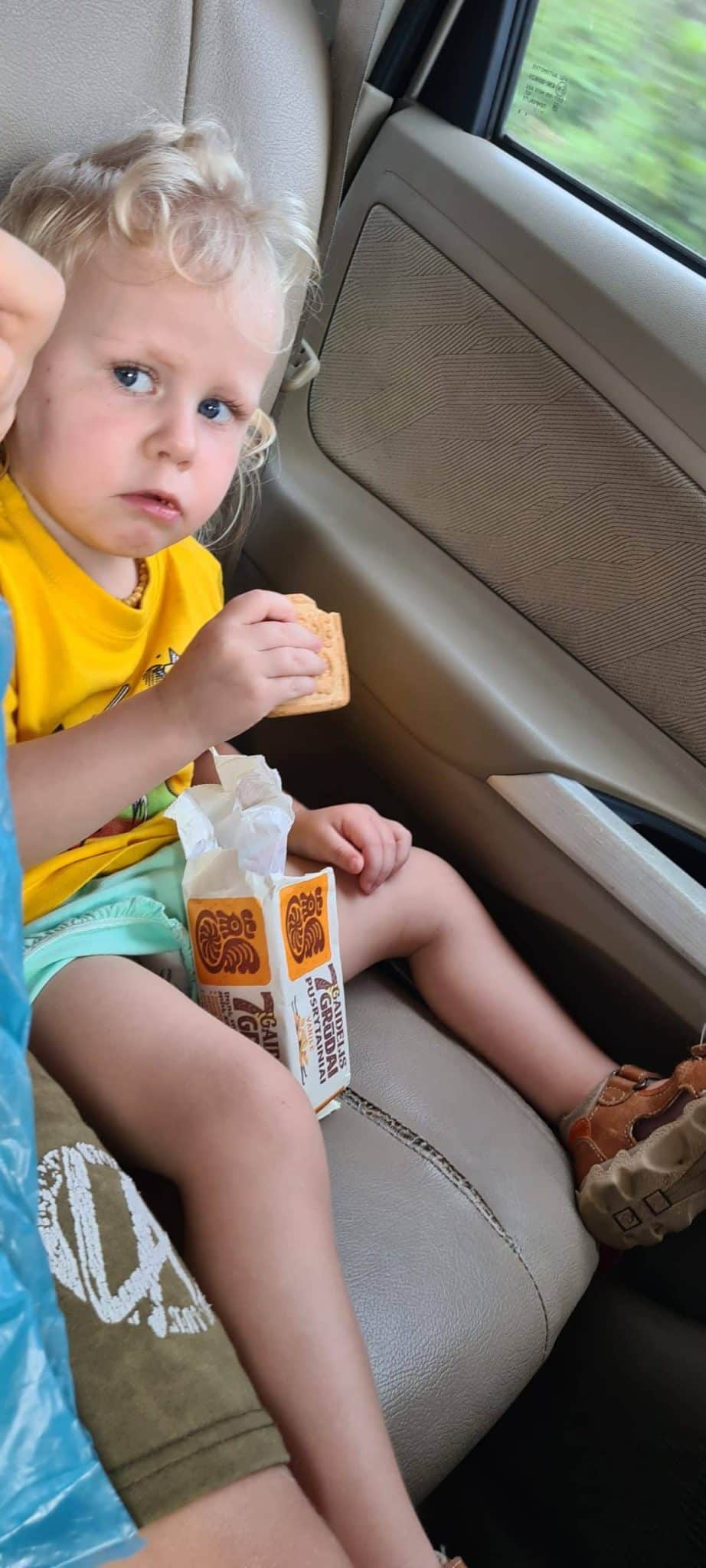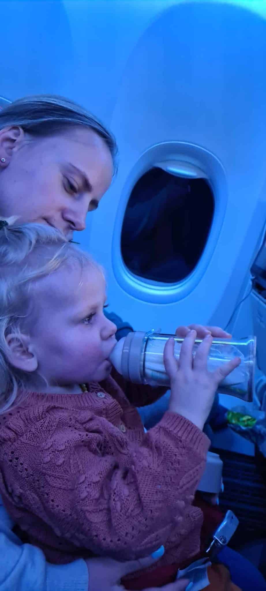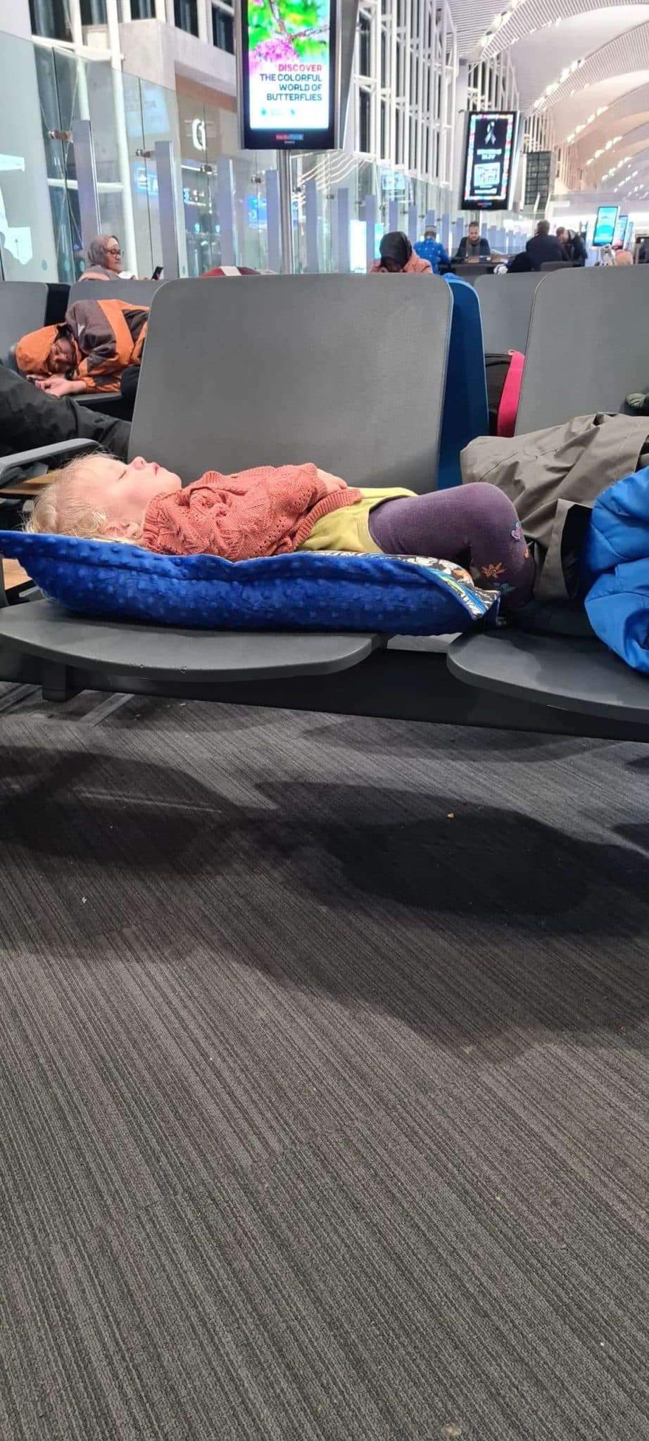 Skristi su vaiku iki 2 metų nėra itin patogu, bet mes pasistengėme šią kelionę pasidaryti maksimaliai patogią, įsigydami pagalvėlę-transformerį. Ji ne tik puikiai pasitarnavo skrydžio metu, bet tapo vyresnėlio (kad ir kaip bebūtų keista) mylimiausia pagalve ir namuose! Iš tiesų, skrydžiai nelabai prailgo, viskas klostėsi gana neblogai. Visi turėjome progos nusnausti.