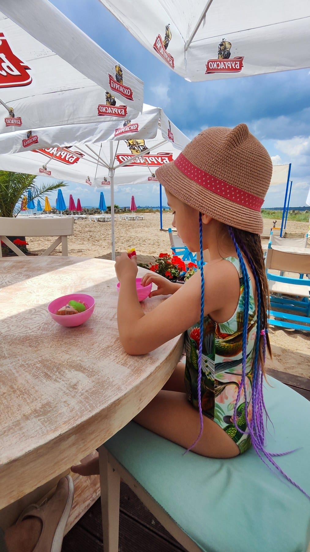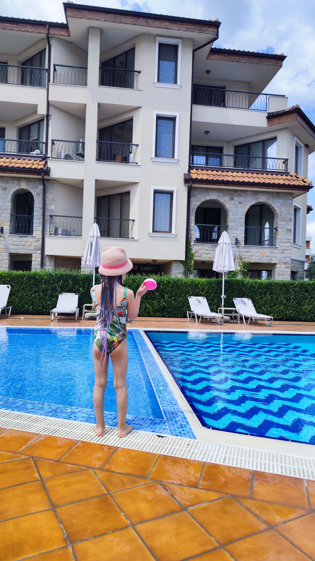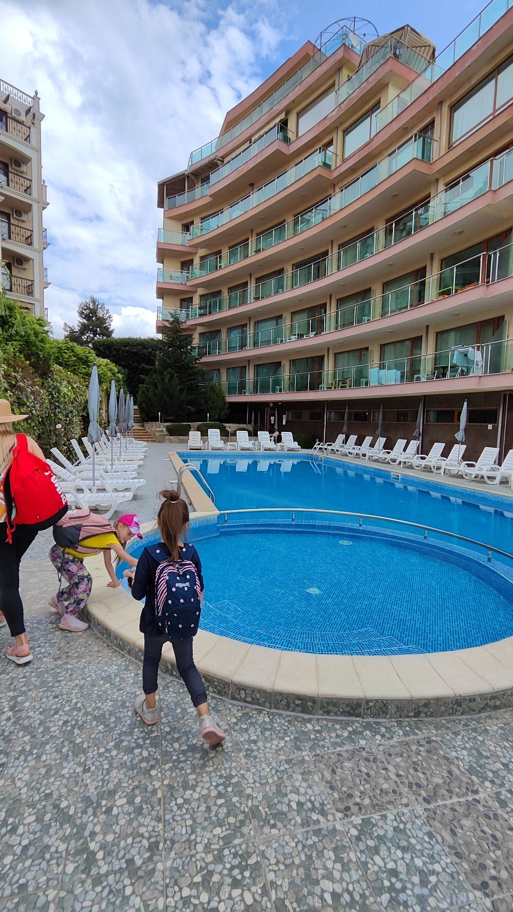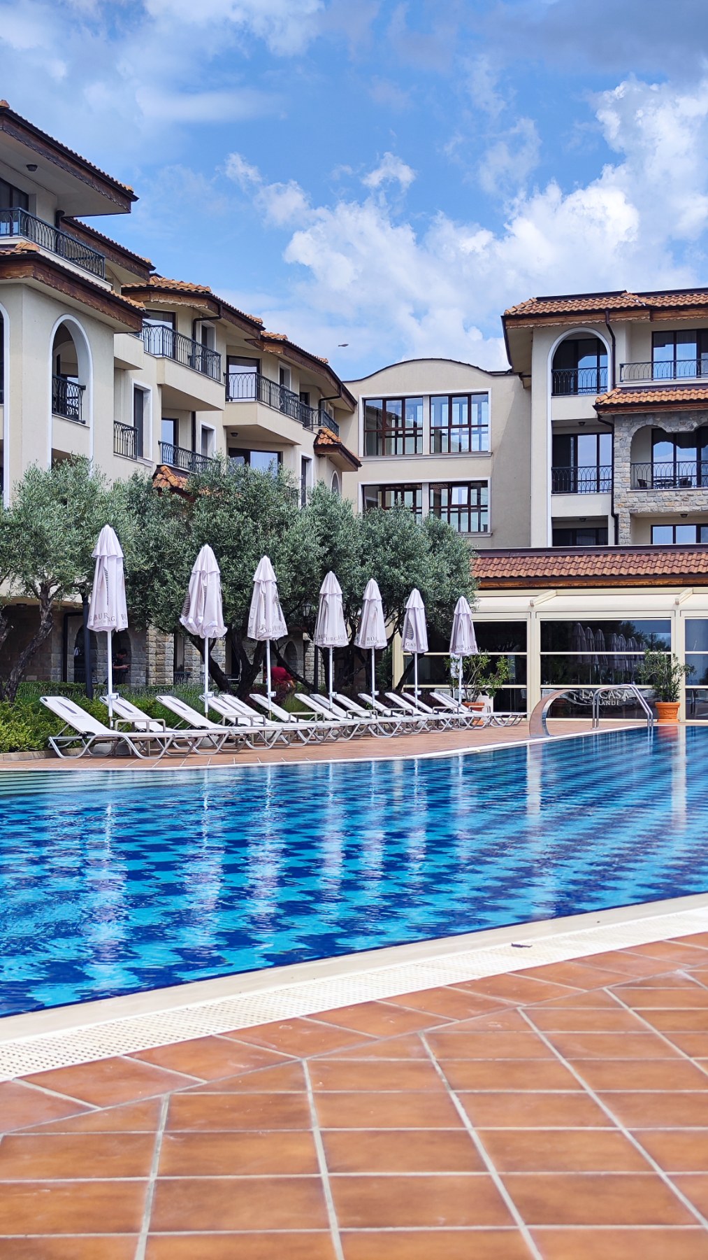 Antras apartamentų viešbutis Burgas Beach resort labai labai patiko. Čia jau ir oras pasitaisė. Labai rekomenduojame ramaus, kokybiško šeimyninio poilsio mėgėjams. Apartamentai su virtuvėle, viskas modernu, įėjimai skaitmenizuoti (su rakto čipu), švaru, teritorija sutvarkyta, vaizdinga – pradedant baseinu su seklesne dalimi vaikams, baigiant žydinčiais augalais ir tvarkingu paplūdimiu šalia. Yra nedidelė vaikų žaidimo aikštelė prie baseino su supynėmis ir paplūdimy prie baro. Aptarnavimas labai paslaugus ir malonus. Veikia restoranas (atsidarė tik mūsų išvykimo dieną, tai neišbandėme, bet tikrai tikime, kad geras įvertinant visą servisą).