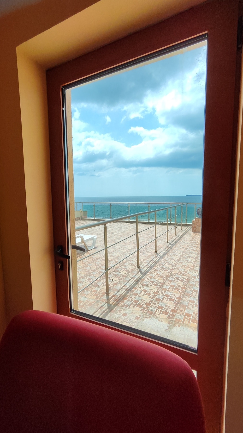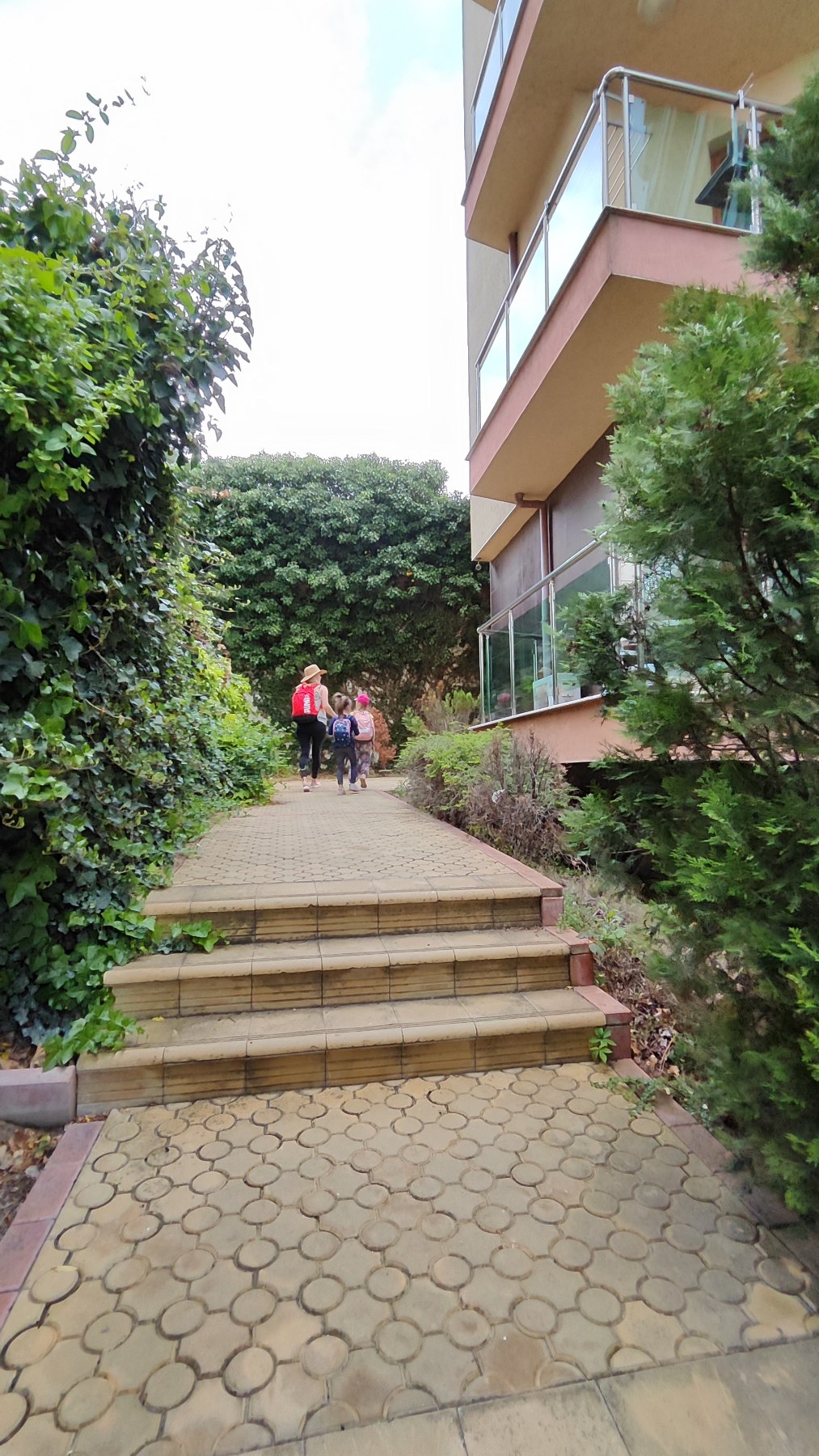 Apartamentų pastatas dar kiek tuštokas atrodė, ne sezonas, baseine vanduo šaltas, tad net nebandėme. Ypatingai keista pasirodė „raktų sistema”. Ji elektroninė, įeinant į kambarį reikia ant rankenos suvesti pin kodą. Bet keisčiausia, kad VISIEMS registruojant davė tą patį, t.y. ir prieš mus registruojamiems svečiams, ir mums… pin-1234… Tai išgirdusios, mes pareikalavome pin mūsų kambariui pakeisti į individualų.