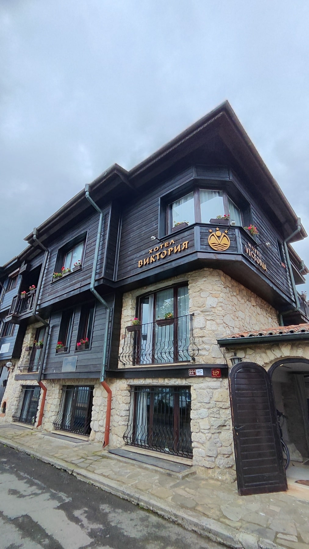 Kambariai kiek senovinio dizaino, bet švarūs, kad labai tvarkingi būtų, nepasakyčiau. Neveikė TV nei viena programa (atsiprašė, kad visam viešbutyje taip tądien) ir pastebėjome po pusdienio, kad iš kondicionieriaus visa pelkė miegamam prilašėjusi. Bet administracija labai atsiprašė, atsiuntė mums saldainių dėžę ir vietinio vyno dovanų. Tai puikiai panaudojome ir terasą vakariniams pasisėdėjimams. Na, ir visą informaciją, kokios tik bereikėjo – įskaitant autobusų grafiką ar SPA pasiūlymus gretimuose viešbučiuose suteikė labai maloniai 😀