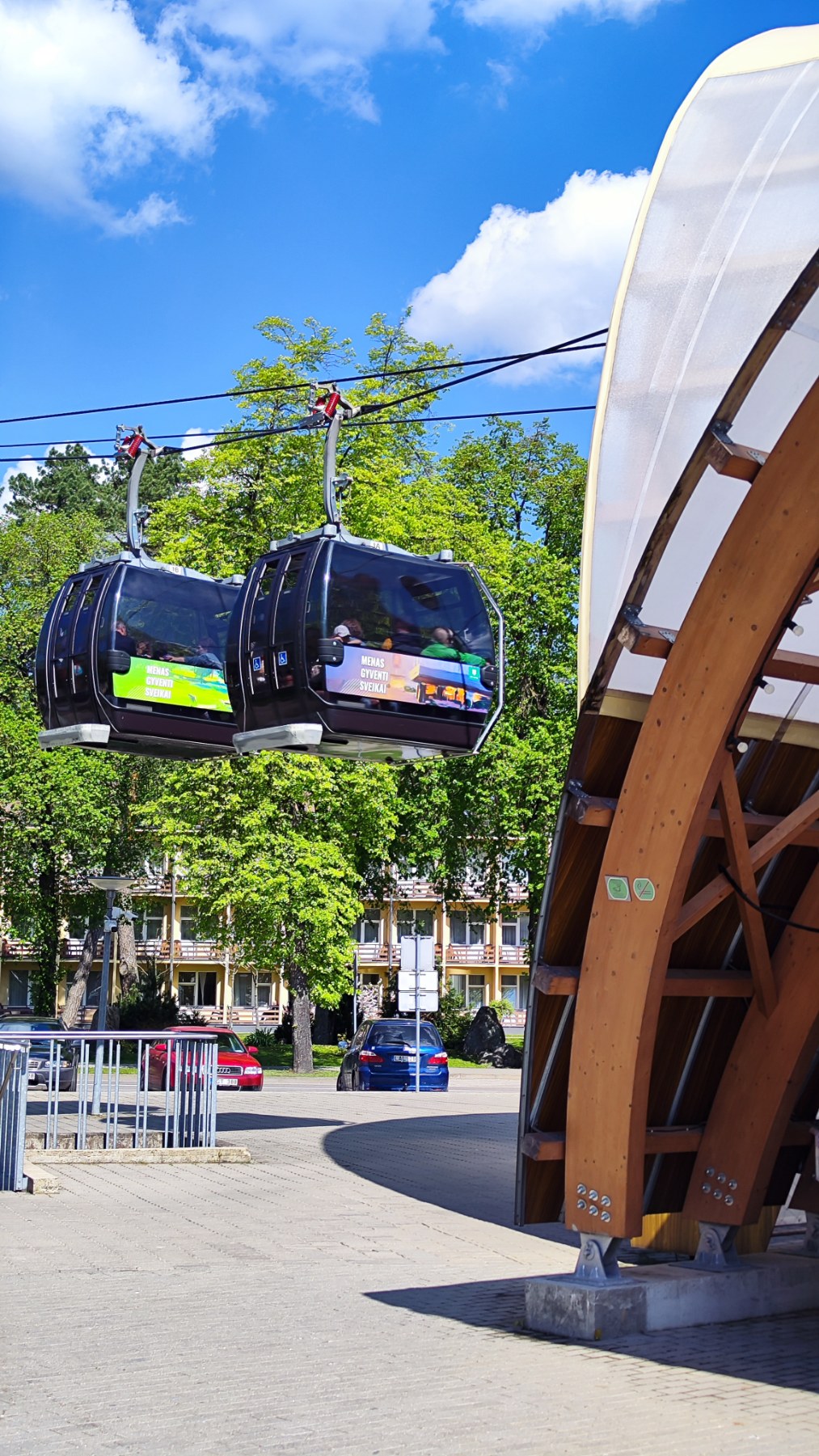 Užkilę „Lynų keliu”, visada pakylame dar aukščiau į apžvalginę aikštelę (reikia paėjėti kairiau išlipus iš keltuvo), kylame liftu iki kavinės, kuri, deja dar neveikia. Čia jau turime net savo mėgiamą foto vietą.