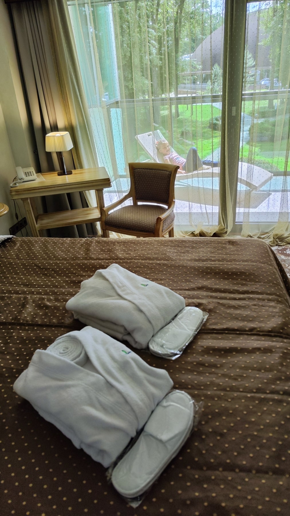 Po festivalio (kad ir koks jaukus jis buvo) ir miego palapinėse norėjosi tobulo poilsio. Todėl šįkart rinkomės Grand SPA viešbučių kompleksą. Čia galite rinktis net kelis apsistojimo variantus: „Lietuva” 3*Pius (kur šeimų su vaikais laukia patogūs dviviečiai, tarpusavyje sujungiami kambariai), Druskininkai (4*) ir apartamentų viešbutis „Dzūkija” (4*Plius apartamentai prabangiam poilsiui). Mes pasirinkome pastaruosius. Kodėl? Nes jie labiausiai pritaikyti šeimoms su vaikais: yra virtuvėlė su visais reikalingais indais, erdvi lodžija su saulės gultu, staliuku ir krėslais. Apartamentuose rasite visas reikiamas higienos priemones ir sniego baltumo chalatus jums ir vaikams! Pusryčius galite gamintis patys arba rinktis švediško stalo pusryčius „Lietuva” arba „Druskininkai” viešbučiuose. O prieš pusryčius – būtinai užsukite į įspūdingą biuvetę, atsigerti mineralinio vandens. Taip, skonis ne limonado, bet sveika!