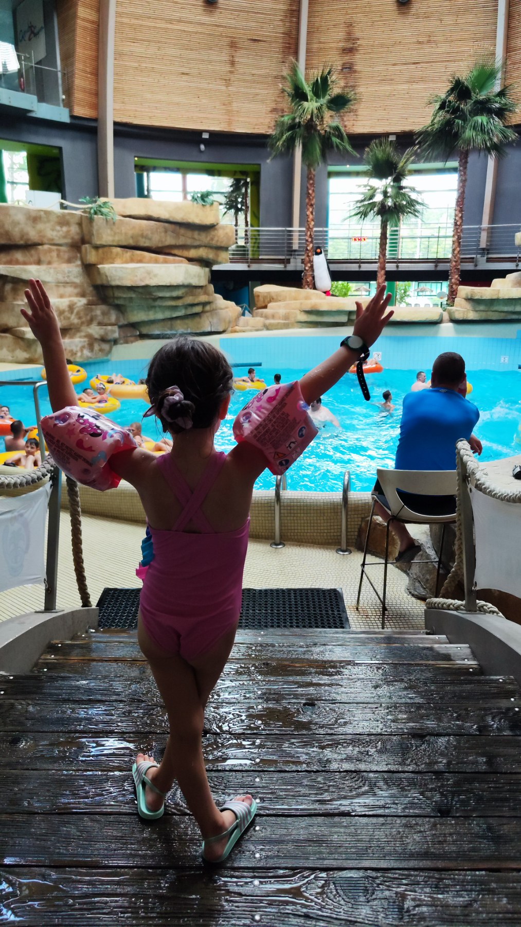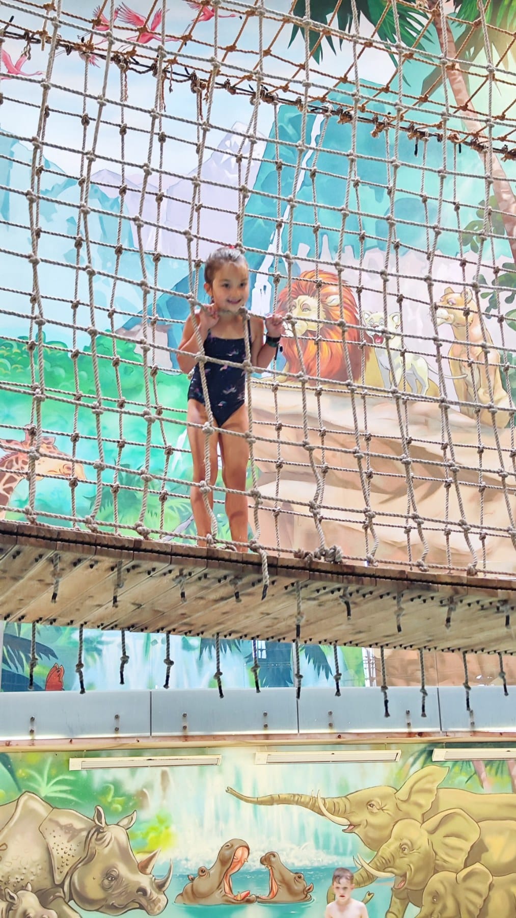 Turbūt mėgiamiausia AQUA vandens parko dalis penkiametėms – vaikų zona. Čia grindys neslidžios, yra ir šilto vandens paplūdimys su bangomis bei tikru smėliu, kabantis tiltas, netikėtas tropinis dušas, nuo sienų žvelgia džiunglių gyvūnai. Gal nelabai kaip mamos pritariame, bet tikras vaikų džiaugsmas – čia supantis pripučiamoje padangoje ant bangų, vaikai gali žiūrėti ir filmukus.