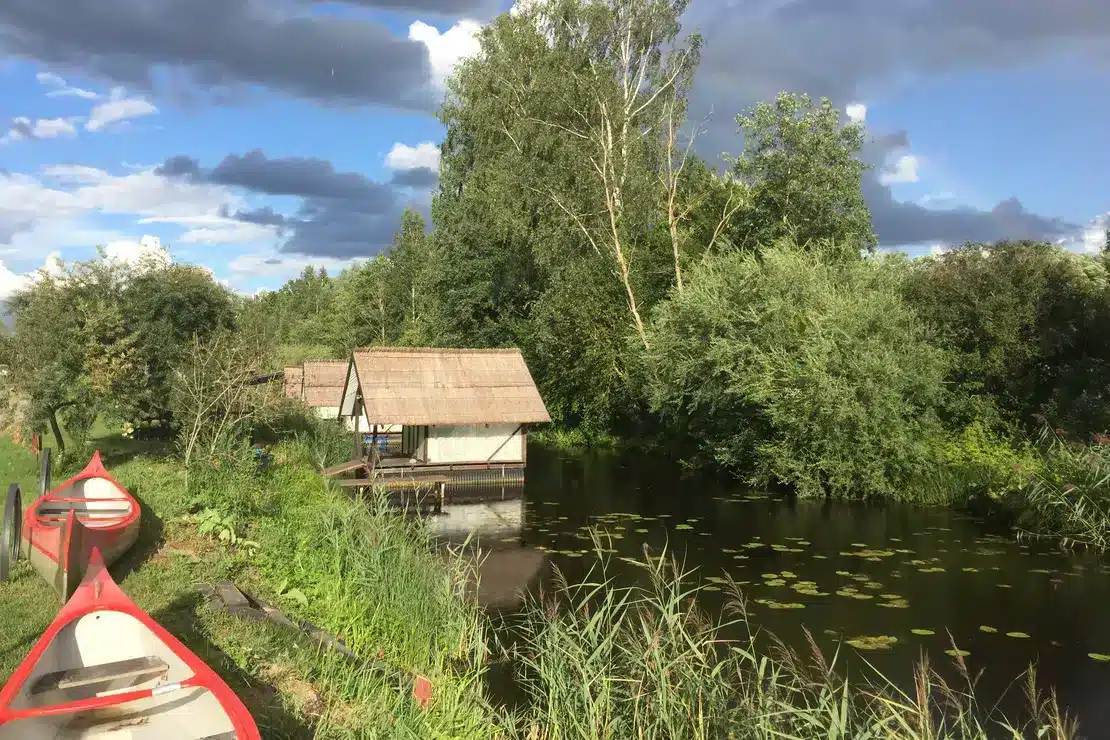 Nakvynės galimybės: yra vieta palapinėms ir nameliams ant ratų bei 3 nameliai ant vandens, turintys savo terasas.