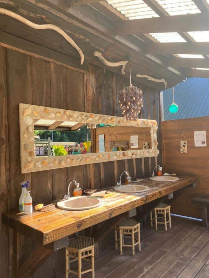 Kempingo infrastruktūra: 2 dušai, 2 WC, pilnai įrengta virtuvė ir skalbimo mašina. Taip pat yra poilsio zona su hamakais.