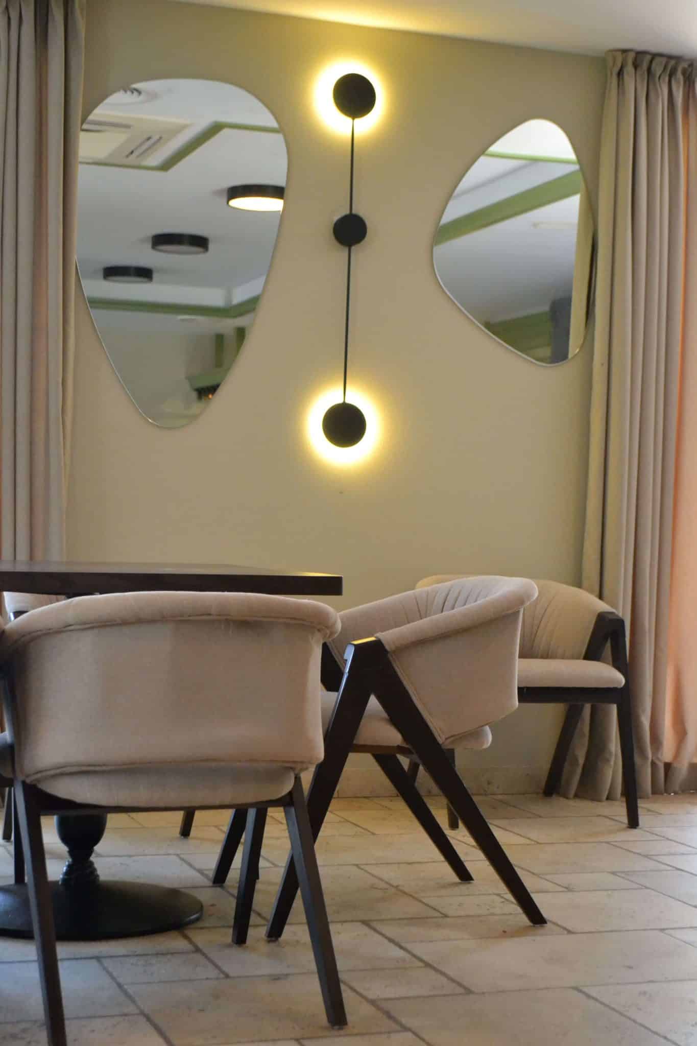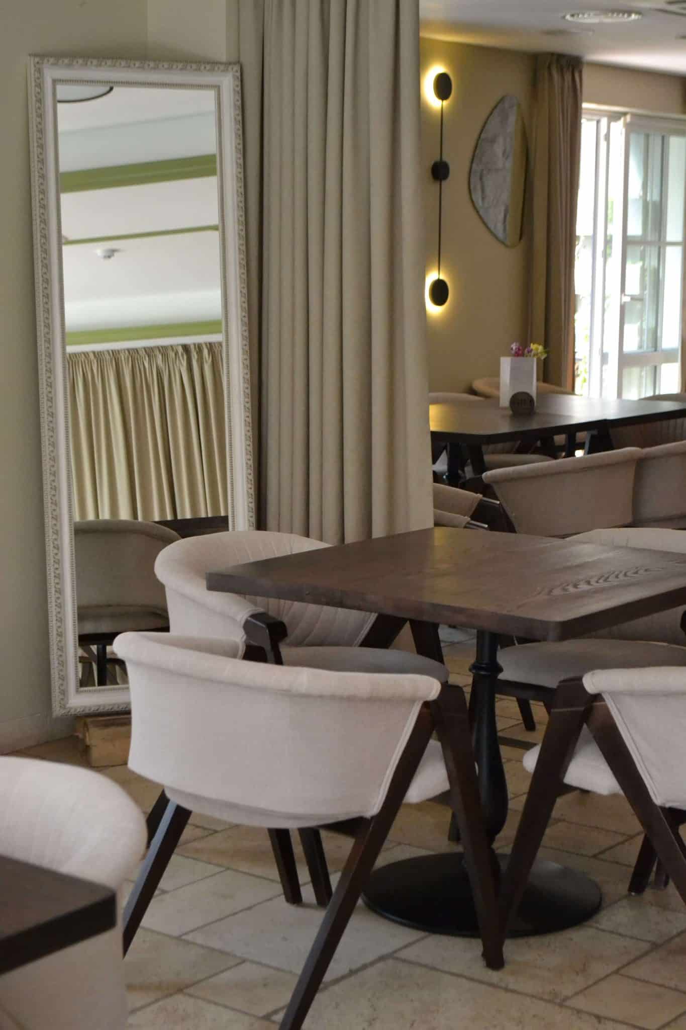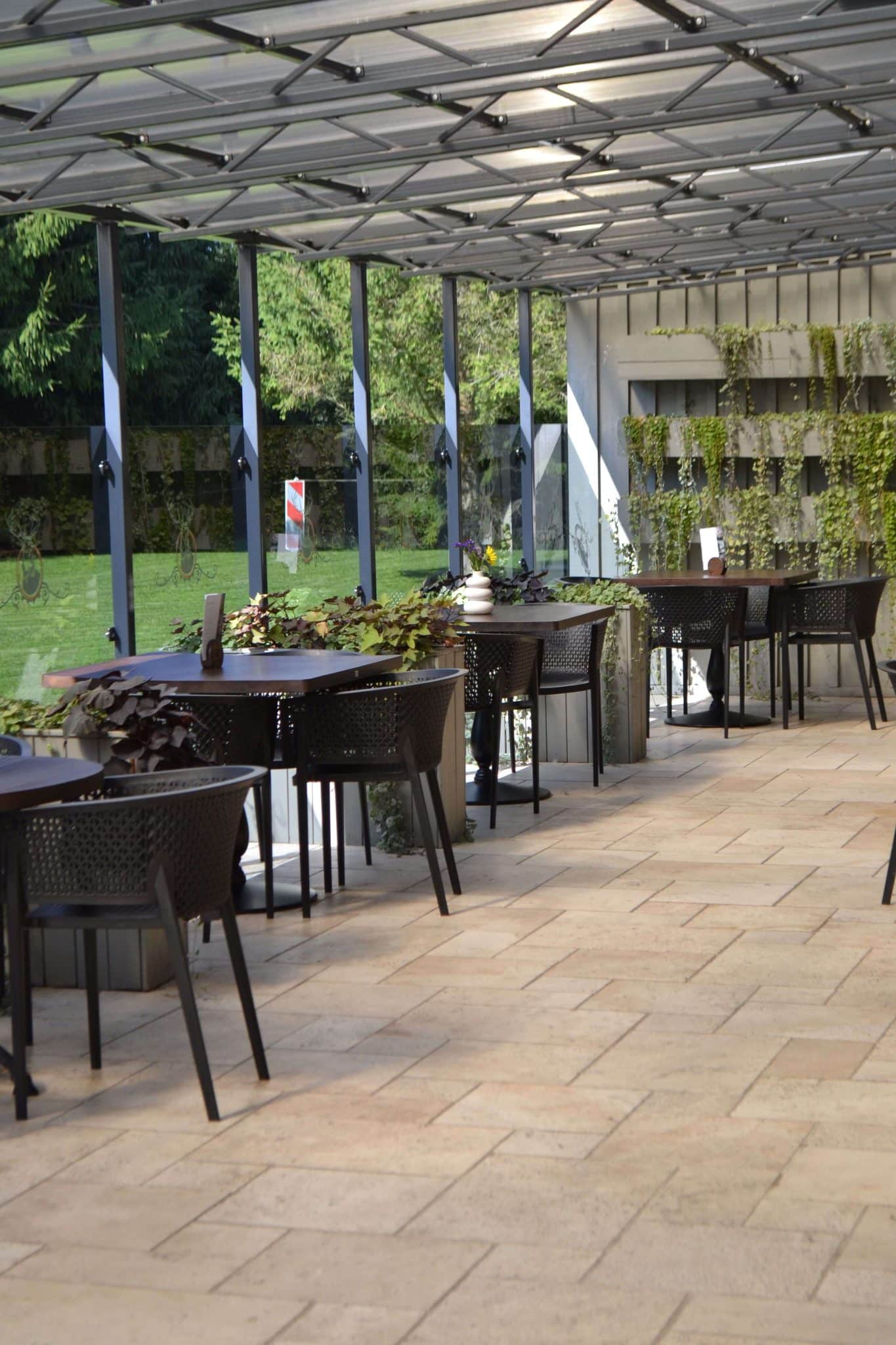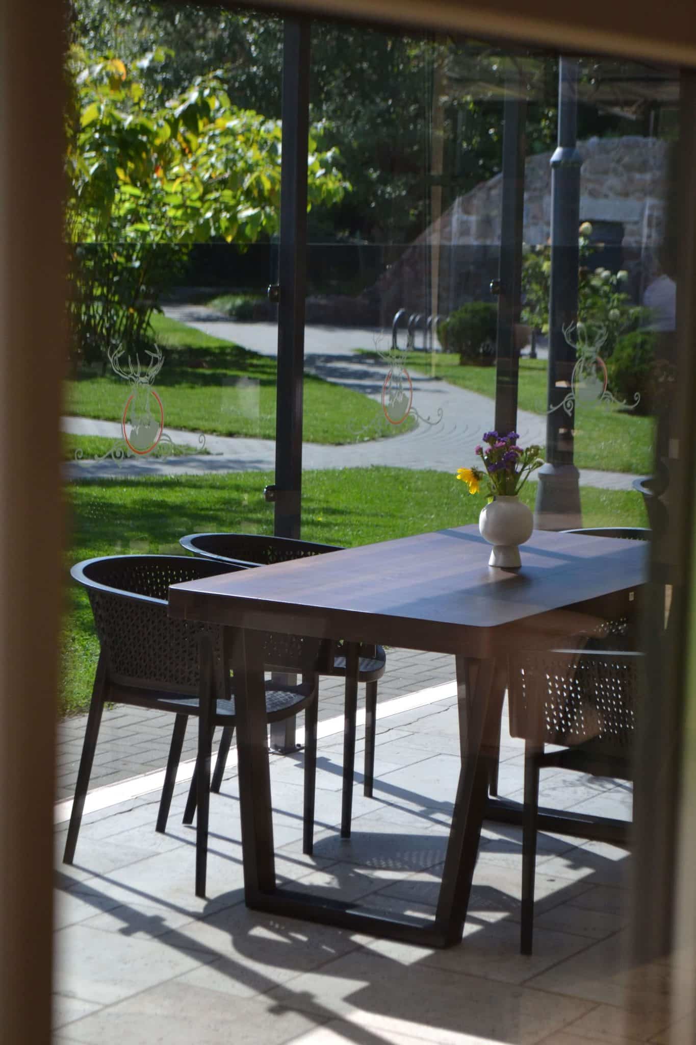 Lankytojų laukia stilingas restoranas, turintis kelias lauko terasas. Švęsti šventes, mėgautis pusryčiais ar sočiai pietauti gamtos prieglobstyje galima net esant nepalankiam orui – tai leidžia erdvi stiklo terasa.