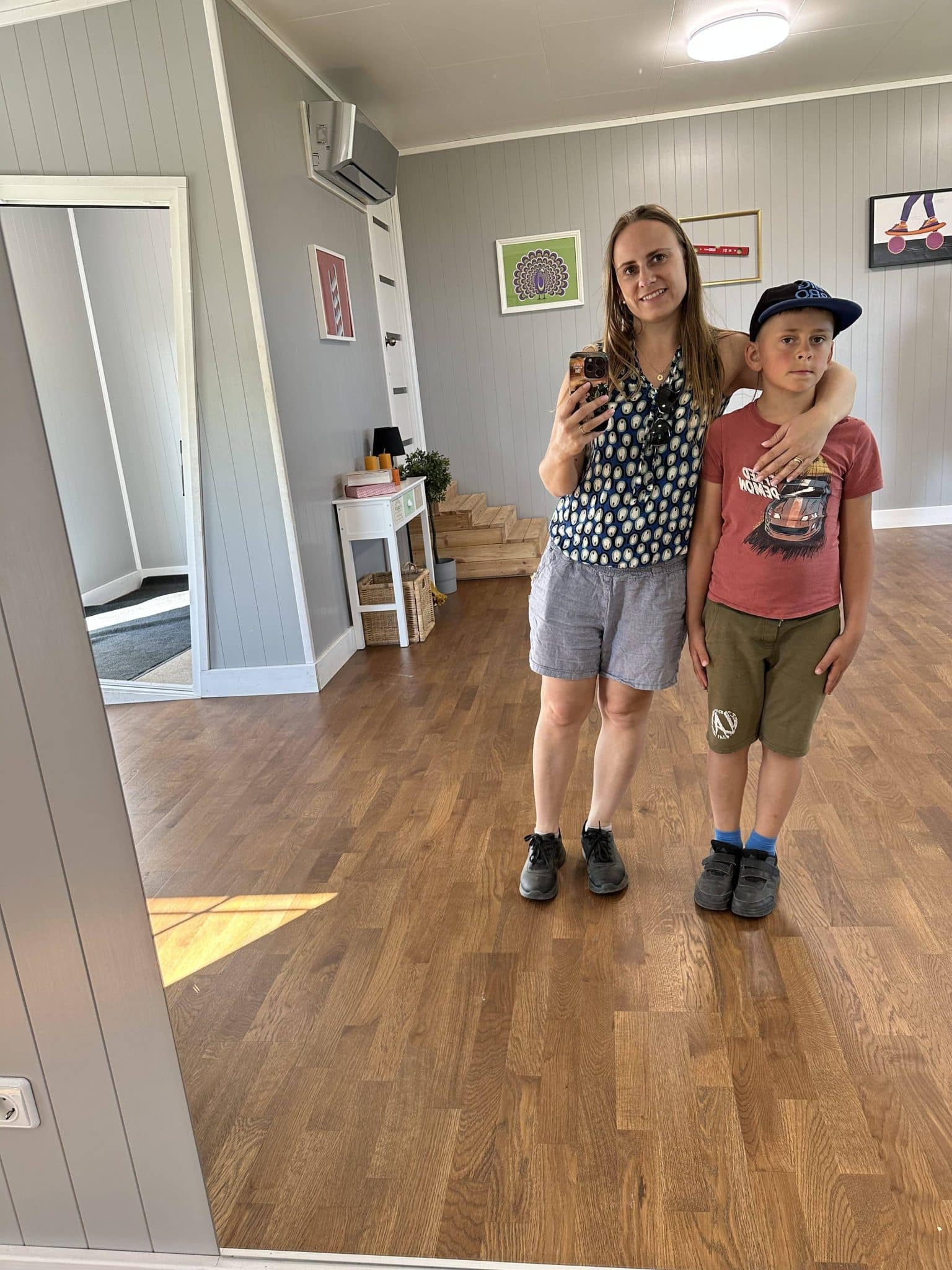 Pažintį su miesteliu tęsėme užsukę į pasvirusį namą. Iš pirmo žvilgsnio atrodo nieko įspūdingo, bet įėjus vidun, apima nesvarumo būsena – norisi kažkur įsikibti ir eiti palengva. Žinoma, visai kitokie įspūdžiai vaikams: jiems nesvarumas be galo patiko, lakstė aukštyn žemyn, tyrinėjo ant sienos kabančius piešinius bei kitas dekoracijas, drąsiai žengė pasvirusiomis grindimis be jokios baimės pargriūti.