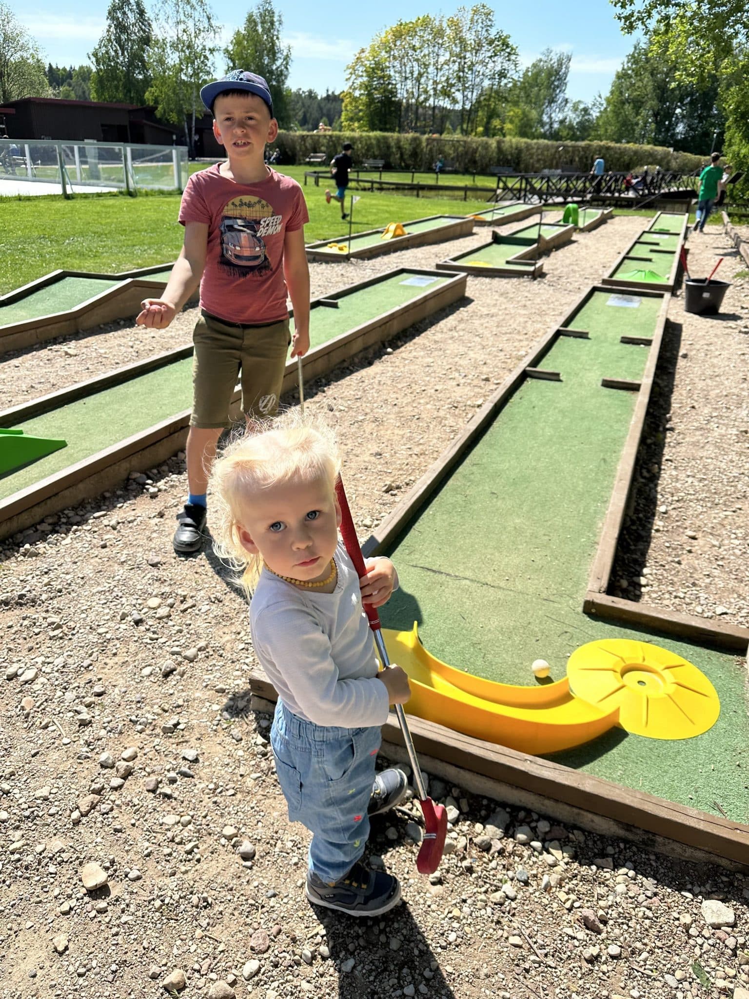 „Labirintų parke“ daugybė pramogų mažiesiems vaikams: mažajai 2 metukų keliautojai be galo patiko „Safari traukinukas“, traukinukas, vežantis po visą labirintų teritoriją, vaikų žaidimo aikštelė ir, žinoma, triušiukai! Aštuonmečiui patiko aktyvios pramogos: daugybę kartų vienas leidosi nuo kalnelių su padangomis, kartu su tėčiu mokėsi žaisti golfą, varžėsi mėtydami į krepšinį, išbandė savo vairavimo įgūdžius, taiklumą šaudykloje.