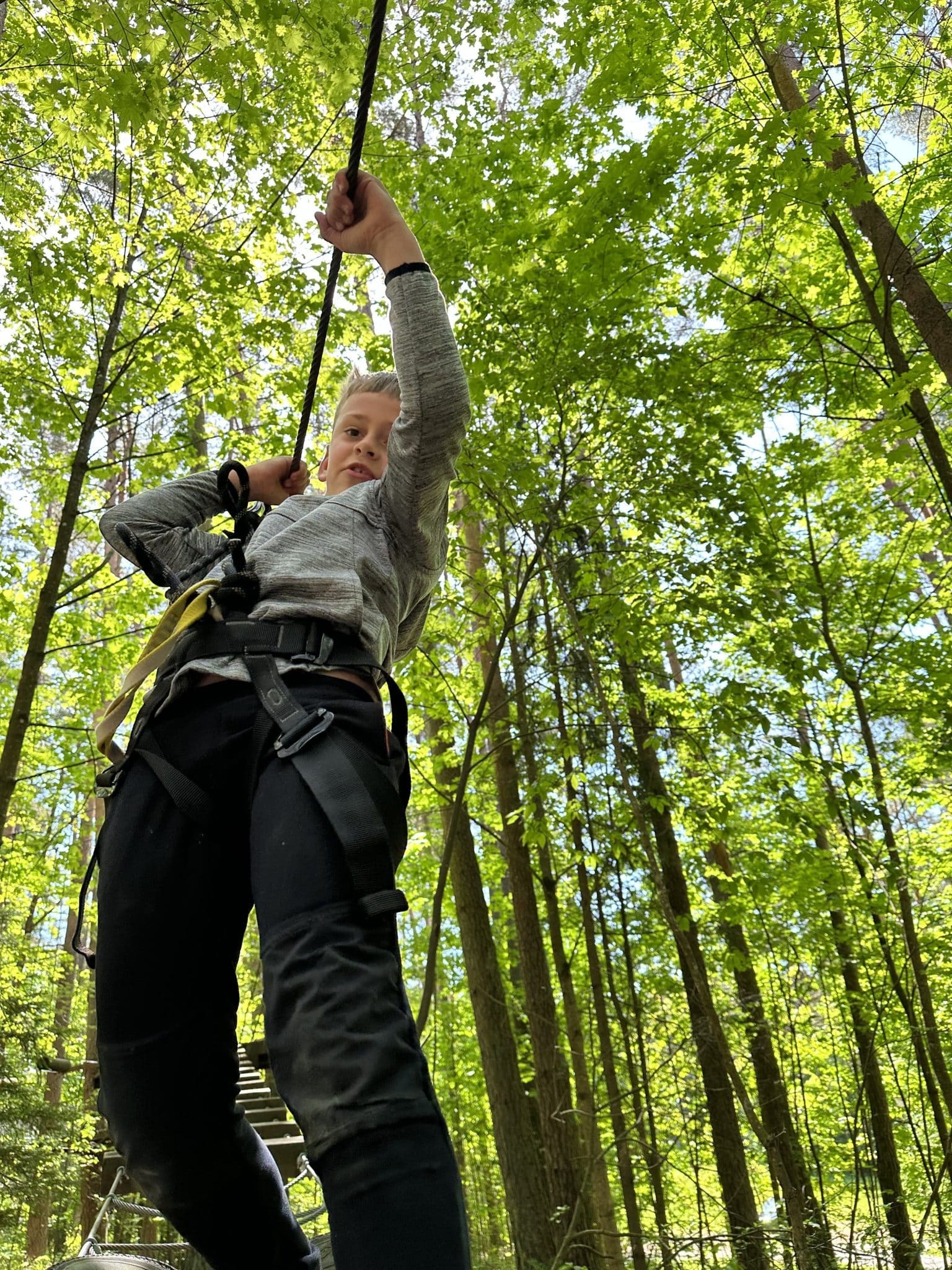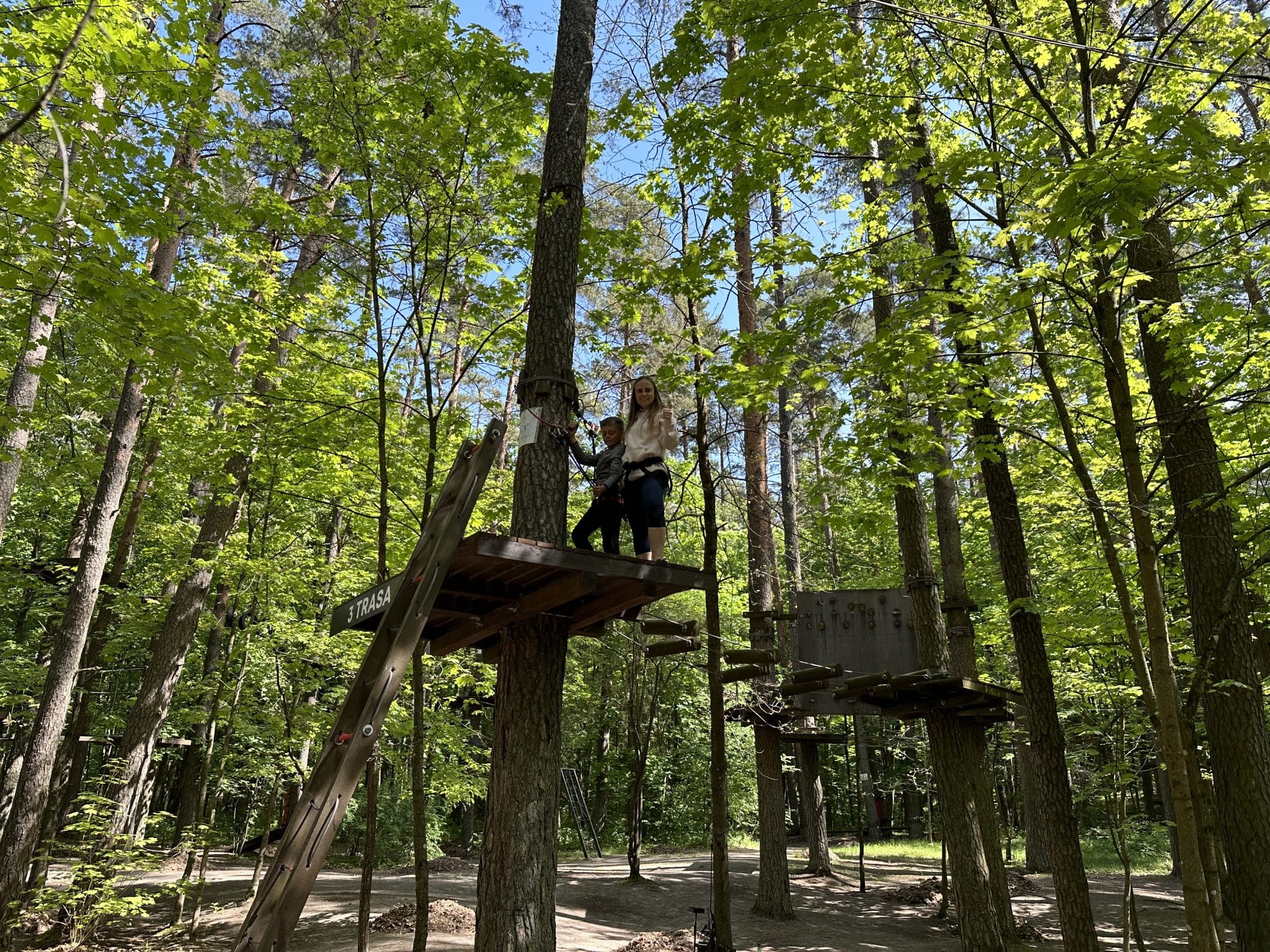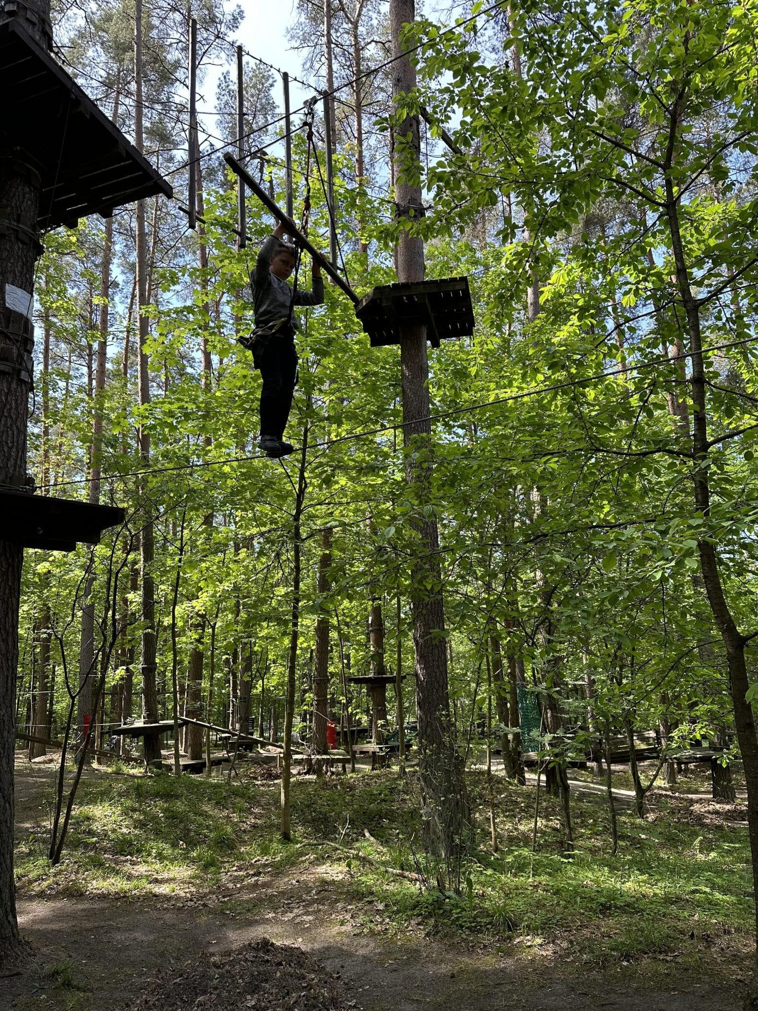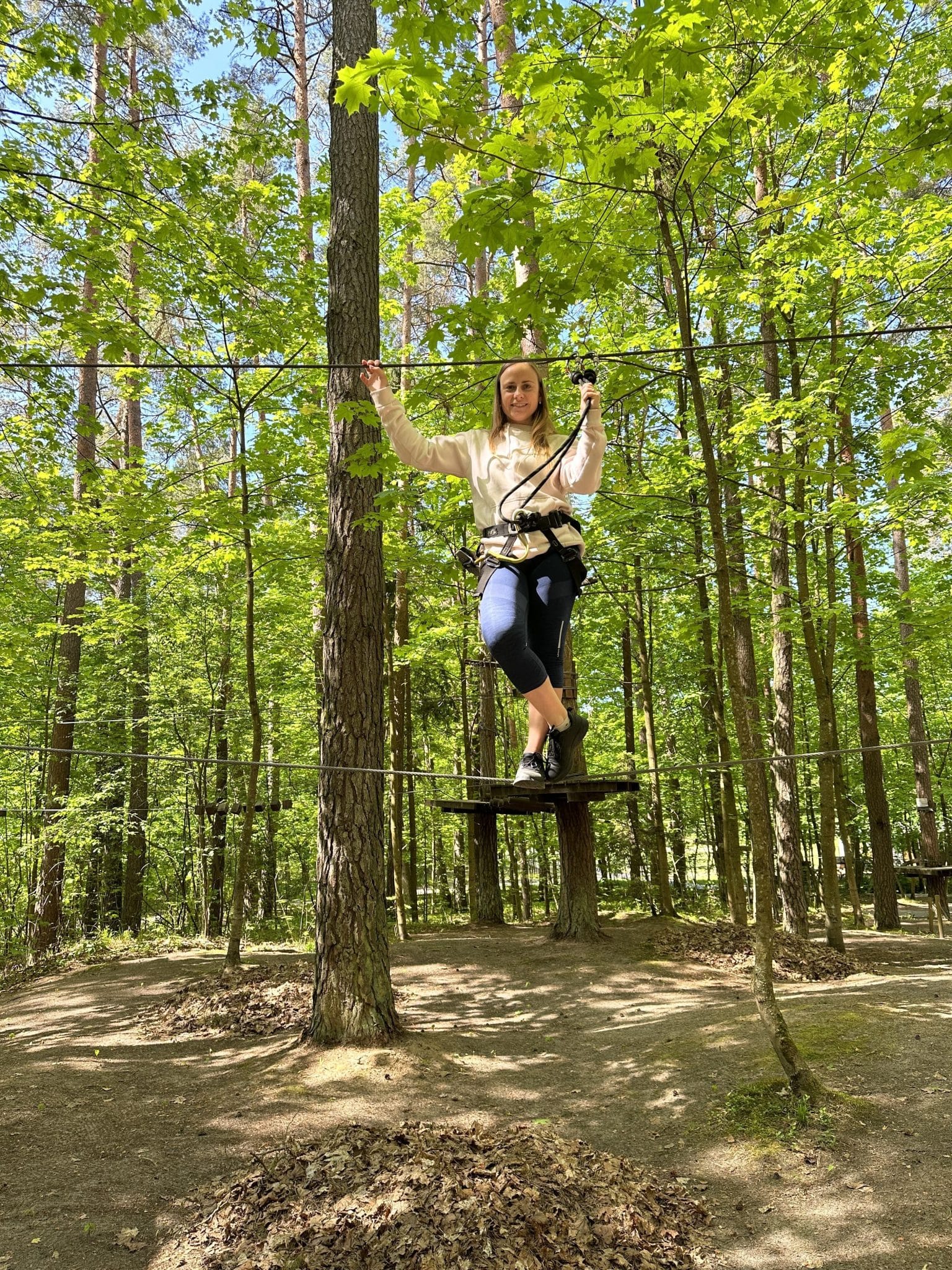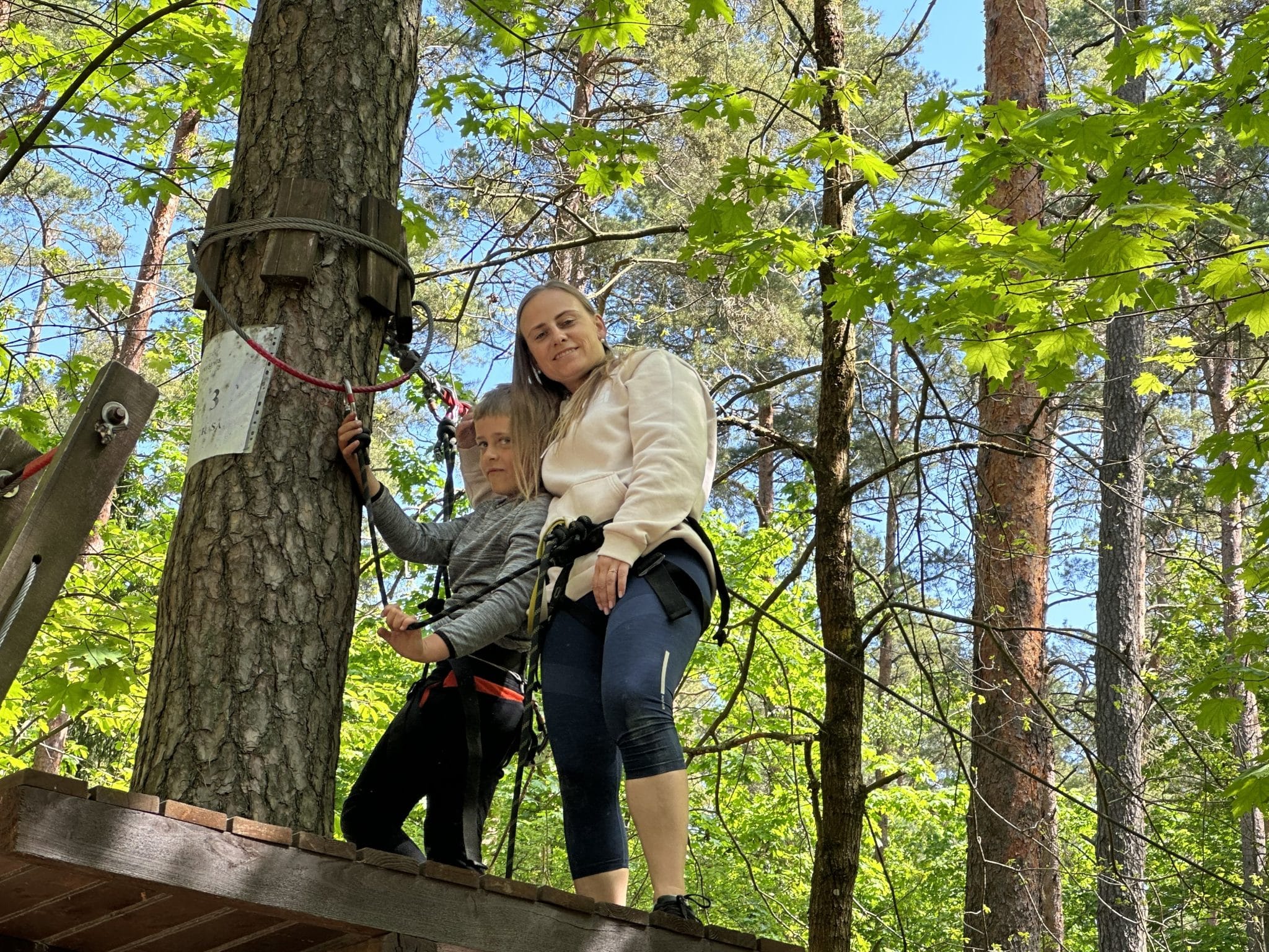 Nuotykių slėnyje be galo rūpinamasi saugumu. Jums bus ne tik suteikta speciali įranga, būsite apmokyti ja naudotis, bet dar turėsite ir išlaikyti egzaminą – pereiti bandomąją trasą stebint akylam treneriui. Galėsite rinktis net iš 6 skirtingų trasų. Jeigu trasoje susidursite su sunkumais, ar nebeturėsite jėgų – nebijokite, viską matantys prižiūrėjai yra pasiruošę jums padėti! Nors yra ir specialiai vaikams skirtų trasų, buvo be galo smagu kelias trasas išbandyti kartu su aštuonmečiu (šaunuolis jis!). Neveltui sakoma, kad vaikai aplenkia savo tėvus, nes šįkart trasoje buvo kelios vietos, kurias aštuonmetis įveikė rodos be jokių pastingų, na o mamai reikėjo šiek tiek daugiau susikaupimo ir jėgų!