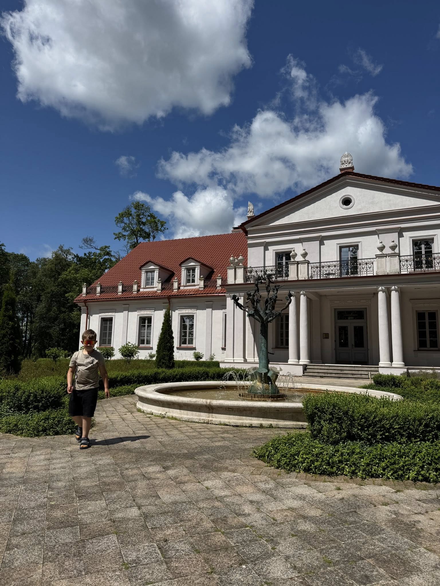 - Dvaro teritoriją puošia skulptūros, fontanai, augalai.