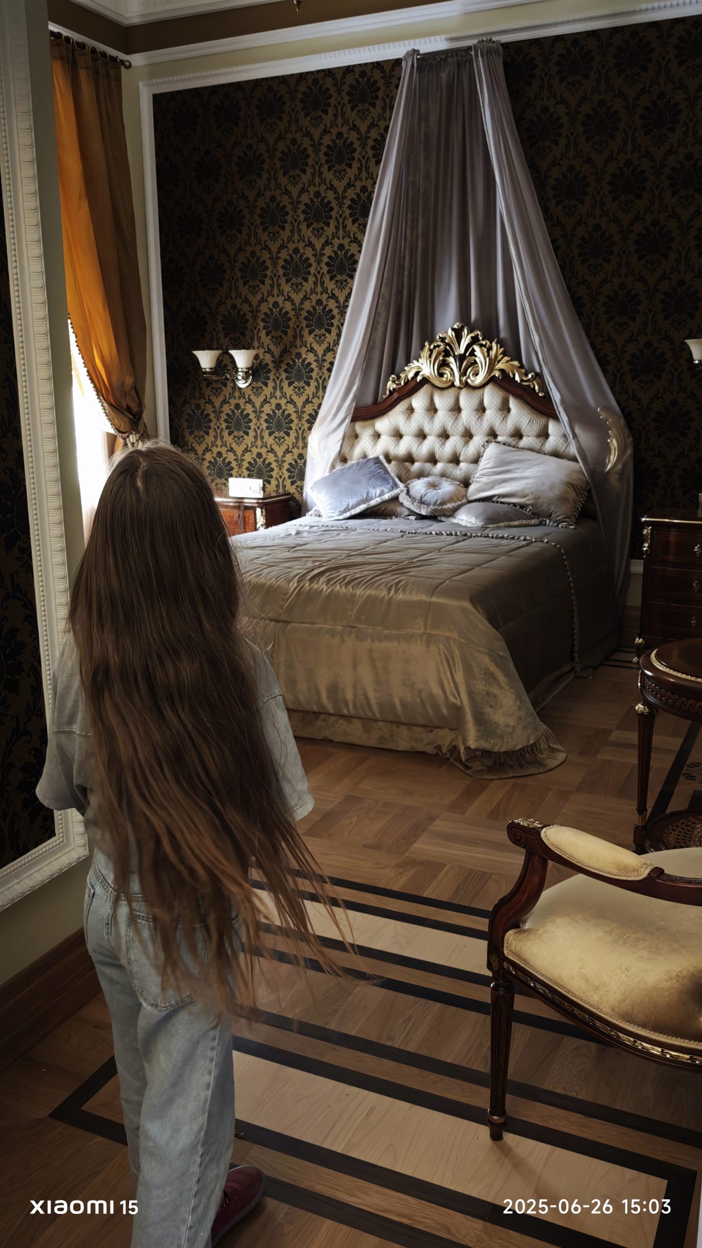 Su gide aplankėme ir prabangius XIX a. vėlyvojo klasicizmo stiliaus rūmus, kuriuose laukė ir mūsų nakvynė. Prabanga alsuojančiose erdvėse dvariškumo įspūdį sustiprina dekoro elementai: įspūdinga grindų marmuro mozaika, mozaikinis parketas, dekoratyvios salių sienos su rankų darbo itališkos tekstilės tapetais, auksuotas lubų dekoras, dalies sienų apdaila atlikta „venecijietiško“ glaisto technika, suformuotos kesoninės lubos (matot, kiek įdomių faktų galima išgirsti iš gido? ). Pajusti ypatingą 500 metų istoriją menančią atmosferą ir dvariškumą galima pajusti čia ir lankantis, ir pasirenkant šią vietą savo šventėms ar romantiškam dvariškam apsistojimui.