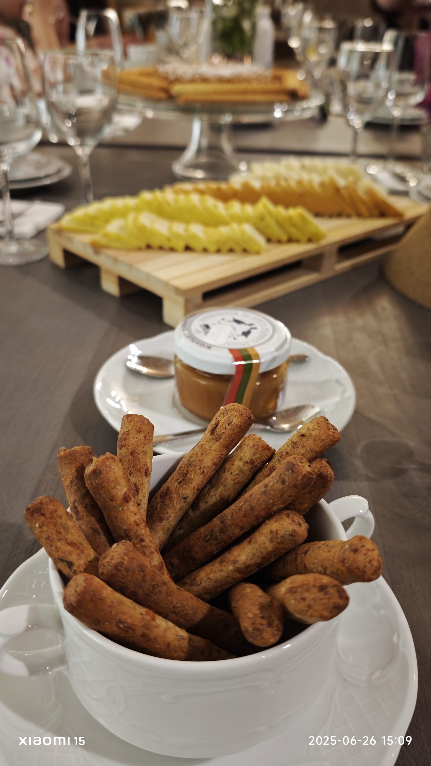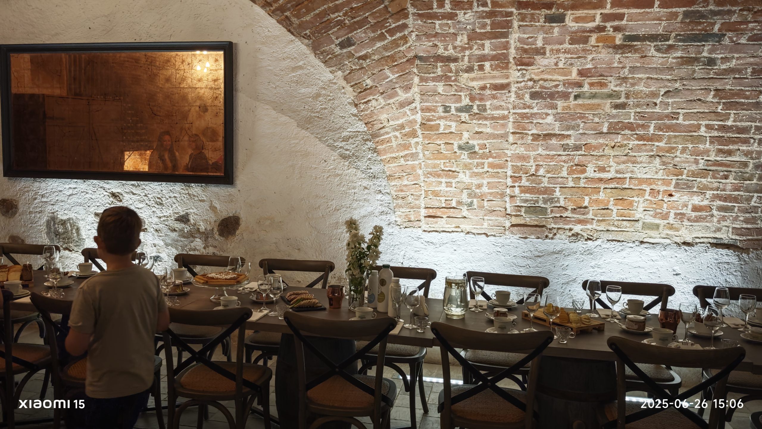 Maisto degustacija taip pat vyko dvaro rūsio menėje, tad tikrai galima buvo pasijusti tarsi viduramžiuose. Ir degustacinis meniu iš dvaro produktų labai platus: nuo varškės sūrių su medumi ir uogienėm, duonos iki pieno ir mėsos gaminių, o pageidaujantys net dvaro gaminamo vyno paragauti galėjo.