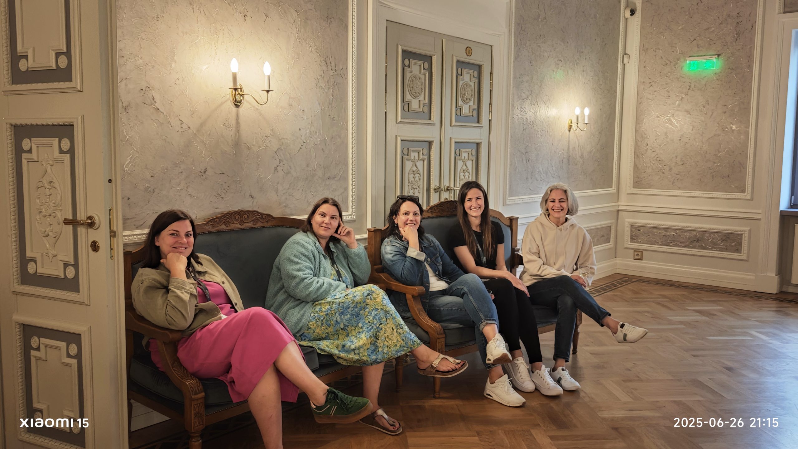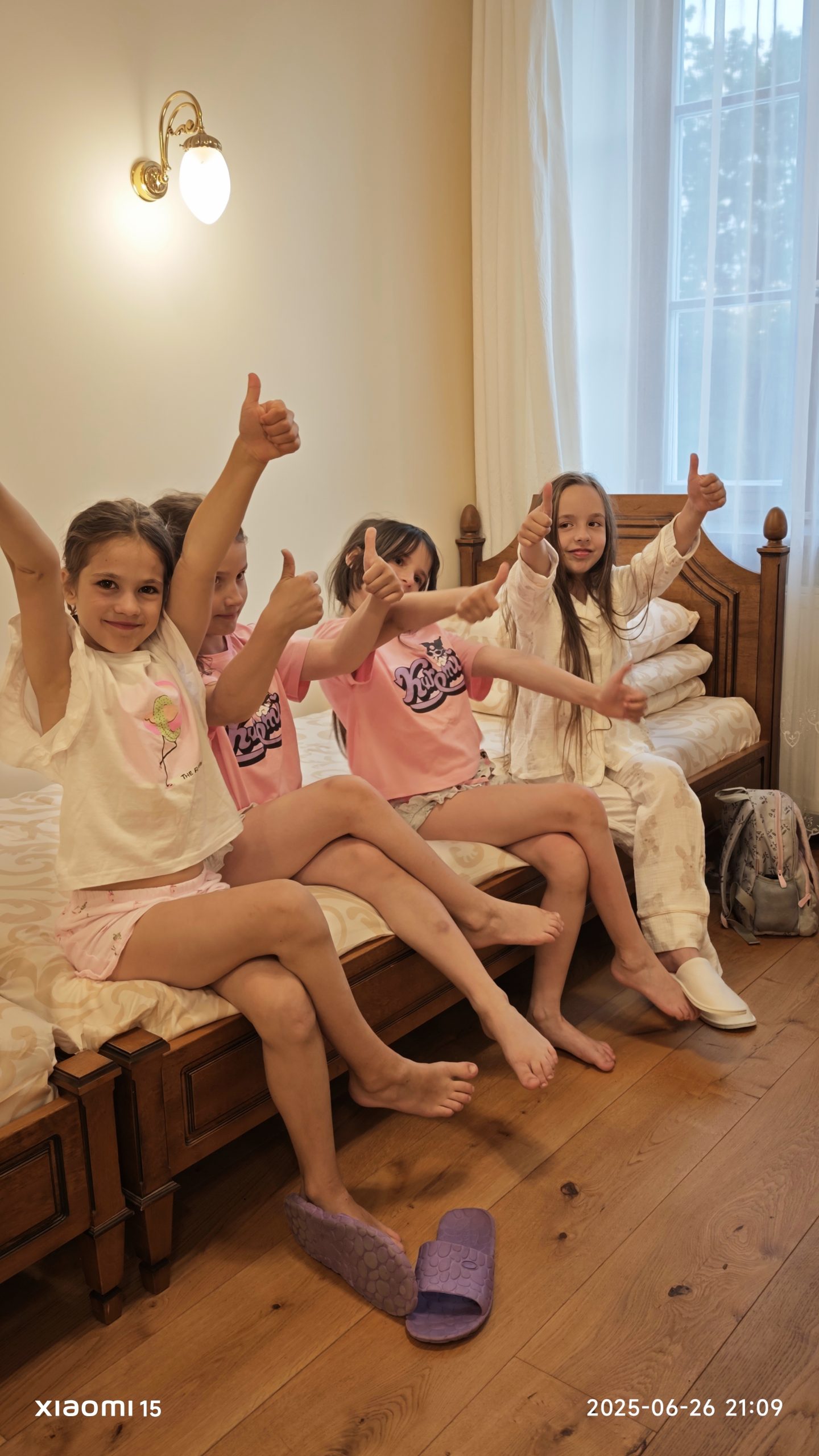 Mūsų kompanija taip pat pasiliko nakvoti šiuose rūmuose. Tai buvo pati smagiausia dalis vaikams, nes miegoti po įspūdingos dienos sugužėjo į pasiskirstytus kambarius mergaitėms ir berniukams, o mamos įsikūrė kambariuose šalimais. O kiek buvo šnabždesių ir pasidalinimų įspūdžiais prieš miegą! Ta dvariška aura neleido anksti išsiskirstyti ir mamoms – kiek naujų įdomių pažinčių užsimezgė. Už pižamų vakarėliui parūpintas pižamas ir kokybišką bei greitą darbą dėkojame taip pat mamai, „Žiogo pižamytės” kūrėjai.