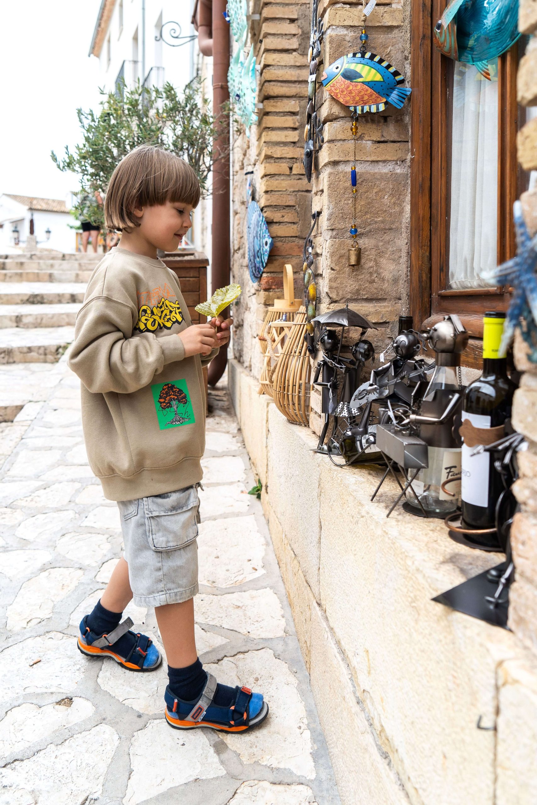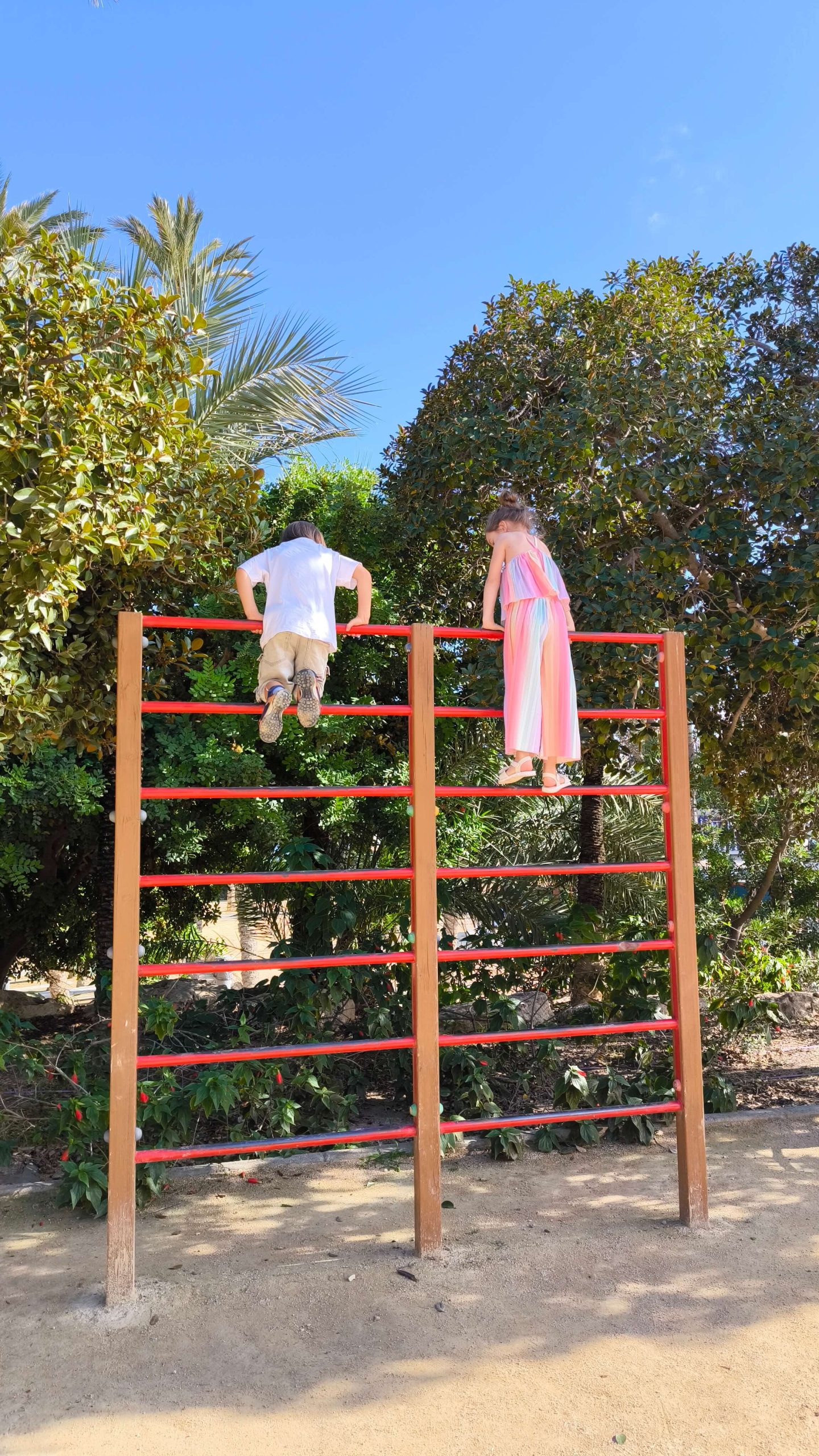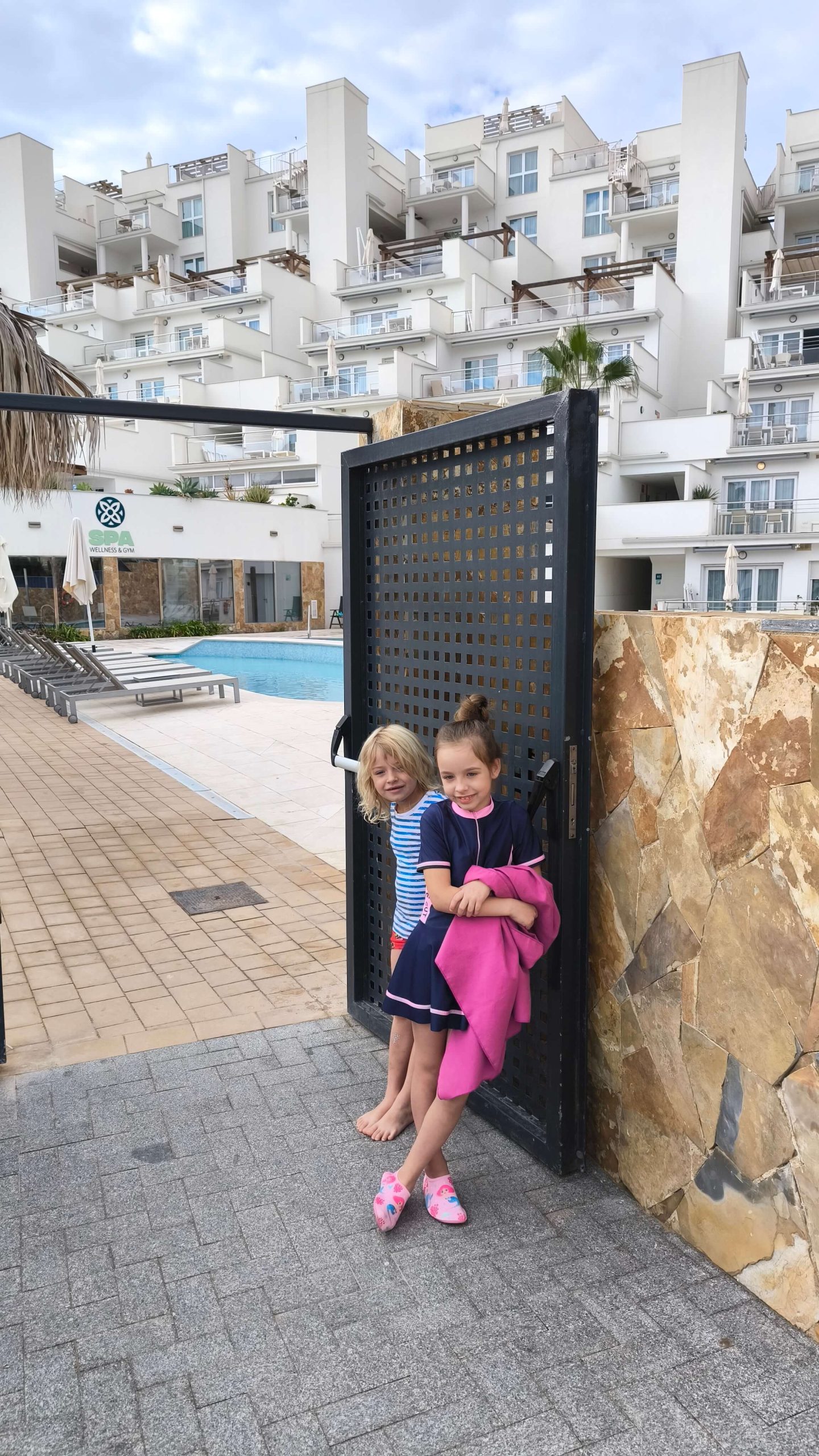 Bet mes nebūtume”Keliaujančios mamos”, jei nerastume ypatingai gerų variantų kokybės prasme už ypatingai mažą kainą. Tad atradome apartamentų viešbutį su vaizdu už milijoną pirmoje linijoje ir itin adekvačia kaina. Tiksliau net labai žema, pradžioje net pasitikrinau ar tai ne scam’as. Pasirinkimas apartamentų didelis, tiesa, reiktų užsisakyti iš anksto, nes mes užpildėme visus laisvus. Apartamentai nuo vieno iki dviejų miegamųjų su virtuvėlėmis ir visa buitine technika (indaplove, skalbykle, net plovimo priemonių palikta), rankšluoščiais, tualetiniu popierium ir nedidelis kiekis prausiklių. Apartamentai su terasomis arba balkonais. Vaizdas per viešbučio langus – neįkainuojamas, sutikome visus saulėtekius su kava terasoje. Uždara teritorija, joje 2 lauko baseinai, vienas vidinis šildomas baseinas ir SPA erdvė su saunom. Vaikų žaidimų aikštelės lauke ir vaikų kambarys viešbutyje (tiesa, nepataikėm, kad veiktų, gal visgi ne sezonas). Teritorija prižiūrėta, visur švaru, tvarkinga, įrengimas naujoviškas. Kaina – neįtikėtina. Savaitė šeimai gavosi 500 eurų, mamoms (koperuojantis į apartamentus su atskirais miegamaisiais) – mamai su vaiku/vaikais savaitė 300 eurų. Viešbutį tikrai gali rekomenduoti visos „Keliaujančios mamos” Klubo narės vykusios kartu. Šį viešbutį rasite ir kainas pasitikrinti galite čia.