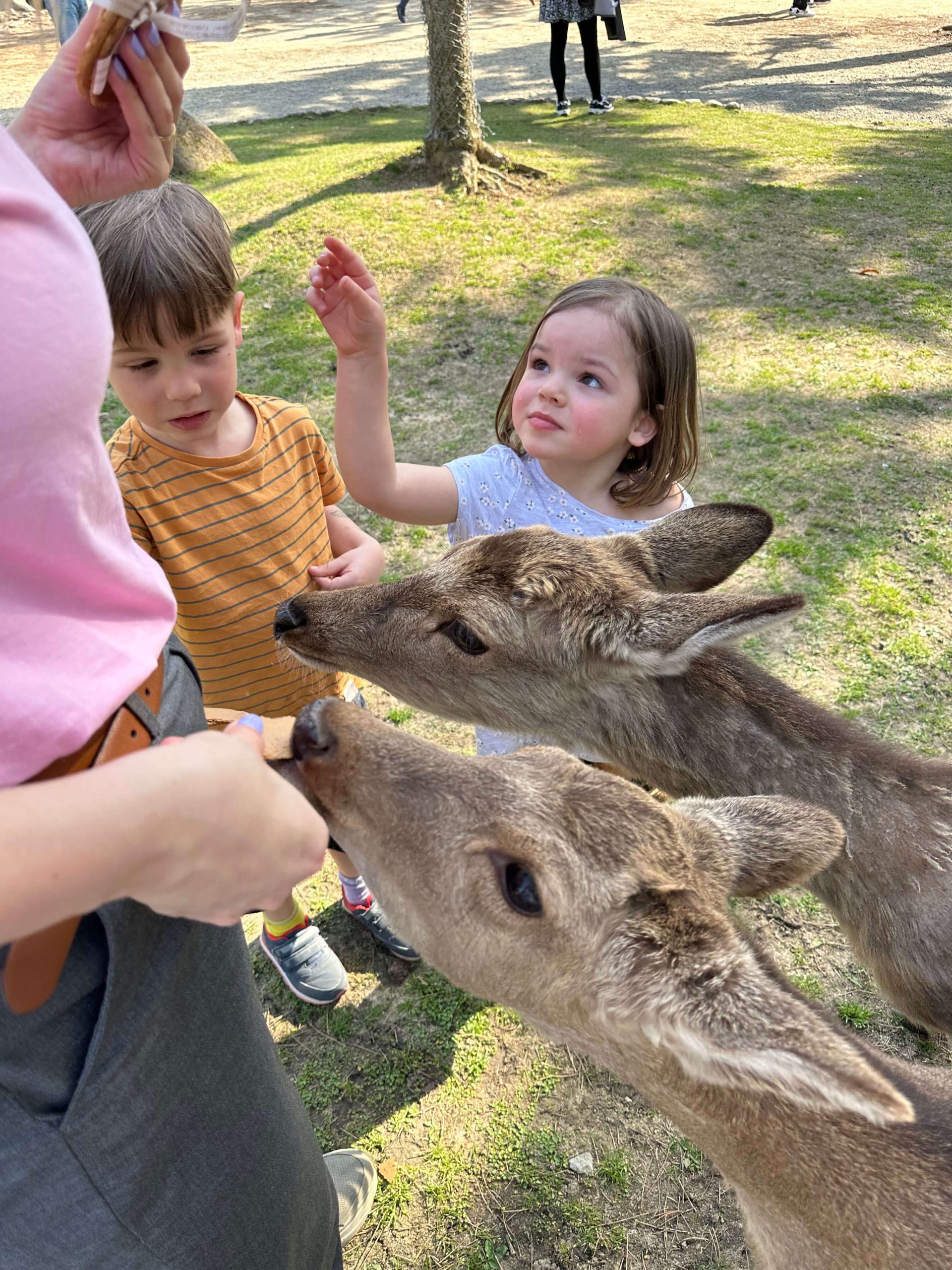 Šeštą kelionės dieną, rytą pradėjome Osakoje, tuomet per pietus įsėdome į traukinį ir nuvykome į netoliese esantį Naros miestą – ten, kur elniukai tiesiog gyvena laisvai. Gera pramoga vaikams – daug vietos išsilakstyti, galima nupirkti specialių sausainių ir tuos elniukus pamaitinti.