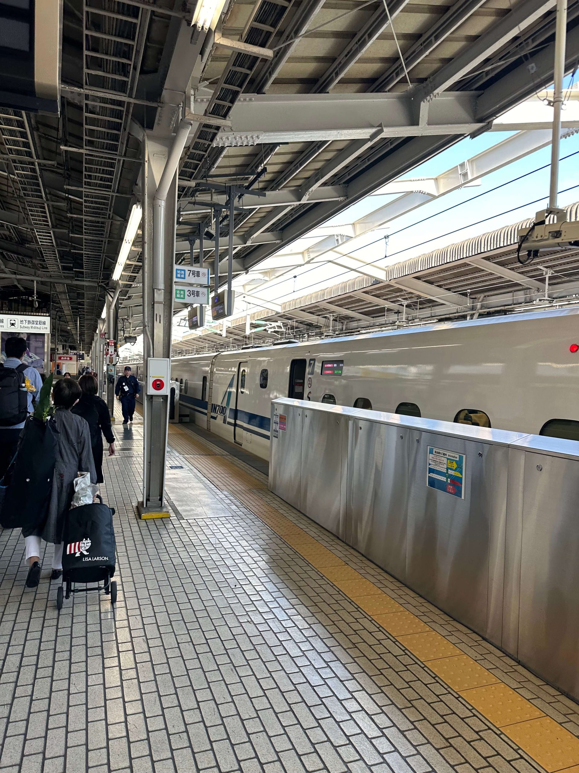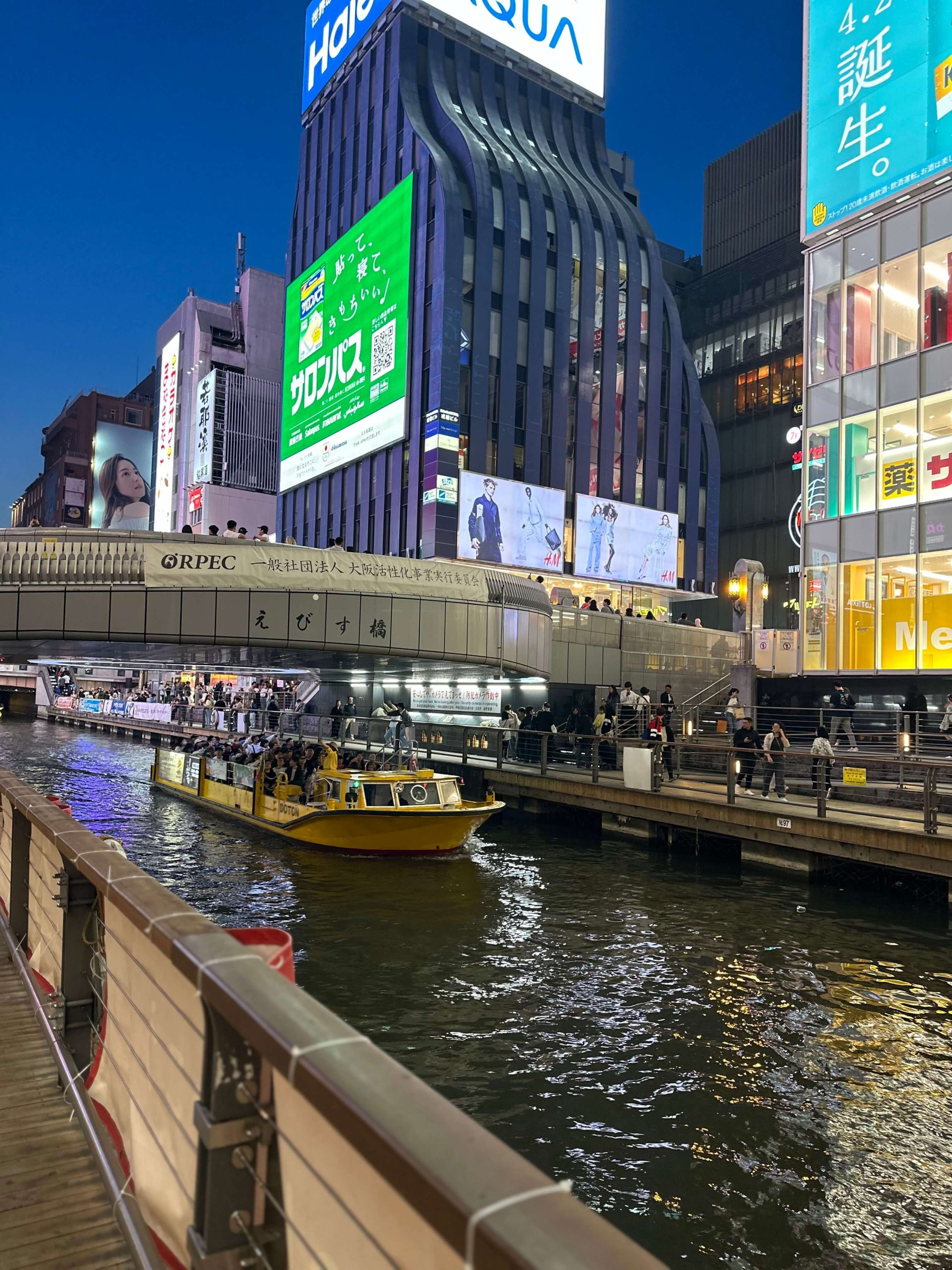 Ketvirta diena buvo skirta palikti Tokyo ir keliauti į Osaką. Kelionei pasirinkome vieną greičiausių traukinių pasaulyje – Shinkansen. Jeigu keliaujant iš Tokyo į Osaką sėdėsite dešinėje pusėje prie lango, esant sėkmingai ir nedebesuotai dienai, kelionės metu netgi galite pamatyti Mount Fuji. Mums pasisekė tik iš dalies, nes buvo labai debesuota diena, tačiau Mount Fuji viršūnę matėme! Patikslinant – mačiau aš viena, nes vykome per pietų miegelio laiką, tad visa šeimyna miegojo. Atvykus į Osaką, įsikūrėme viešbutyje ir ėjome pasivaikščioti, patyrinėti šalia esantį rajoną bei vakarieniauti. Pasisekė, kad pirmą dieną netoli viešbučio radome garsiąsias Osakos žuvytes. Tai yra tokie pyragėliai su plikytu kremu arba raudonųjų pupelių kremu, kurias išbandyti buvau pasižymėjus savo „to do“ sąraše. Vakarą užbaigėme vėl labai įdomiam ir privačiame restorane su Wagyu jautiena.