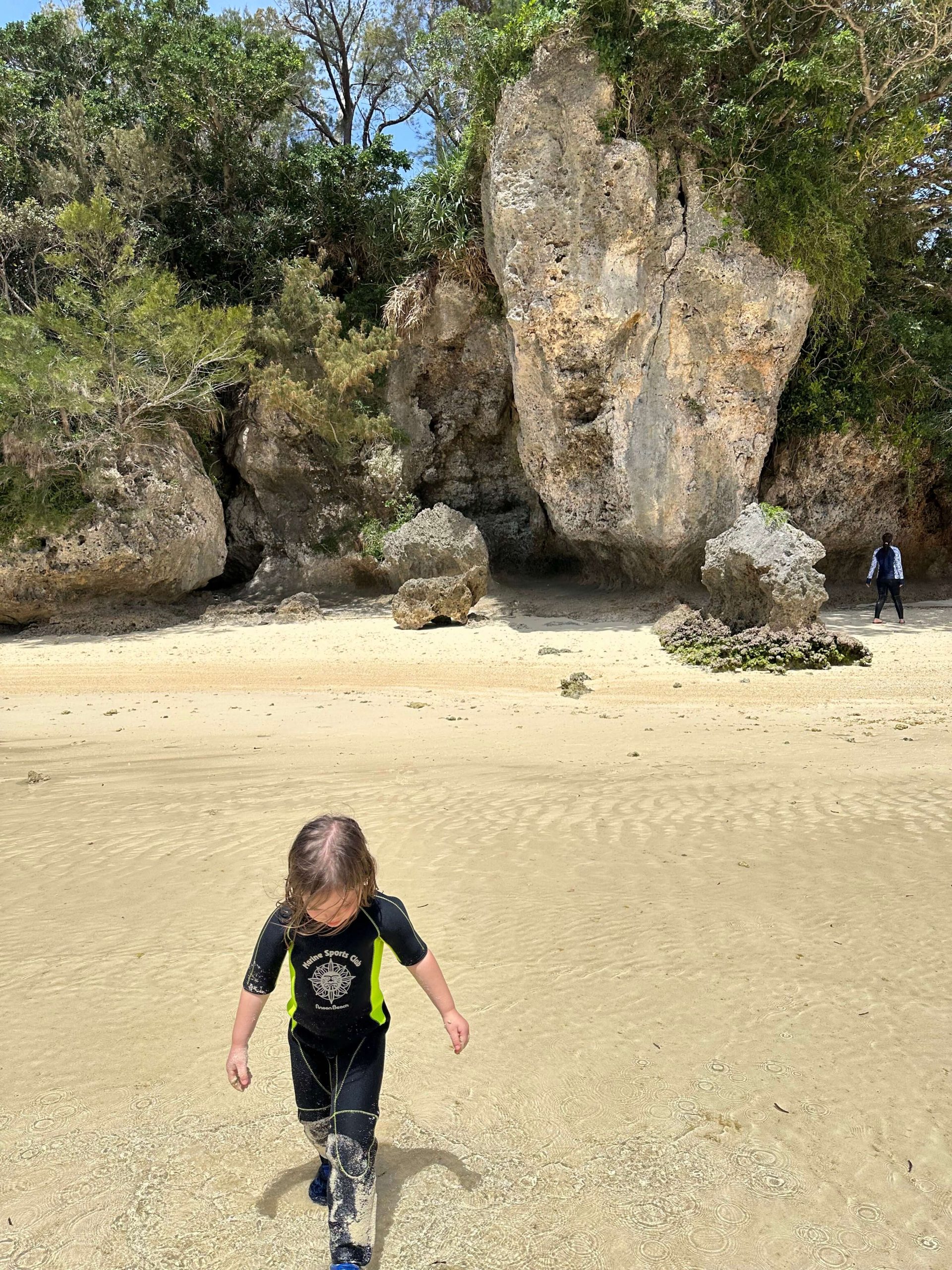 Priešpaskutinę dieną Okinawoje praleidome tikrai įspūdingai. Kadangi viešbutyje buvo galimybę užsisakyti įvairių pramogų už papildomą mokestį, bet ne visos jos tinkamos tokiems mažiems vaikams, pasirinkome pusdienio išvyką su laivu. Ryte atsikėlę užkandome, susitikome su grupe, išsirinkome nardymo kostiumus ir sėdome į laivelį, kuris mus nuplūkdino į netoliese esančią mažą salą. Kadangi sala yra negyvenama, labai maža ir tarp uolų, tai puiki vieta paviršiniam nardymui. Tad kelionės vienas iš tikslų ir buvo, atvykus, išplaukti valandai panardyti.