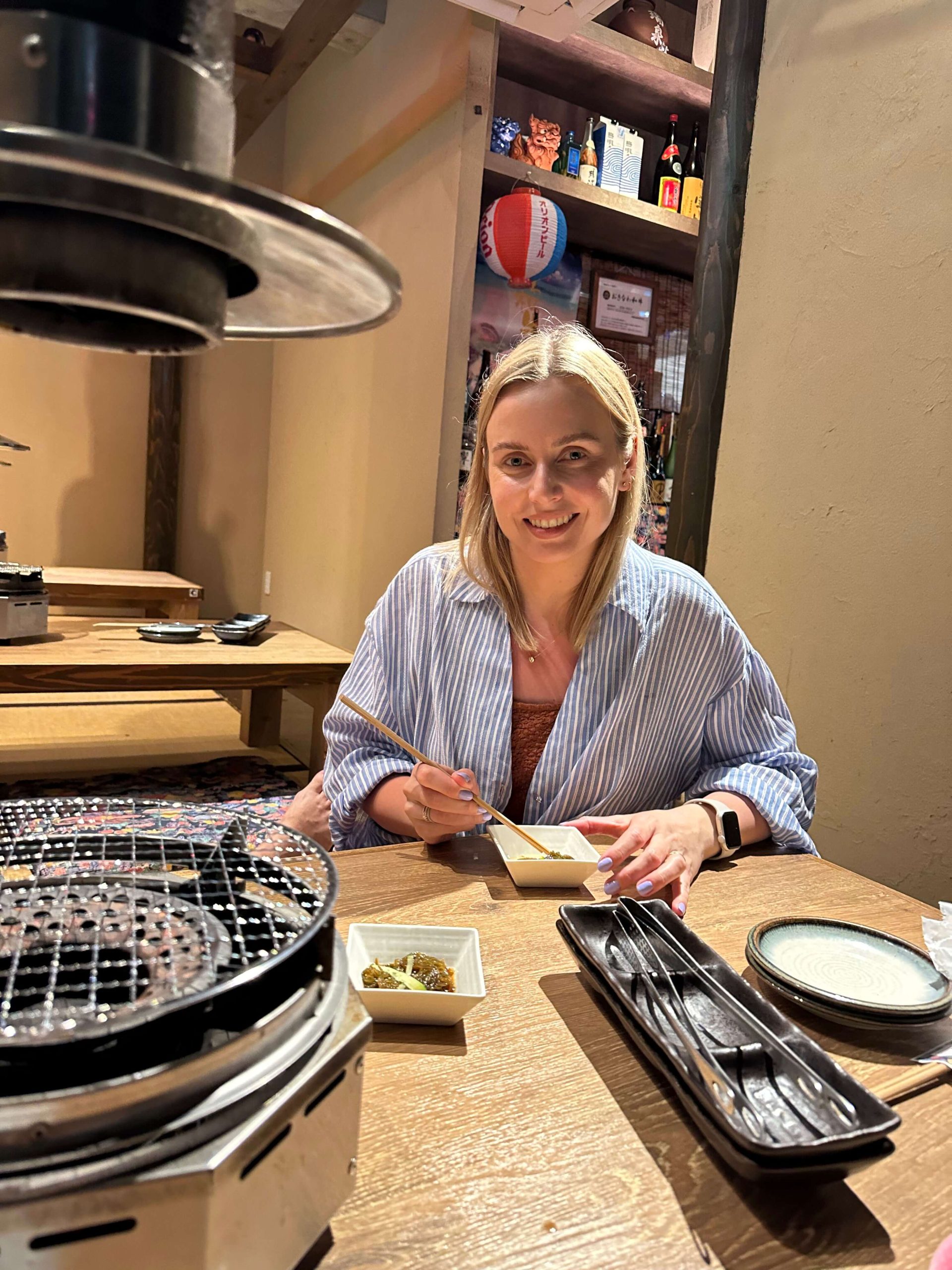 Nusileidome Tokijuje, keliavome į viešbutį, jame įsikūrėme ir ėjome netoliese pavakarieniauti. Tai buvo mūsų pirmas kartas valgant skaniausią Wagyu jautieną!