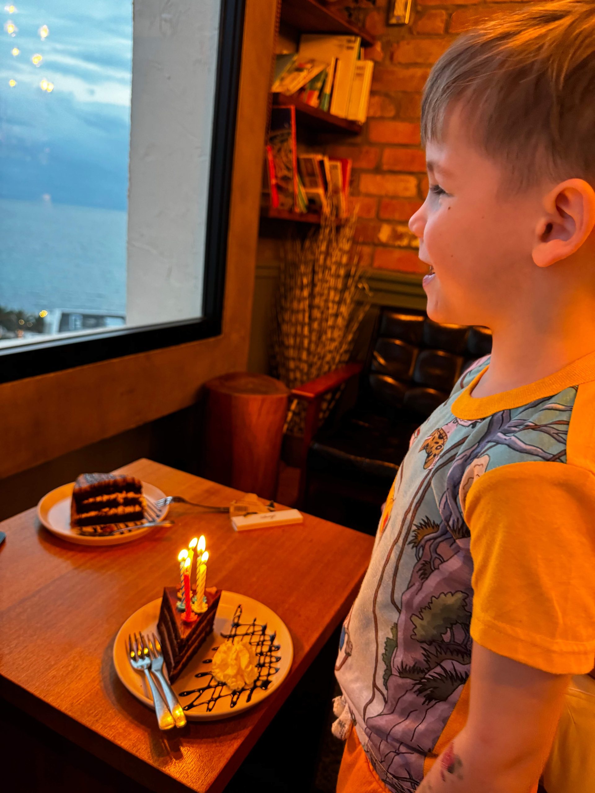 Trečią dieną Okinawoje turėjome ypatingą šventę – mūsų Jonui suėjo 5! Tad leidome Jonui dėlioti dienos planus. Pirmas pageidavimas buvo prisipūsti balionus ir žinoma – baseinas. Tad visi maudėmės, išdykavome baseine ir nusprendėme vykti į American Village kompleksą, kuriame buvo daug amerikietiškos kultūros, didelis restoranų ir pramogų pasirinkimas bei paplūdimys. Tad vaikai sėkmingai nusnaudė, kol keliavo iki American Village ir jiems atsibudus pradėjome viską tyrinėti, vaikai netgi greitai išsimaudė. Tuomet ėjome ieškoti ypatingos vietos, kur Jonas galėtų užpūsti gimtadienio žvakutes. Ta vieta tapo San Fransisco cafe. Na, o pilni įspūdžių ir prieš grįžtant į viešbutį, radome tikrai nuostabią vietą vakarienei. Žinoma – ir vėl su Wagyu jautiena, bet taip pat ir su šviežiai keptomis jūros gėrybėmis. Ten turbūt vertinant kainą ir kokybę buvo mūsų vieta nr. 1, nes maistas buvo tiesiog dieviškas.