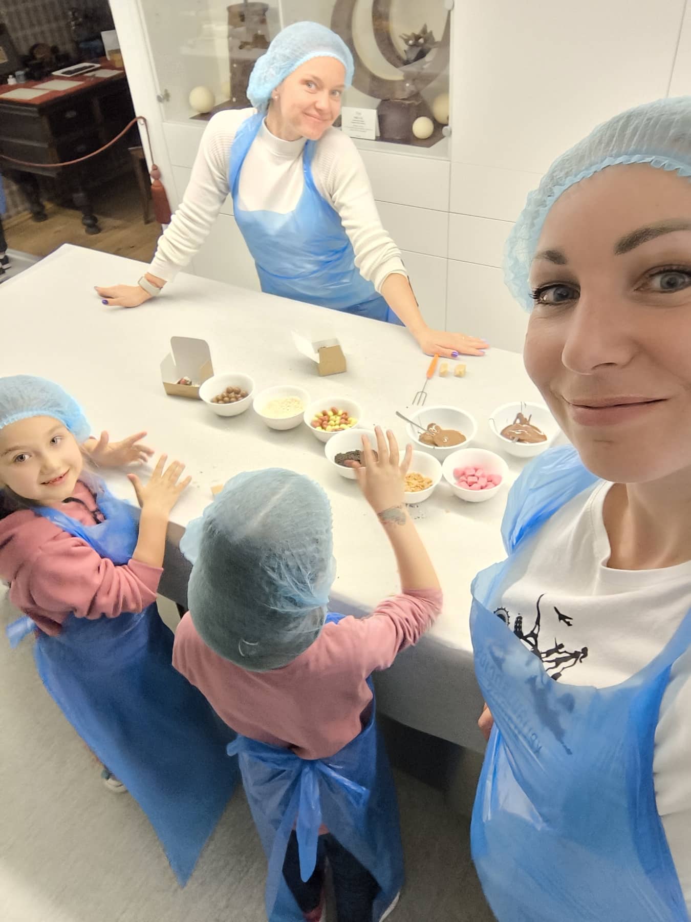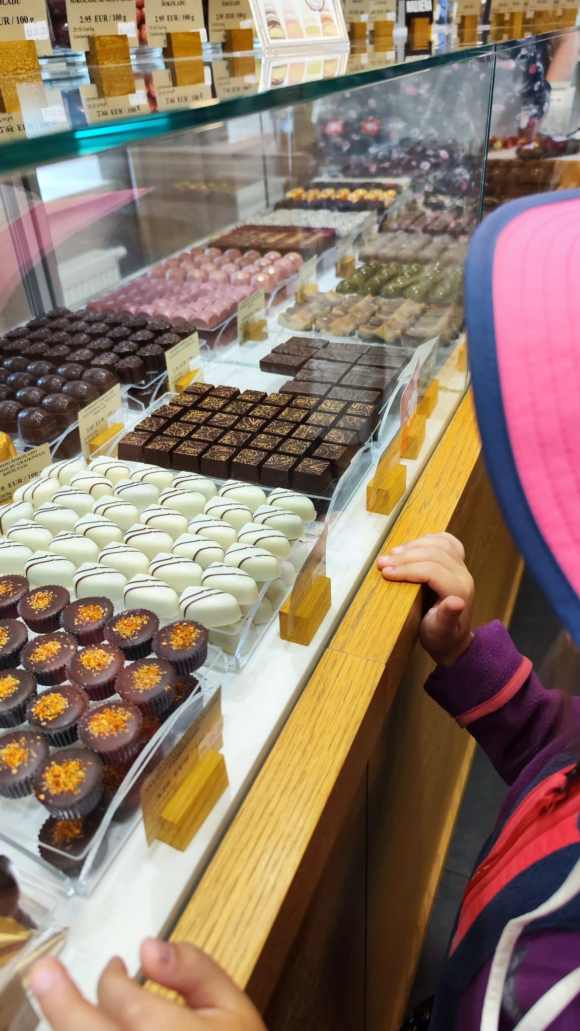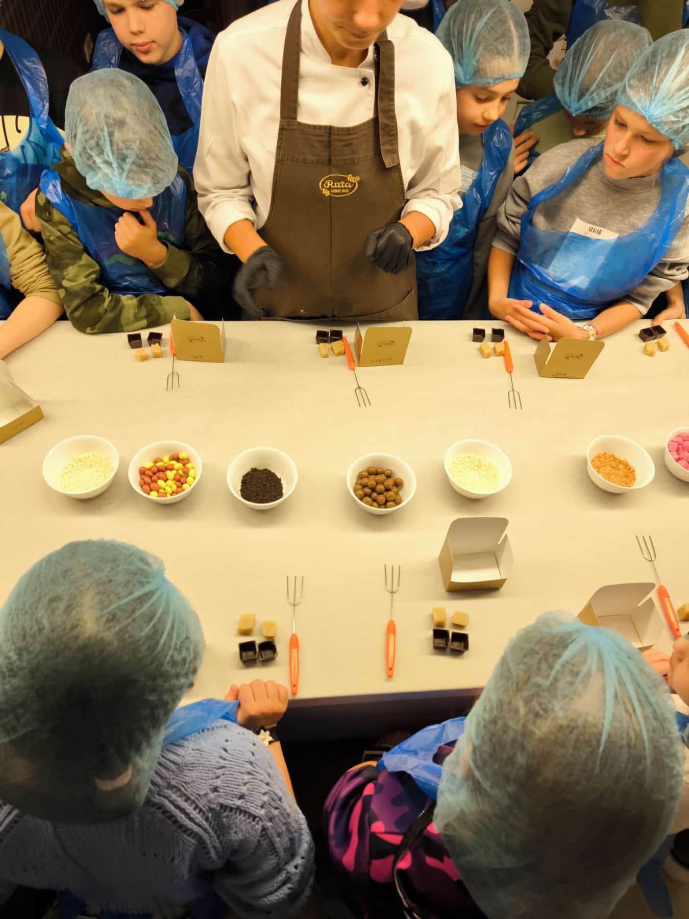 Šįkart mums pasisekė ne tiks sudalyvauti ekskursijoje po Šokolado muziejų, bet net ir pasijusti šokolado meistrais gaminant savo šokoladinius saldainius! Tikrai taip – yra tokia galimybė sudalyvauti šokolado gaminime patiems, visko paragauti ir dar lauktuvių namo parsivežti. Tik užsisakyti šią edukaciją reikia labai iš anksto, kad dar būtų laisvų vietų, nes ji tikrai viena populiariausių edukacijų mieste. O jei keliaujate ne grupe, o šeima, galite jungtis į grupines edukacijas čia.