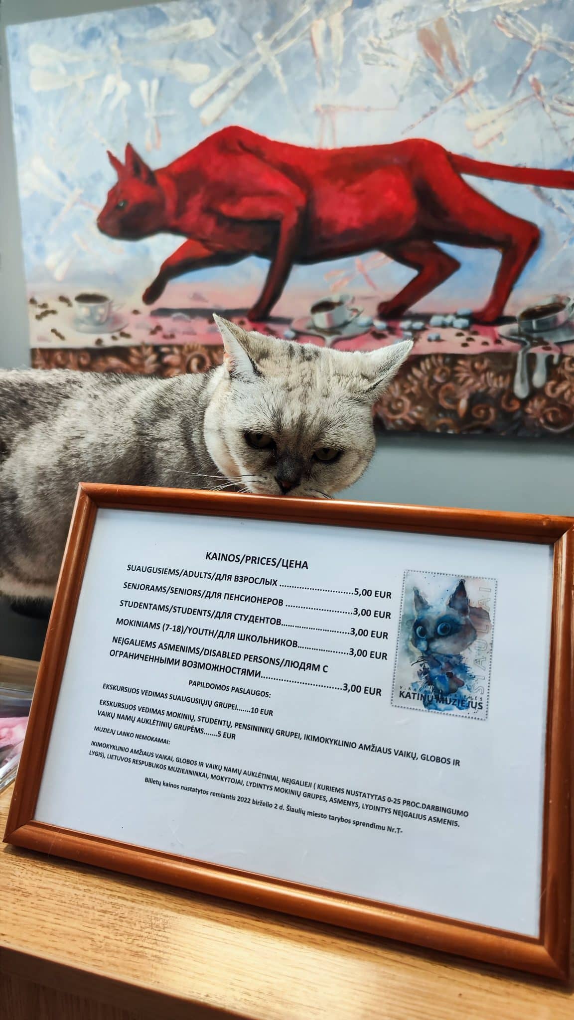 Šią vasarą stengiamės aplankyti vietas, kuriose dar nebuvome spėję apsilankyti, tačiau apie kurias nemažai girdėjome gerų atsiliepimų iš mamų „Keliaujančios mamos Lietuvoje – poilsis, pramogos, įdomybės” facebook grupėje. Viena tokių smalsumą žadinančių vietų buvo Šiauliuose įsikūręs Vandos Kavaliauskienės Katinų muziejus. Jis ir tapo įkvėpimu mūsų savaitgalio kelionei į Šiaulius. Tad penktadienį popiet pradėjusios autokelionę Klaipėda-Šiauliai, vakarop jau sustojome ties smagiai besišypsančiais geležiniais katinais. Katinų muziejuje gyvena 7 katės ir virš 4000 eksponatų, čia galite sužinoti ir kaip žodis „katinas” rašomas įvairiose šalyse.
