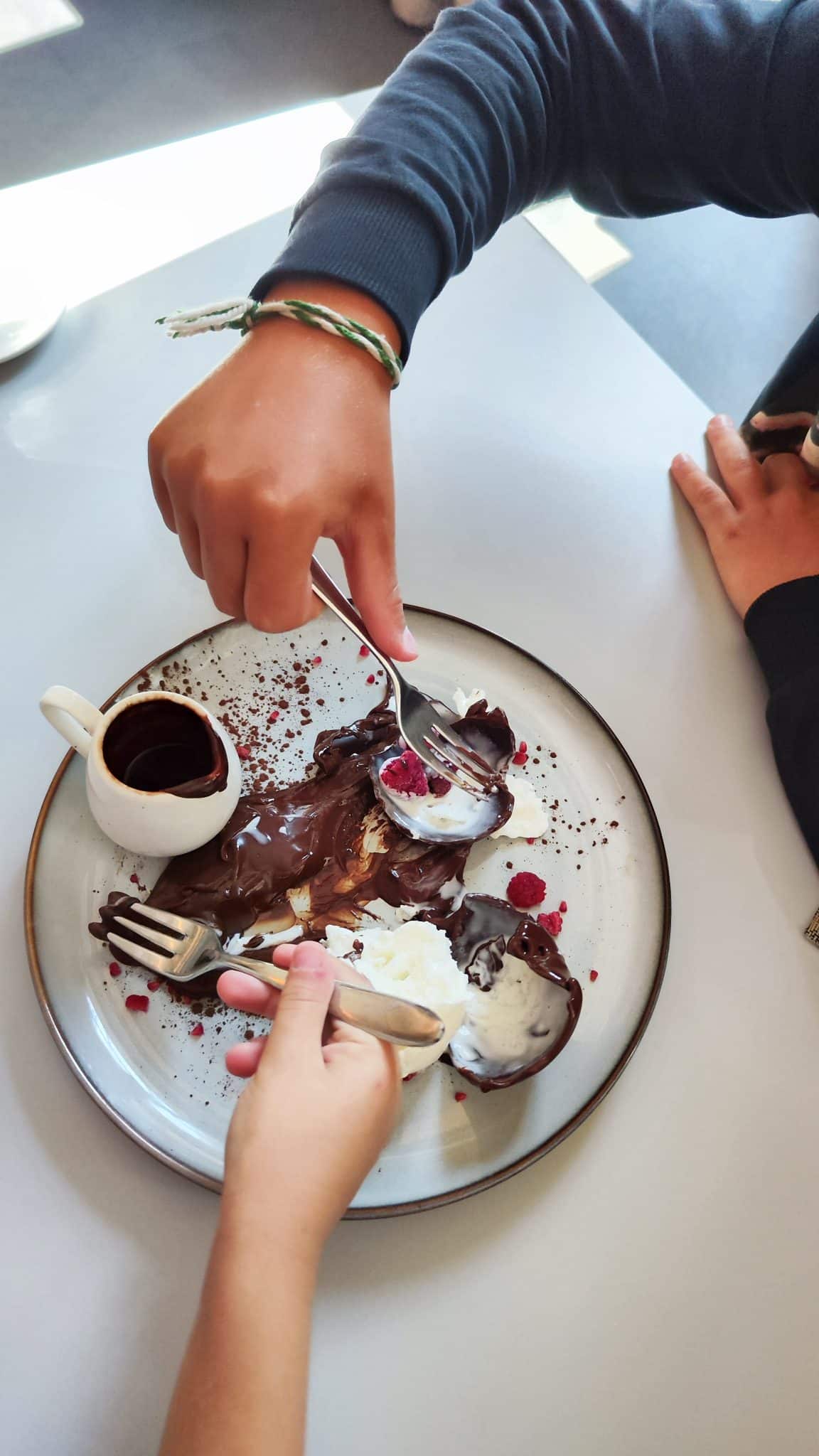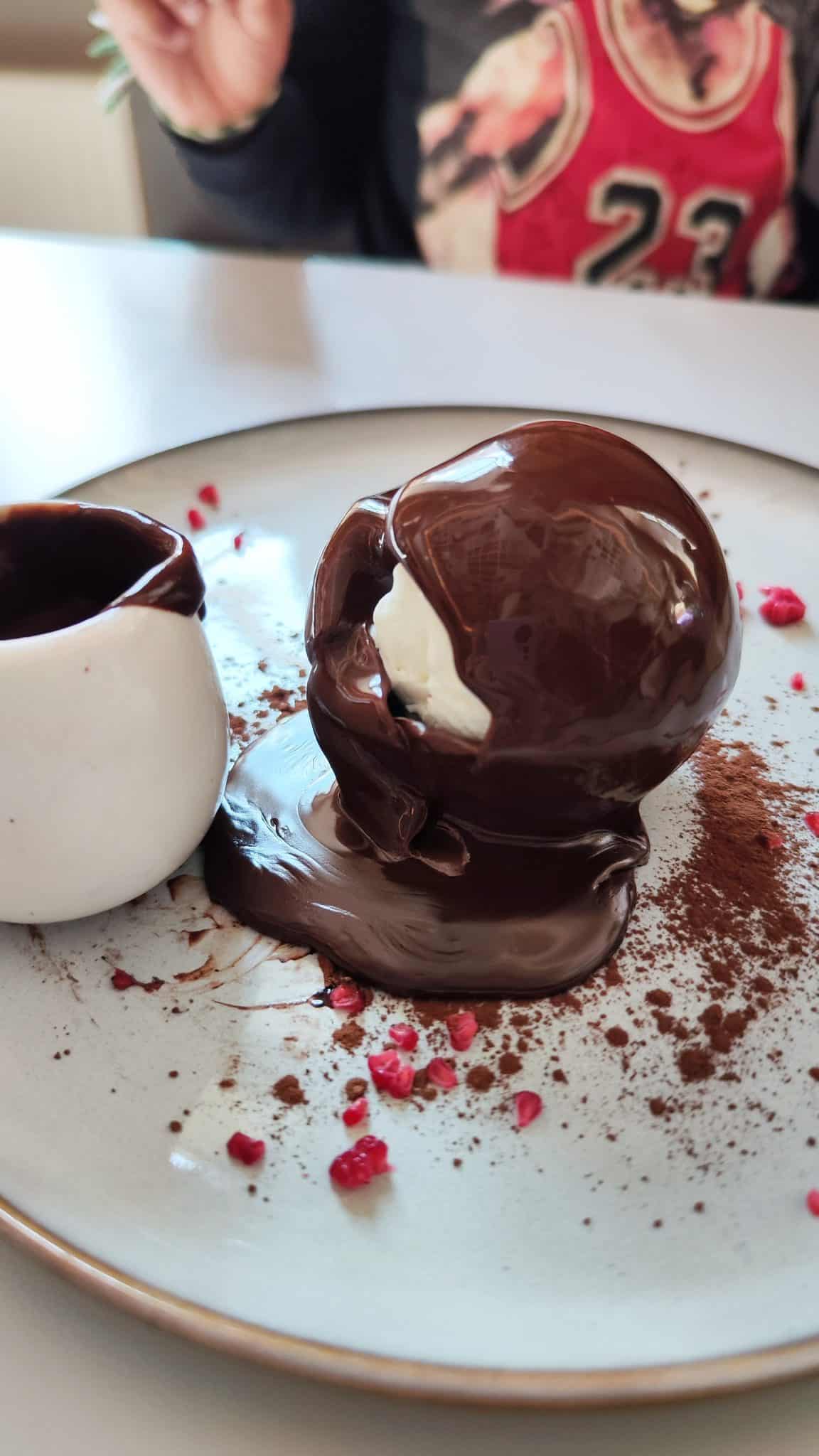 - O čia šokolado burbulas, kuris pilant karštą šokoladą atsiveria ir pasimato ledai. Vaikai buvo sužavėti!
