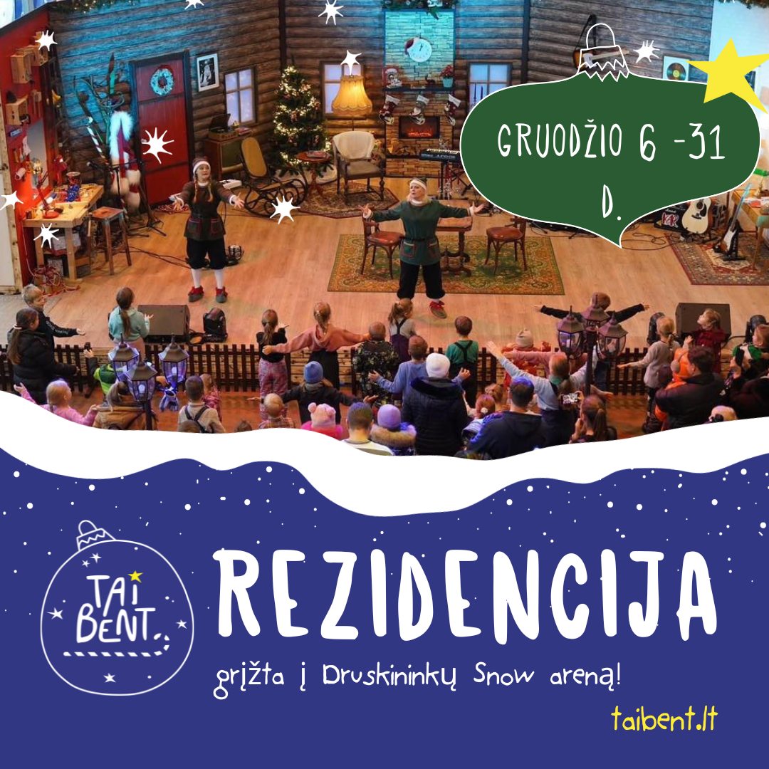 Rezidencijoje šiemet lankysis Jūsų mylimi „Tai Bent Kalėdos“ herojai: Senelis, Ponas Kaminėtojas, Kiškis Romas. Jų apsilankymo dienas sekite taibent.lt.