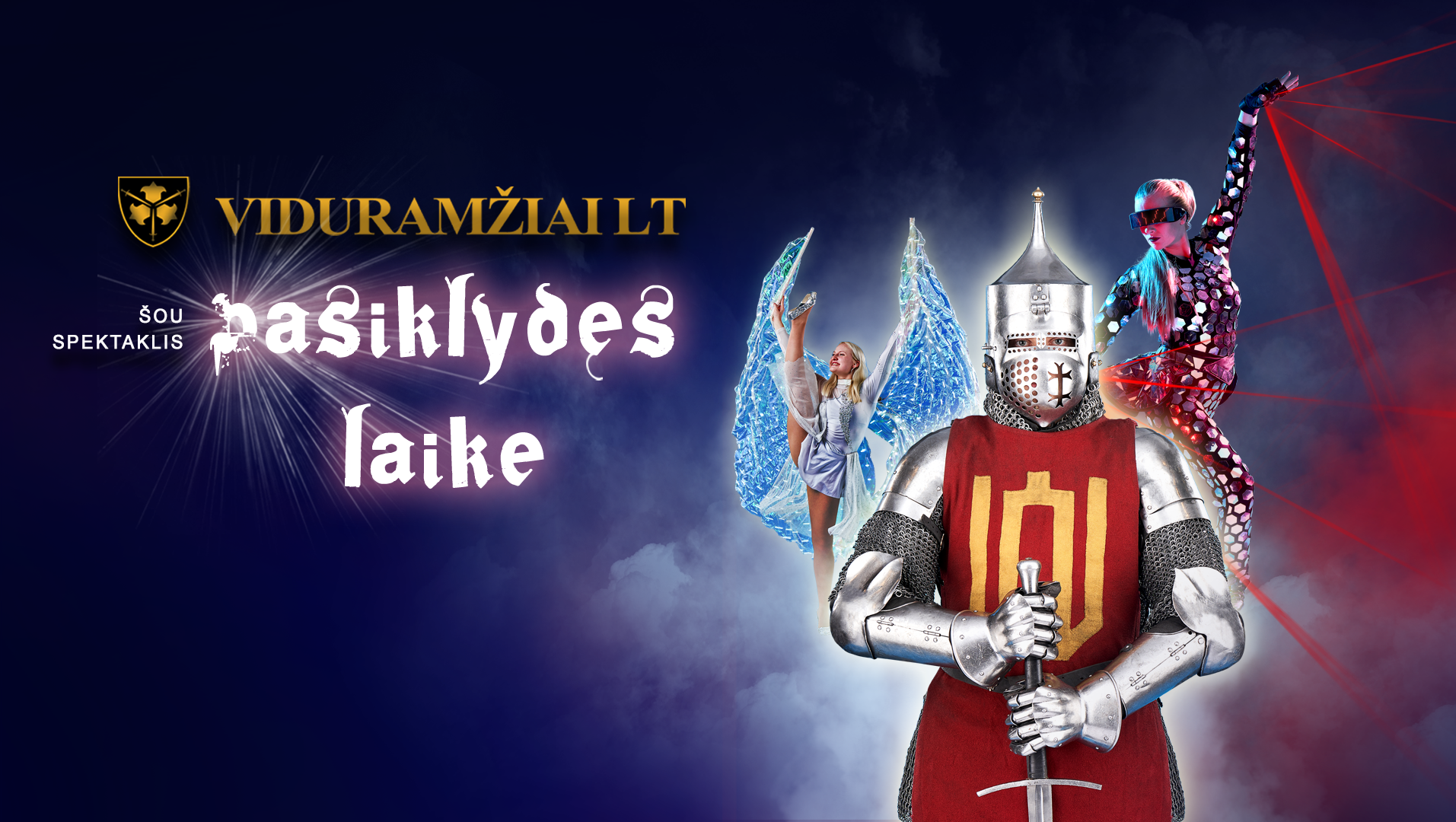 Kartu su pasirodymo dalyviais leiskitės į kelionę laiku ir gyvai išvyskite televizijos žiūrovus bei konkursų žiuri sužavėjusius šou gyvai – LAZERIŲ magiją ir tikras RITERIŲ kovas, INTERAKTYVIAS video PROJEKCIJAS ir užburiančius ŠOKĖJŲ pasirodymus.