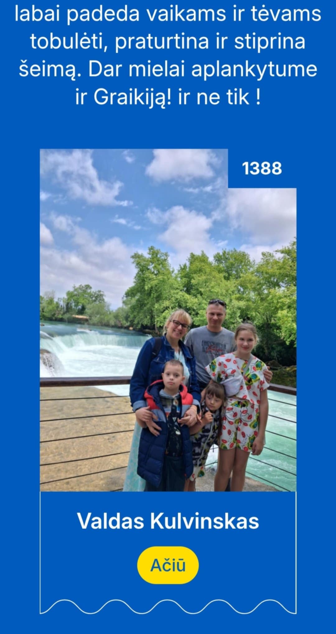Esame dėkingi organizatoriams bei balsavusiems už mūsų šeimą, kurių dėka buvome išrinkti laimėtojais.