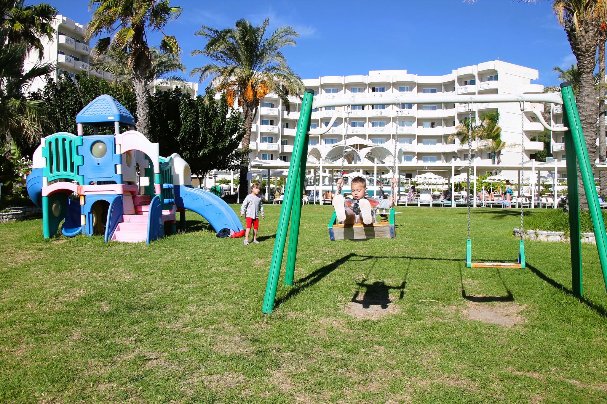 Paplūdimys sudarytas iš smėlio ir žvirgždo mišinio, o įėjimas į jūrą – gana greitai gilėja. Tai jeigu paaugliai nėra geri plaukikai, tai galima vertinti kaip trūkumą, nes nuo kranto gali nueiti tik kokius 3-4 metrus, o po to jau gilu. Papildomos animacijos ir pramogos yra skirtos jaunesniems vaikams iki 12 metų, o paaugliams gali būti mažiau veiklos nei tikimasi. Apibendrintai mūsų šeima sakytų, kad Rodos Palladium Leisure & Wellness — labai patrauklus pasirinkimas senjorams bei šeimoms su mažais vaikais, nes tikrai puiki vieta, kokybiškas aptarnavimas, tinkamos sąlygos poilsiui be rūpesčių. O jeigu norėtųsi daugiau veiklos šeimoms su paaugliais vaikais, tai yra sprendimas: visai šalia viešbučio esantis vandens parkas.