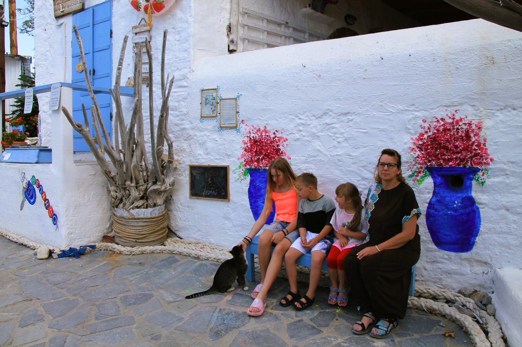 Toliau keliavome į Lachania kaimelį, garsėjantį spalvingomis sienomis ir žydinčiomis gatvelėmis – atrodo, kad kiekvienas kampelis ten prašosi būti nufotografuotas!