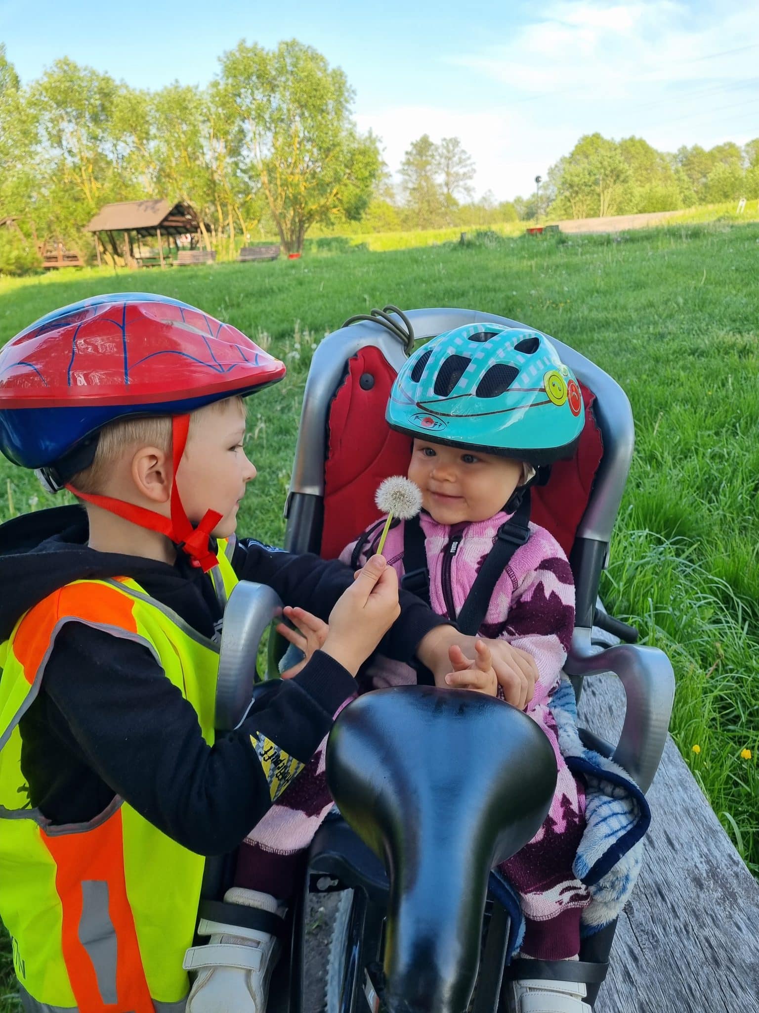 Didžiausias įveiktas atstumas su abiem vaikais buvo 37 kilometrai, turėjome kelionę iki Trakų ir atgal. Kadangi dviračių tako buvo nedidelė dalis, teko minti keliu. Visi vairuotojai buvo labai mandagūs ir supratingai apvažiuodavo. Manau, mokydami vaikus atsakomybės ir kultūros kelyje nepaisant su kokia transporto priemone jie dalyvauja eisme – darome labai gerą darbą, prisidedant prie nelaimingų atsitikimų mažėjimo keliuose.