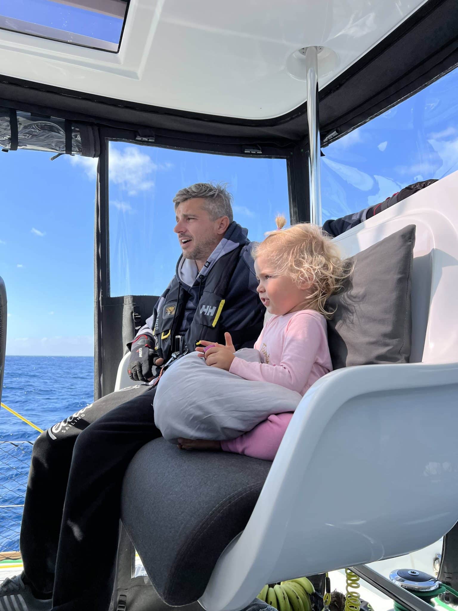 Plaukimas prieš vaiką ir po vaiko atsiradimo skiriasi. Seniau daugiausia plaukiodavom dieną, dabar ilgesnes navigacijas darom naktį, kai vaikas miega. Dažniausiai plaukdami budim kas 4 valandas naktį, o dieną kaip išeina. Bet vyras tikrai daugiau valandų būna “prie vairo”, kadangi aš būnu su vaiku.