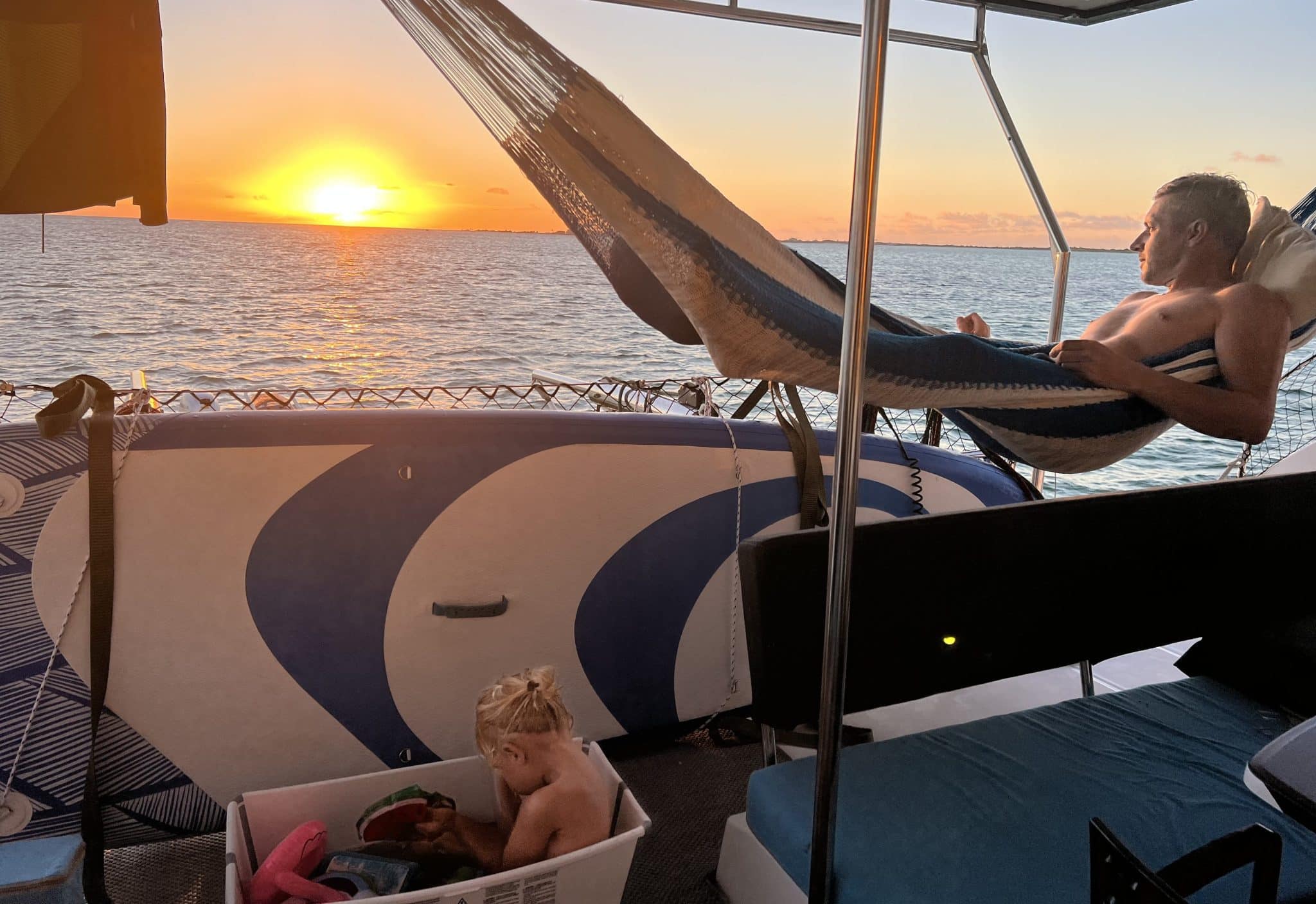 Gyvename ir keliaujame su 14metrų katamaranu. Prieš pasirenkant laivo tipą išbandėme visus ir supratome, kad būtent katamaro tipas mums labiausiai priimtinas dėl didesnio ploto turėjimo.