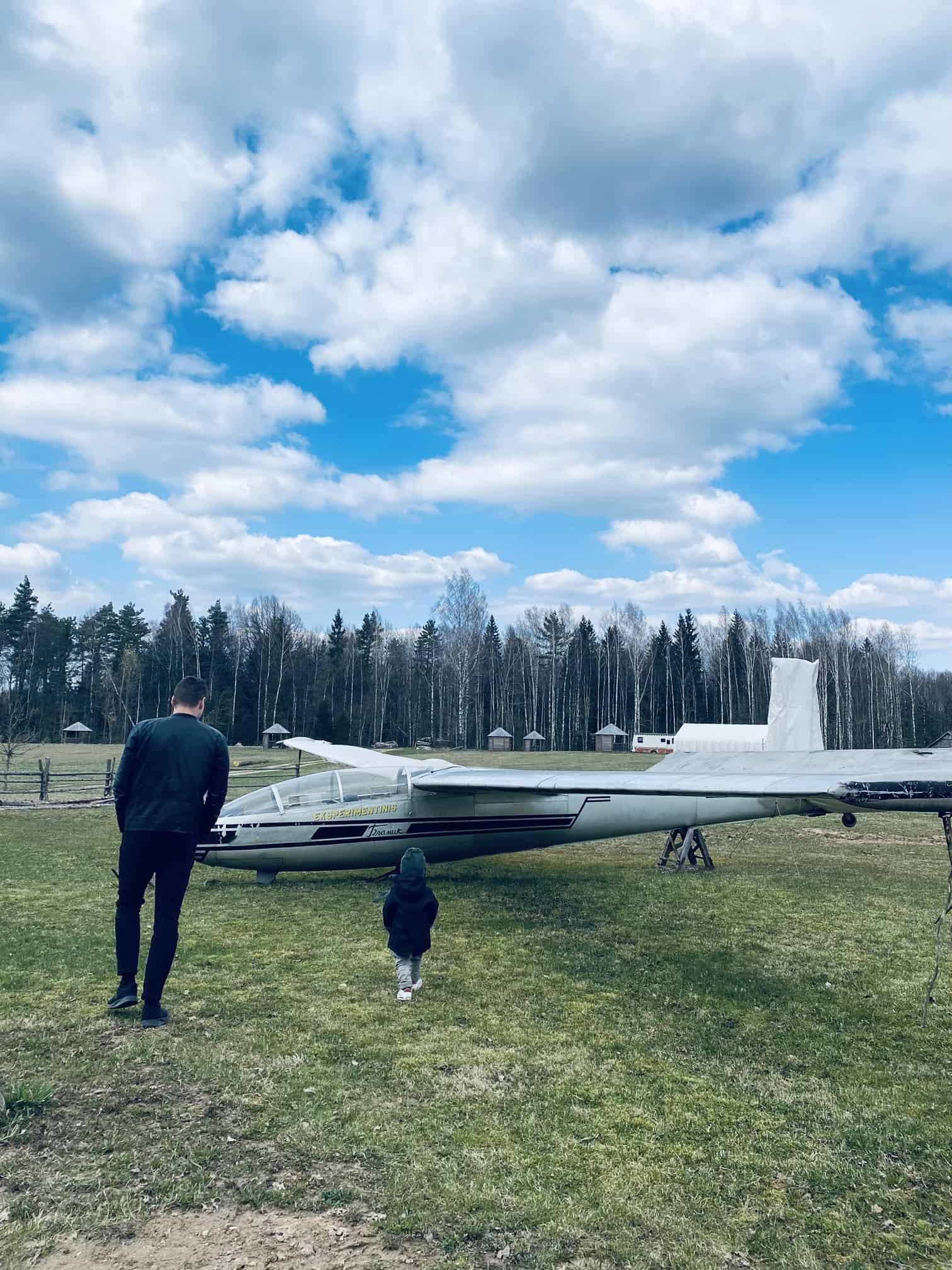 Adomui labai patiko lėktuvas, jų ten visokių dekoratyvinių matėm ne vieną. Suoleliai, gėlynėliai. O šalia šiems laikams pritaikyta vaikų žaidimų aikštelė ir su supynėm, ir su laipynėm. Su apžvalgos bokštu.