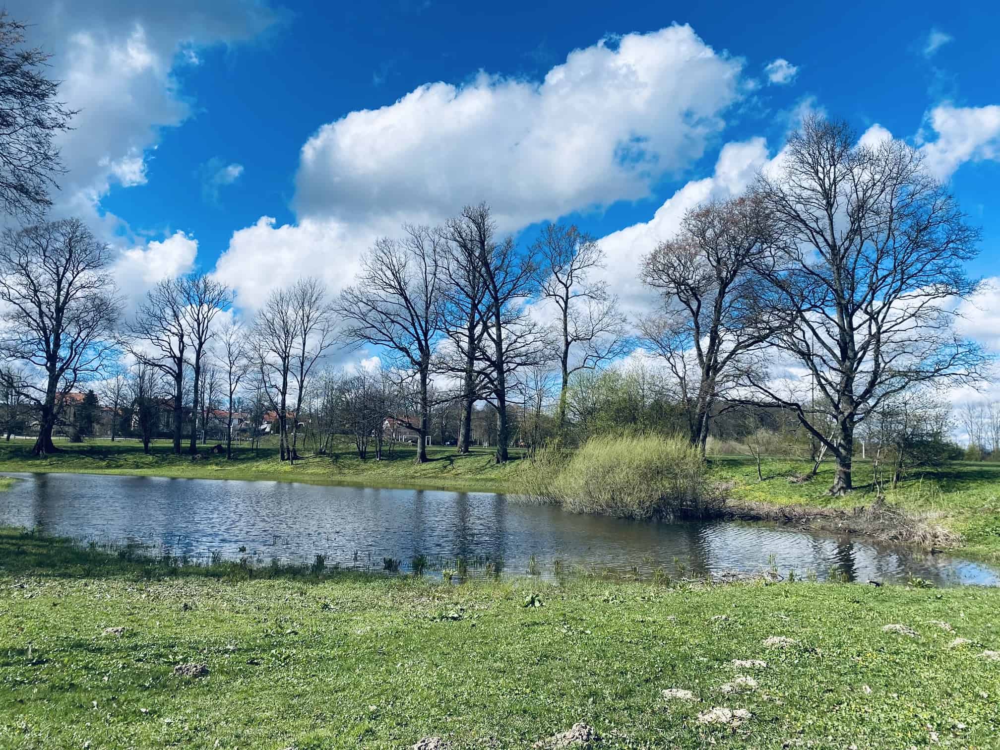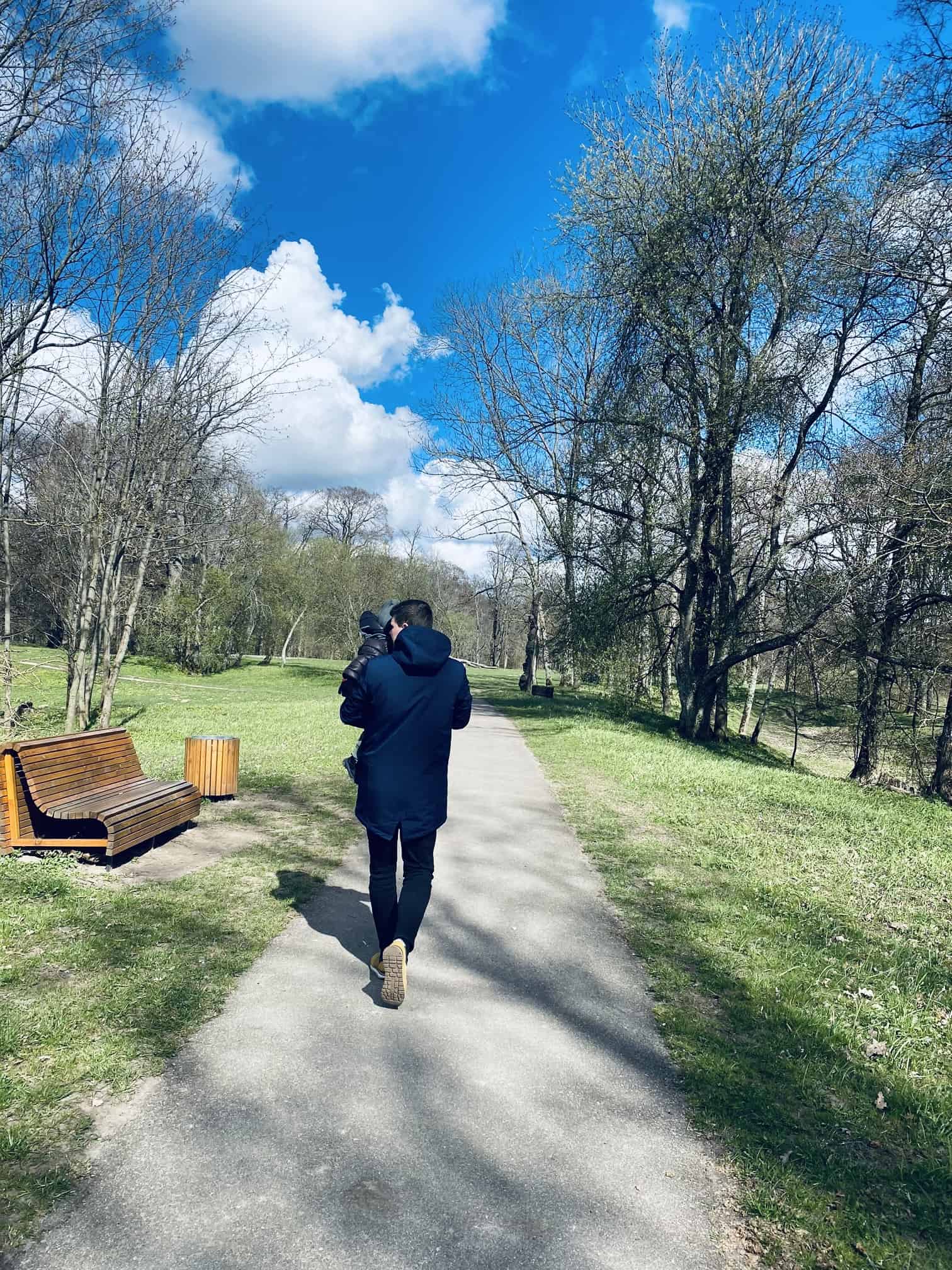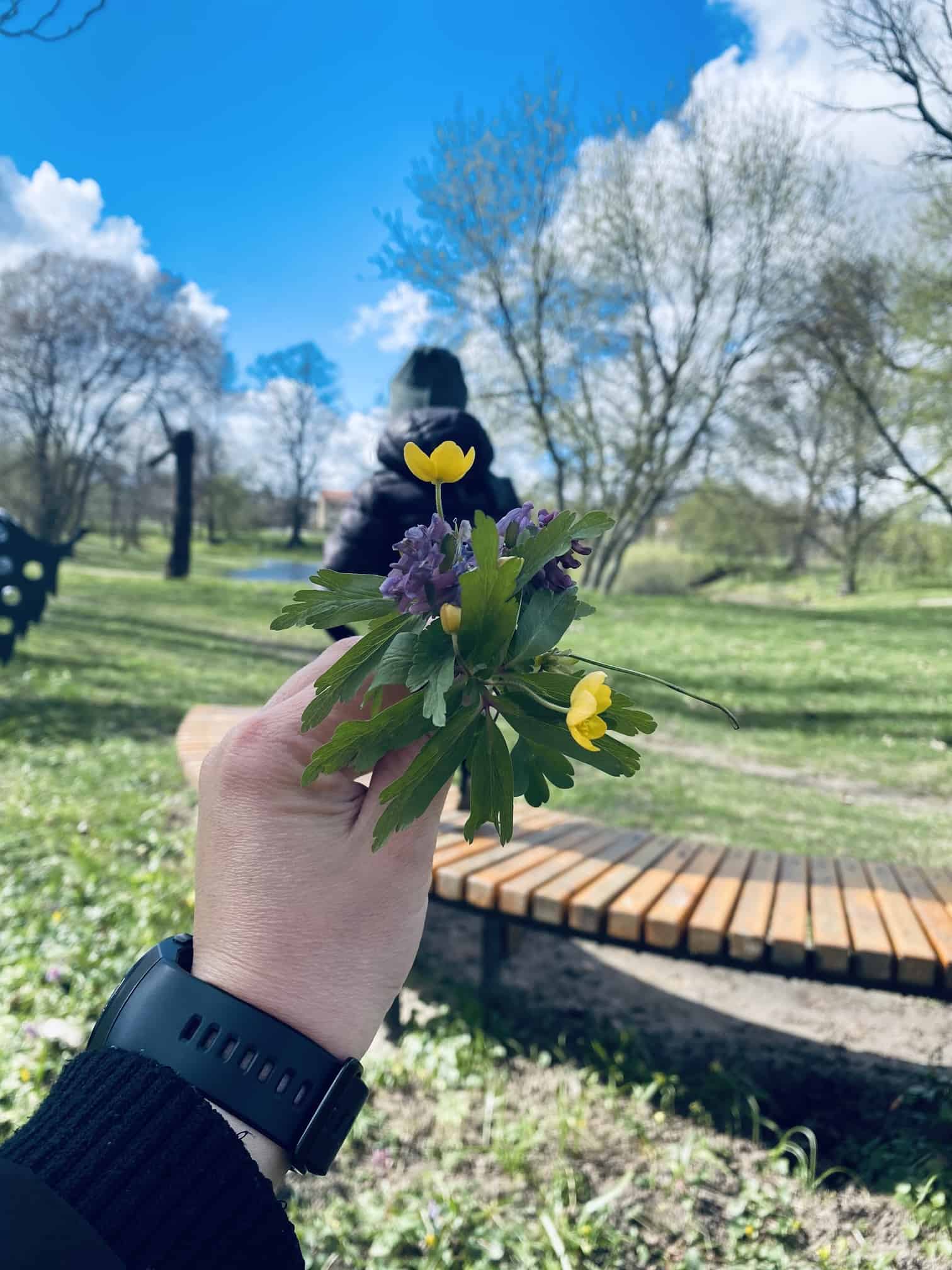 Kaip ir būdinga pavasariui, gamta atbunda ir visa žolė žydi mažomis baltom ir geltonom gėlytėm. Labai daug suoliukų, prie kas antro šiukšlinė, ko dažnai pasigendame.