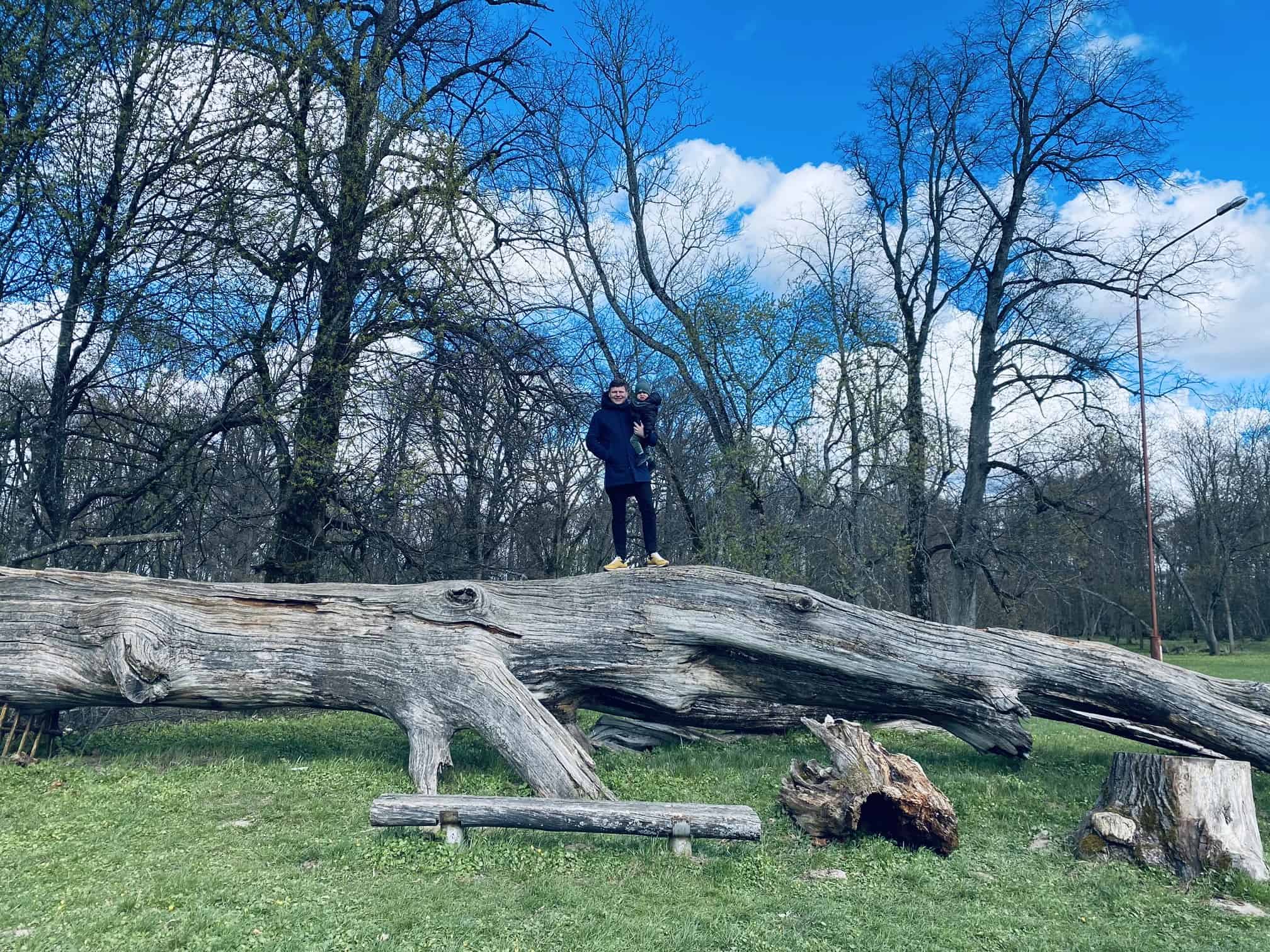 Kalniškių piliakalnis lyg Alpės mažesniu masteliu: kalnelis, takelis, miškelis, upelis… Nuo viršūnės atsiveria miesto panorama, matosi Gargždų bažnyčia, kelias, na o viršūnę mūsų 1 metų ir 5 mėnesių Adomas pasiekė pats! Rimtai!
