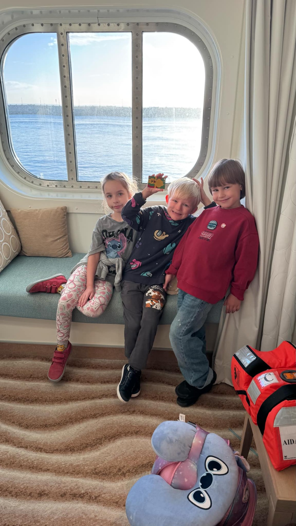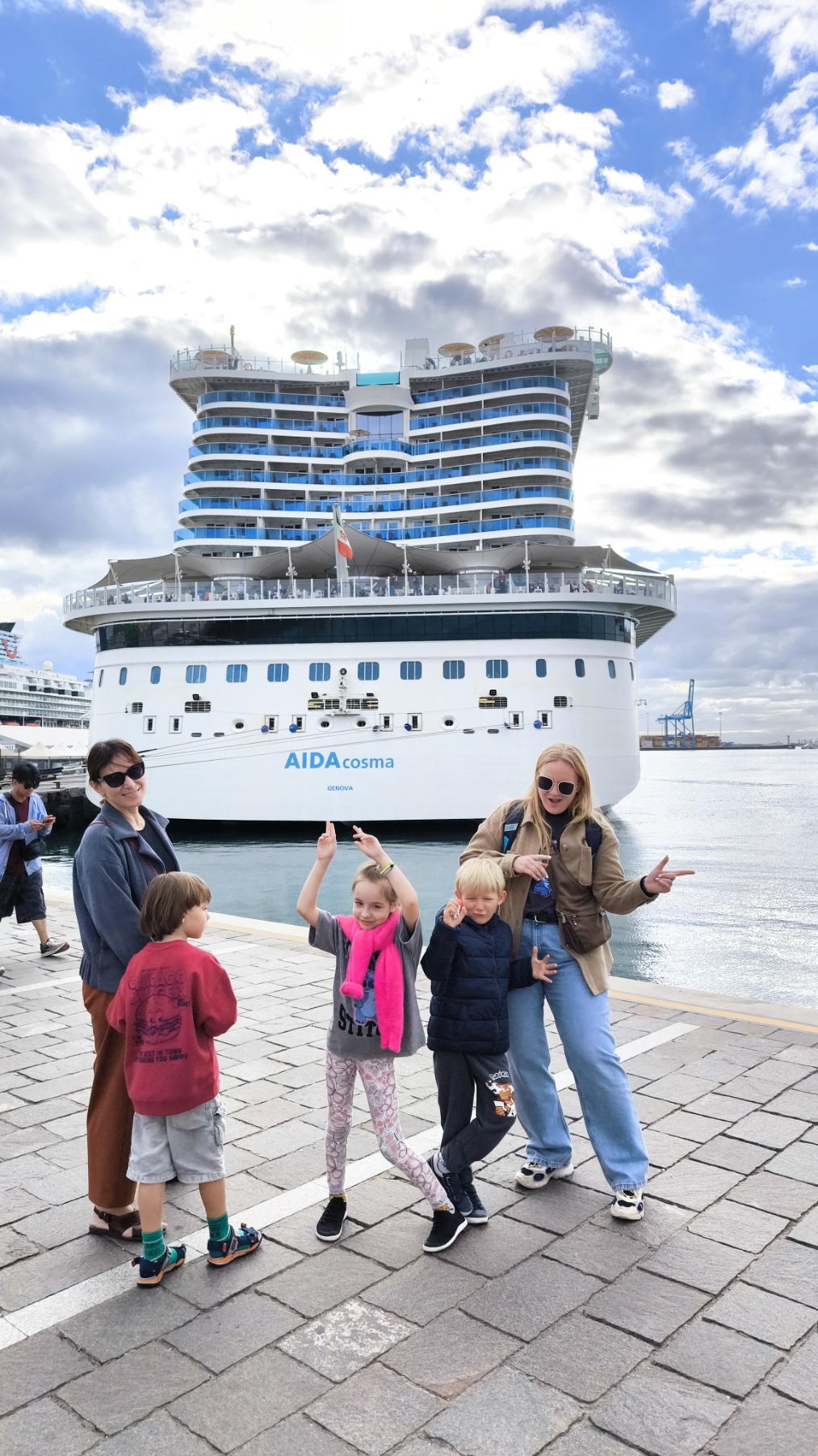 Šios kelionės metu vykome milžinišku 18-kos aukštų laivu AidaCosma. Net tarp kitų kruizinių laivų uoste jis išsiskyrė savo dydžiu. Tad supimo tikrai nesijautė. O dėl vaikų kaip tik reikia bijoti mažiausiai, nes jie dažniausiai adaptuojasi lengviau nei suaugę. Na, ir visada po ranka reikia turėti priemonių nuo supimo, jei kažkas pakryptų netikėtai.