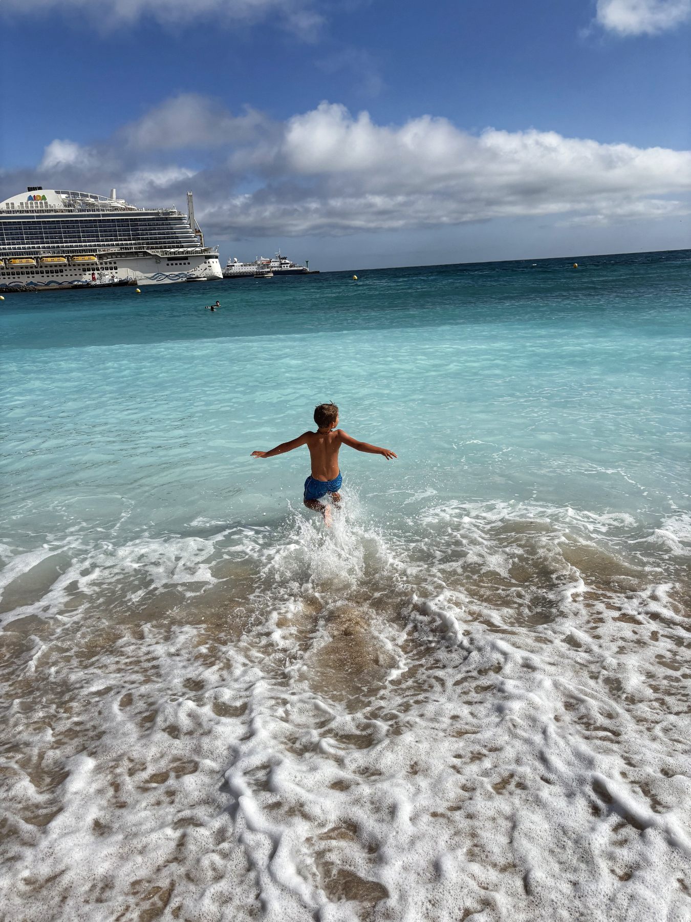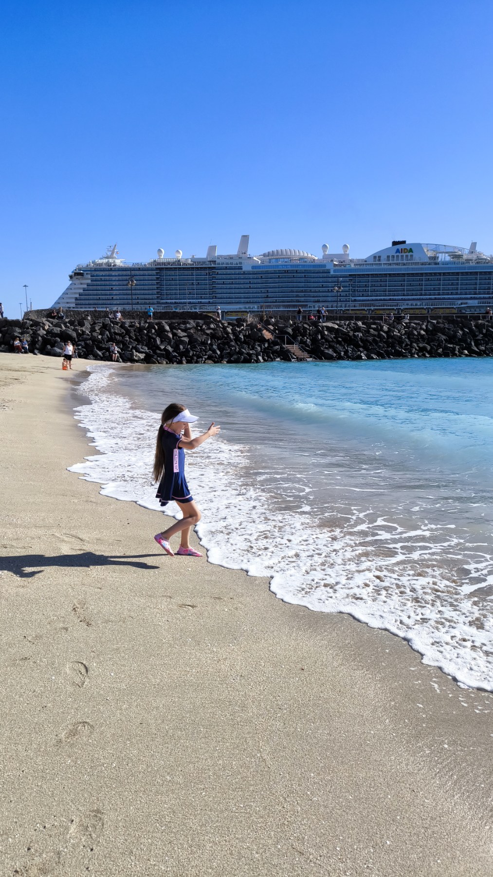 Be nuotykių neapsieina nei viena bendra mamų kelionė, bet nuo to prisiminimai lieka tik įdomesni. Vaikai staigmenų mums nepateikė šįkart. Be abejo, kelionėse būna visko. Draugauja, žaidžia, kol staiga „nebesutelpa” milžiniškame paplūdimyje ar juo labiau bendruose apartamentuose ar net kajutėje… Tai tenka mamos tikrai ir taikytojų vaidmeny pabūti. Bet kaip užpuola „ožiukai”, taip ir pabėga, nes juos nustelbia vis nauji įspūdžiai. Bet šioje kelionėje staigmenų mums pateikė gamta ir kiti dalykai, kurių nuspėti neįmanoma. Teko atšaukti ekskursiją Gran Kanarijoje, nes ekskursijos rytą susirgo gidas. Bet išsprendėme šį klausimą paprastai – apsilankėme savarankiškai Maspalomas kopose Gran Kanarijoje. Bet grįžus į laivą, mūsų laukė dar viena staigmena. Kapitonas pranešė, kad į taip lauktą Madeirą nebeplauksime dėl ypatingai stipraus vėjo ir jo sukeltų net iki 6 metrų aukščio bangų vandenyne. Taip teko atsisveikinti su planais išvysti Madeirą, bet tikrai apsidžiaugėme, kad neteko susipažinti su šėlstančiu vandenynu ir jūros liga 😄 Be to, sekantį rytą man pačiai sukilo temperatūra iki 39 laipsnių, tad tą dieną kai turėjome vaikščioti Madeiros levadomis ir grožėtis vaizdais, aš pragulėjau kajutėje. Bet visi vaikai ir mamos tikrai puikiai leido laiką ir laive, ir į vietoje Madeiros aplankytoje La Palmos saloje. Tai yra labai didelis privalumas keliaujant bendromis grupėmis mamų, nes žinai, kad vaikais ir viena kita pasirūpinsime – nesvarbu kam atsitikus. Laimei, virusas pasitraukė labai greitai, tad po paros įsiliejau į smagiai klegantį bendrakeleivių būrį.