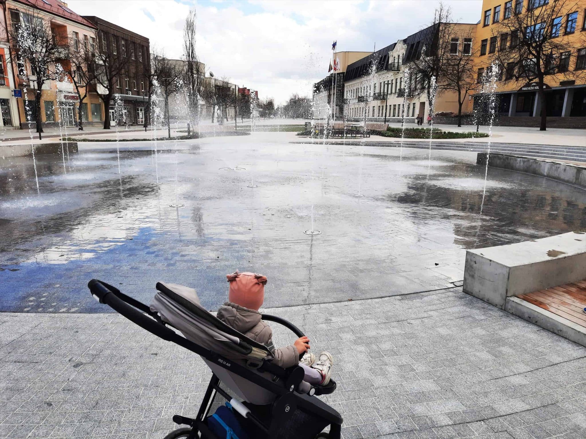 Kelionę pradėjome pačiame miesto centre – Laisvės aikštėje. Ši aikštė – pagrindinė Panevėžio miesto centro vieta, kurioje vyksta pagrindiniai miesto renginiai, įsikūrusios nedidelės parduotuvės, kavinės, miesto savivaldybė ir Panevėžio plėtros agentūra, kurioje rasite visą reikiamą informaciją apie Panevėžio miesto lankytinas vietas bei galėsite įsigyti suvenyrų. Visai neseniai Panevėžio Laisvės aikštė buvo atnaujinta ir įgavo naują, žavų veidą. Atnaujinti pėsčiųjų-dviračių takai, įrengtos terasos, suoleliai, poilsio zonos, šachmatų stalai, fontanas, kiti įdomūs elementai. Taip pat įrengta puikiai į bendrą aikštės vaizdą įsiliejusi vaikų žaidimų aikštelė, kuri vaikams labai patiko. Paprasti aikštelės elementai, tačiau vaikų fantazijos dėka tampantys įdomiais. Ypač kalnelis ir grojantis burbulas.