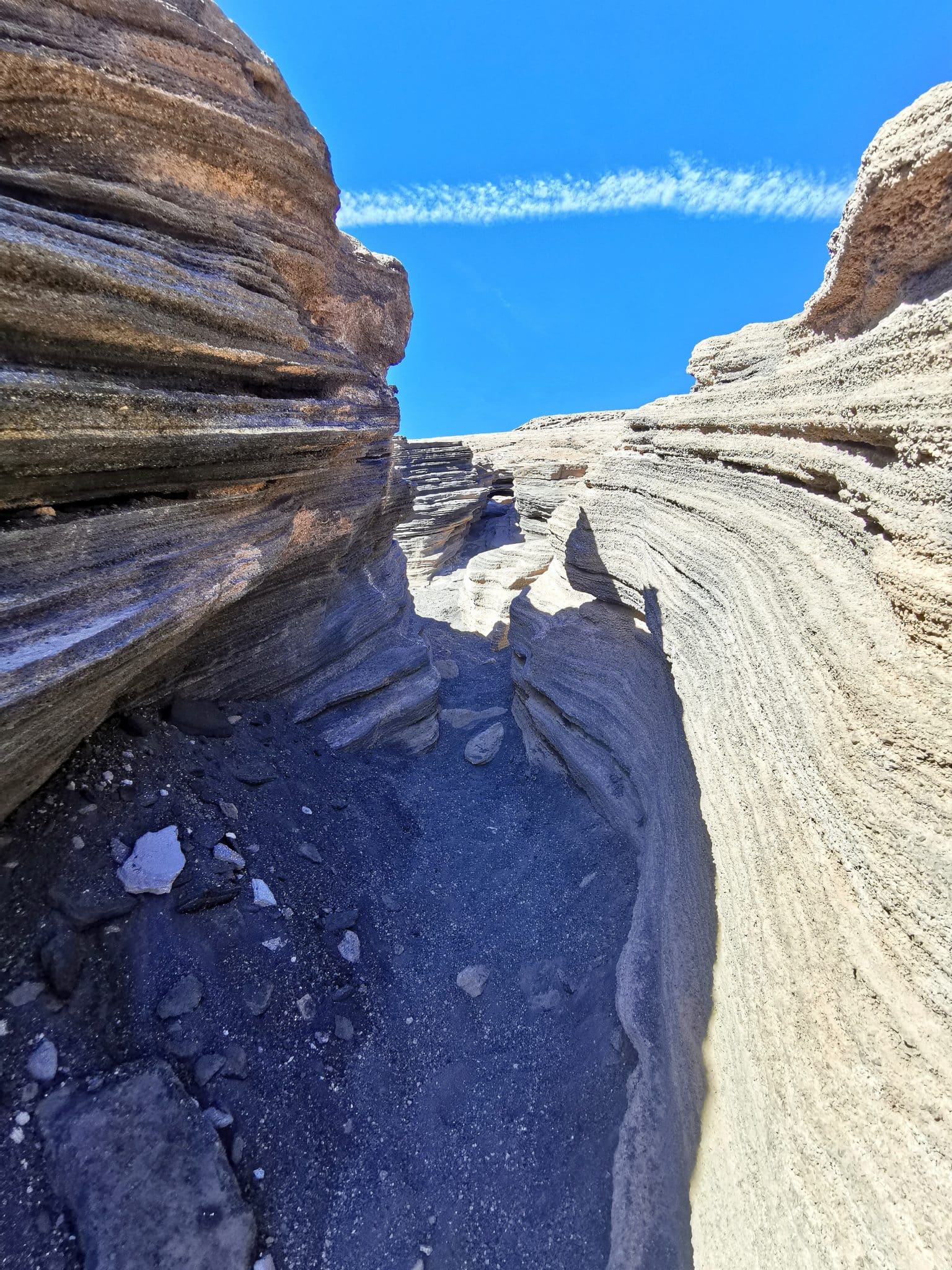 Šie maži kanjonai bėgant metams buvo išraižyti į Montaña Blanca, nuolat veikiant vandeniui. Iš viso yra trys plyšiai, kuriuos skiria vos keli metrai. Įdomiausias yra pagrindinis, bet per juos visus galima praeiti. Būtinai apsiaukite tinkamą avalynę, nes čia yra labai daug į žvyrą panašaus pagrindo. Kanjonų plyšiuose pakankamai „slidu”, dėl labai mažų vulkaninės kilmės akmenėlių. Trimečiui, tai nesudarė problemų, jis tiesiog nusiėmė batus ir ėjo basas…