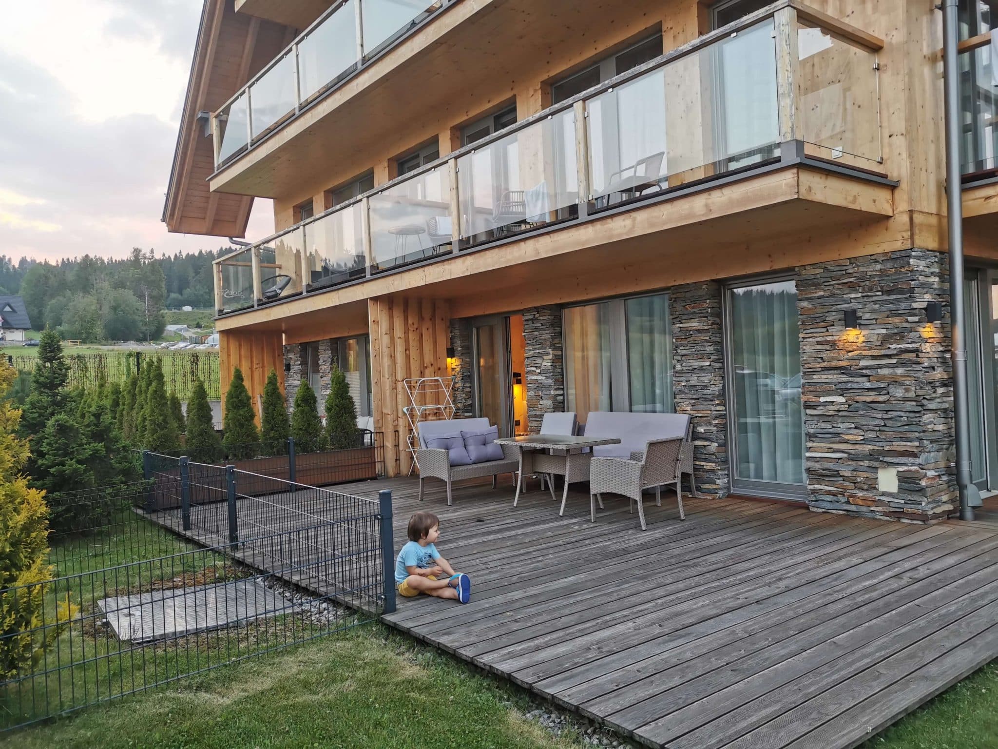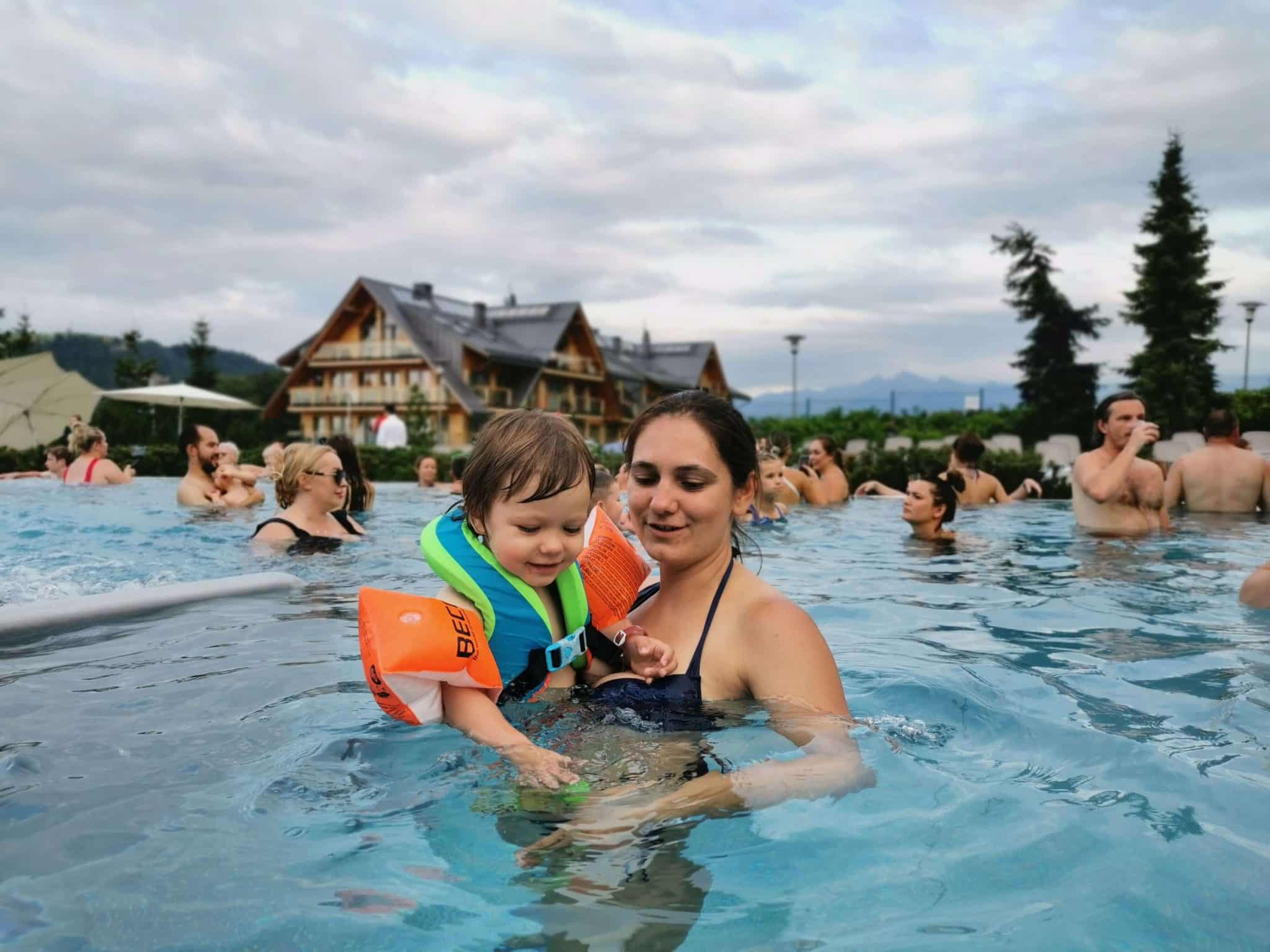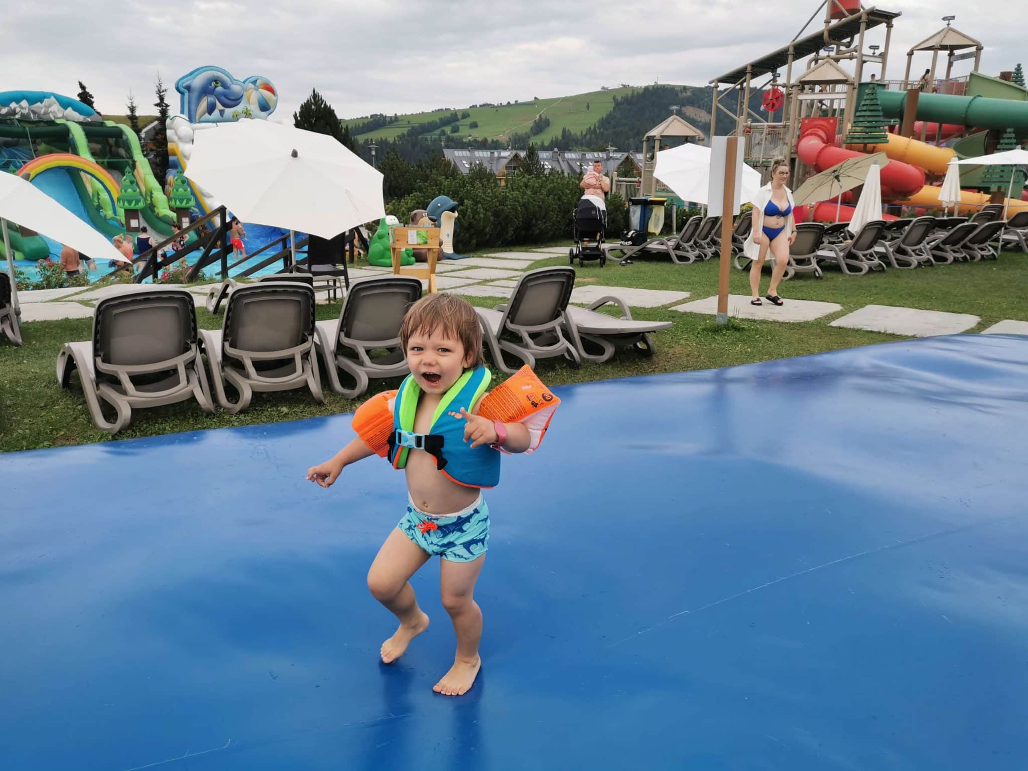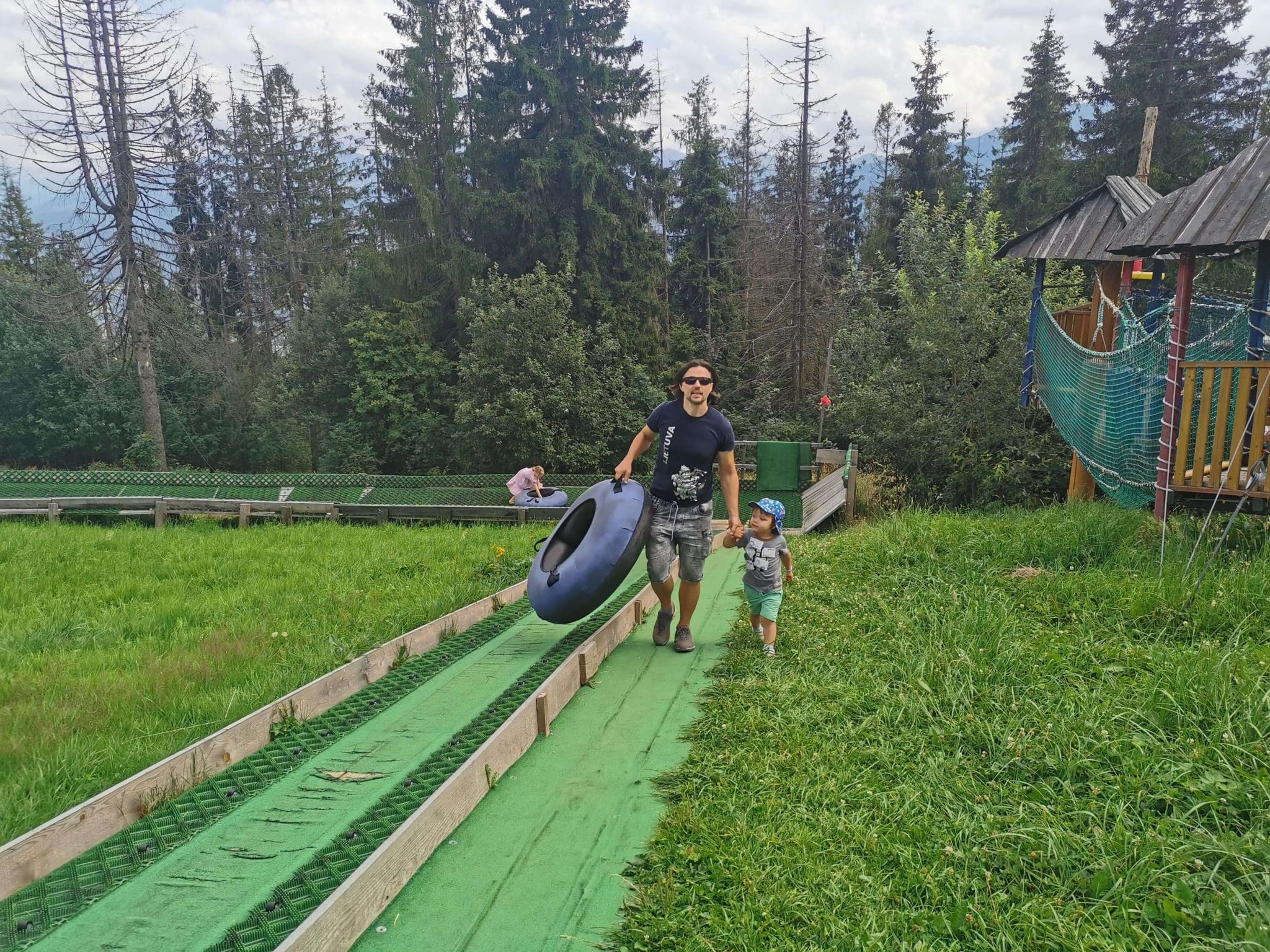 Ryte stotelė jau Varšuvos Auchane prieš vaiko pietų miegelį, daug kilometrų, kažkiek degalinių pakeliui ir vakarienei pasiekėm Białka Tatrzańska (šioje vietovėje galite rinktis net iš beveik 200 viešbučių ir apartamentų čia) Čia mes ir pernai buvom apsistoję. (Kokie mes neoriginalūs! Spėkit kodėl? Nes pasirodė patogiau ir pigiau nei Zakopanėj apsistojant su vaikais). Mus pernai taip džiuginęs apartamentų viešbutis per metus pabrango, tai taupydami apsistojome apartamentuose be pusryčių už 150 metrų. Bet vakarienės ir šiemet keletą kartų ėjom į tą patį pernykštį viešbutį. Nes todlerių tėvams ten atgaiva – Aparthotel Białczański: didelė žaidimų aikštelė su putplastinėm čiuožyklom į kamuoliukų baseiną tiesiai priešais tėvų vakarienės stalą, maistas skanus, kainos normalios. Tiesa, pastebėjom, kad Lenkijos kalnų regione labai įprasta kavinėse/viešbučiuose turėti didelę vidinę žaidimų aikštelę/kambarį. Tik štai į kelias kitas kavines bandėm eiti (į vieną ir nuėjom), bet ten tas žaidimų kambarys rūsyje po restoranu, vadinasi jei vaikai per maži pasilikti vieni, kažkam iš tėvų teks aukotis ir „scrollinti“ telefoną rūsyje, kol likę šnekučiuosis ir gurkšnos viršuje.