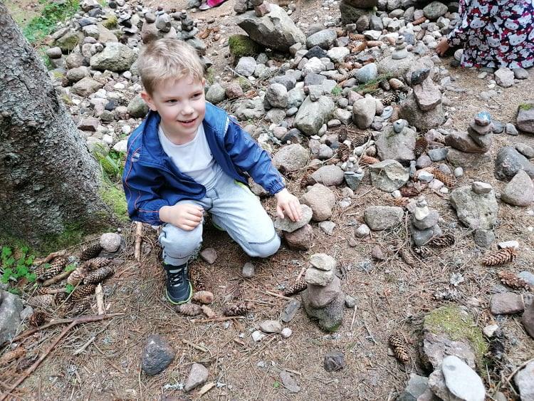 Mes ir čia mėgstame surengti konkursą. Statome akmenukų pilis. Reikia sustatyti aukščiausią, kitą kartą, kuo daugiau akmenukų vieną ant kito ir pan. Čia norų labai daug, todėl svarbu stengtis nepajudinti kitų žmonių svajonių…