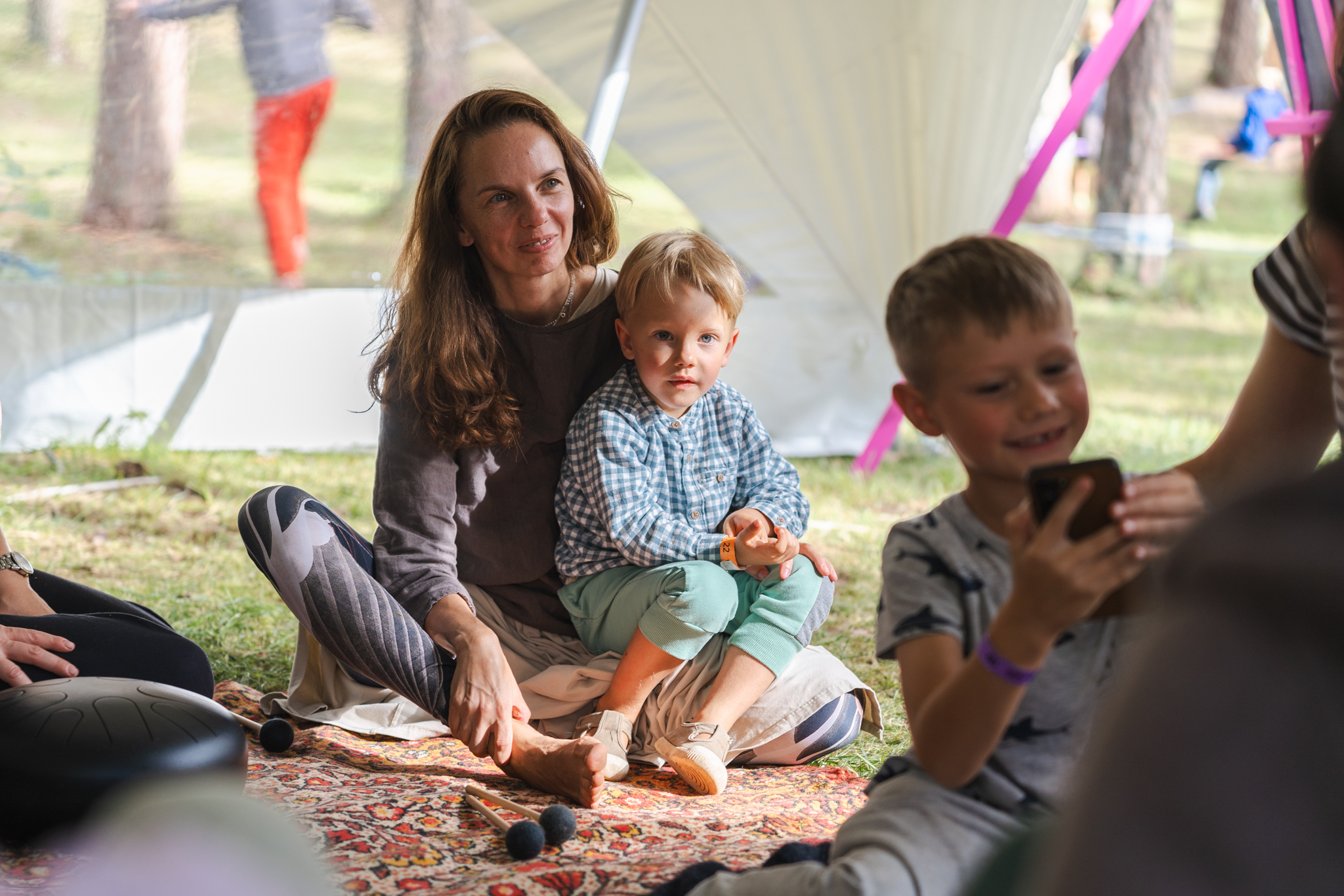 Festivalyje vaikais rūpinasi ne animatoriai, o patyrę stovyklos geradariai. Sudarome sąlygas vaikams patirti vaikystę – basas kojas, laisvą žaidimą, miško takus ir naujas draugystes. Tuo tarpu tėvai, išleidę vaikus ganytis prižiūrimoje vaikų pievoje, gali pasinerti į daugiau nei šimtą paskaitų ir praktikų – nuo meditacijos iki gilių pokalbių apie santykius, lyderystę, finansus ar sveikatą. Festivalis rūpinasi jūsų vaikais, o jūs – savimi.