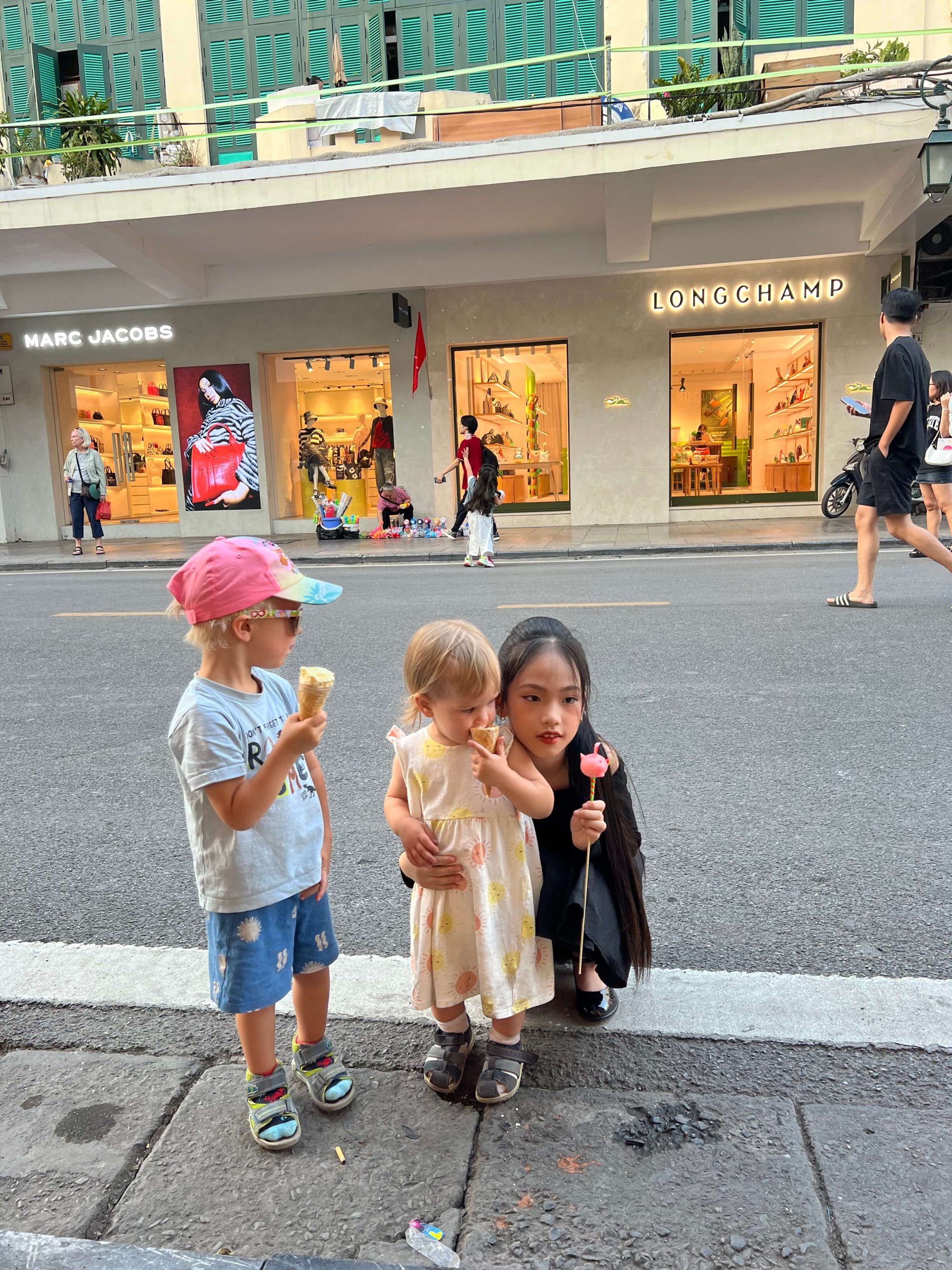 - Žaidimų aikštelių beveik niekur nėra (pora matėm tik Ho Chi Minh). Kavinių su vaikų žaidimų kampeliais taip pat nėra, tačiau beveik kiekvienoje kavinėje sutikdavome kates arba šunis, tai kaip ir užsiskaito.