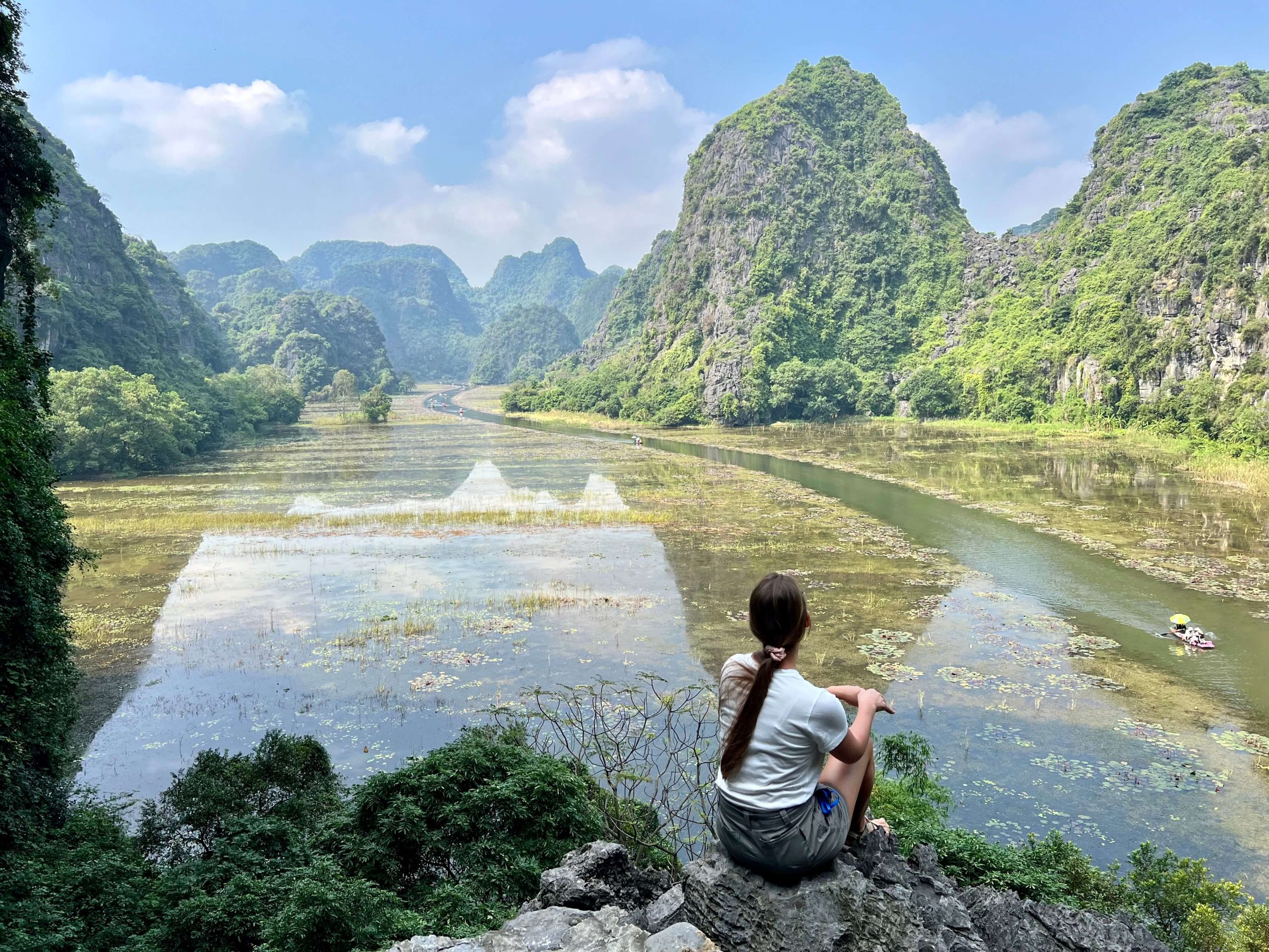 Tam Coc – mažas miestelis Ninh Binh provincijoje mums labai patiko. Nors vieta labai turistiška, turi daug autentikos ir žavesio. Dauguma atvyksta su dienos turais iš Hanojaus, bet mes pasilikome kelias dienas, kas pridėjo daug jaukumo, nes miestelį tyrinėjome nestandartiniu laiku, išvengdami organizuotų turų ir minios žmonių. Plaukimas upe tarp karstinių uolų kojomis irkluojamomis valtimis buvo įspūdingas, taip pat ir vaizdas nuo Mua urvo užlipus 500 laiptų. Panorama atrodė kaip iš drono, tačiau iš tikrųjų viskas matoma savo akimis.