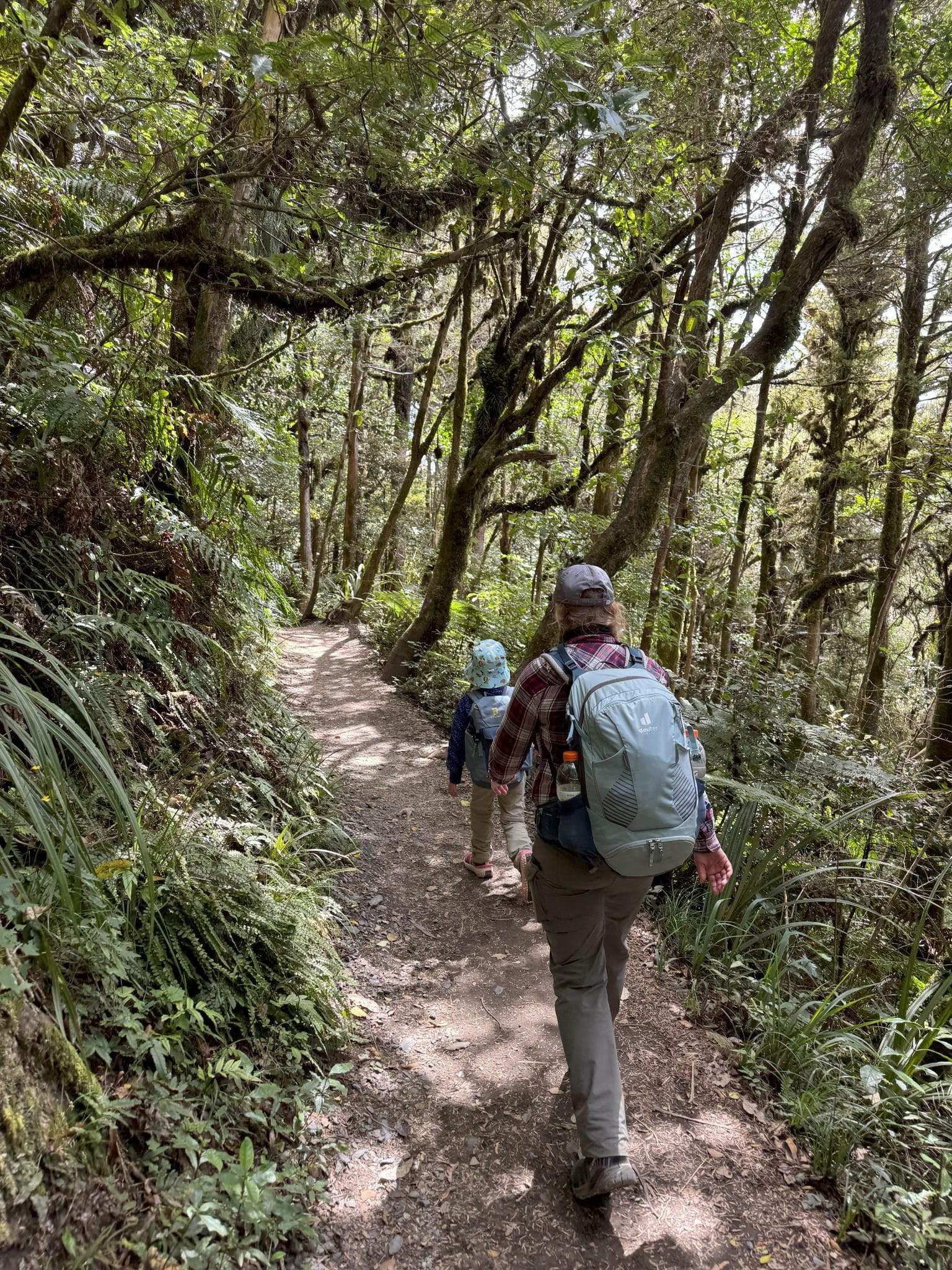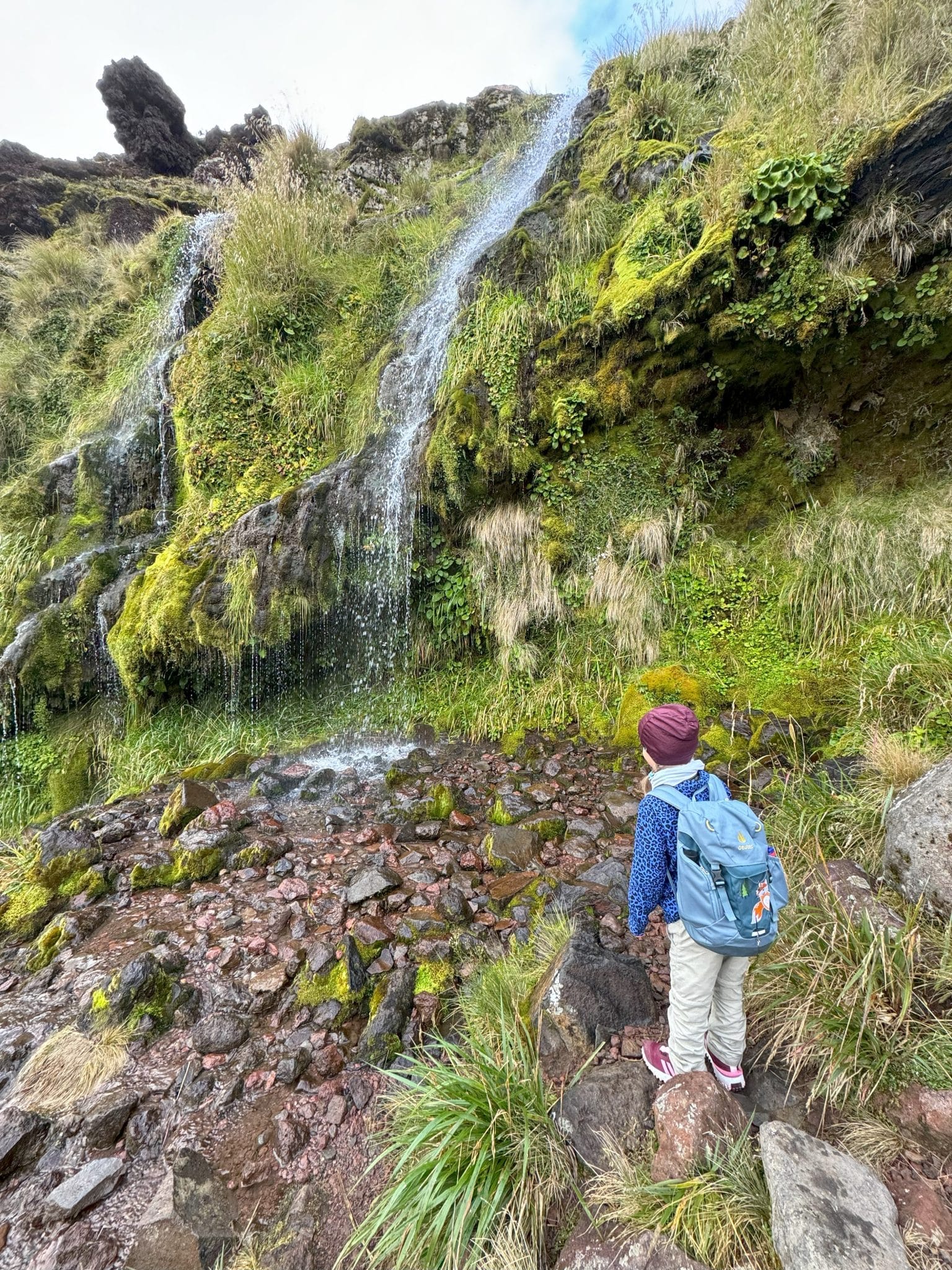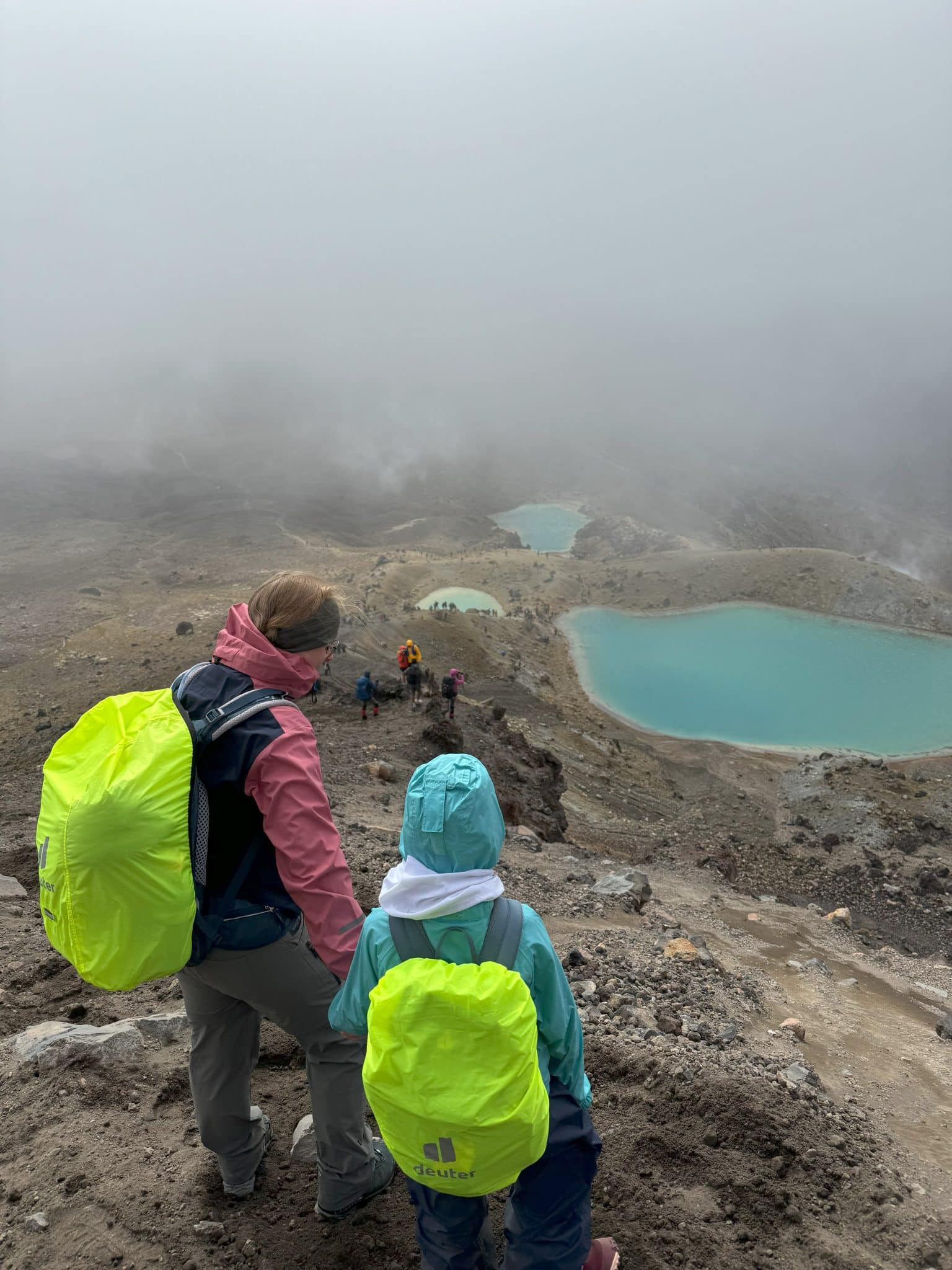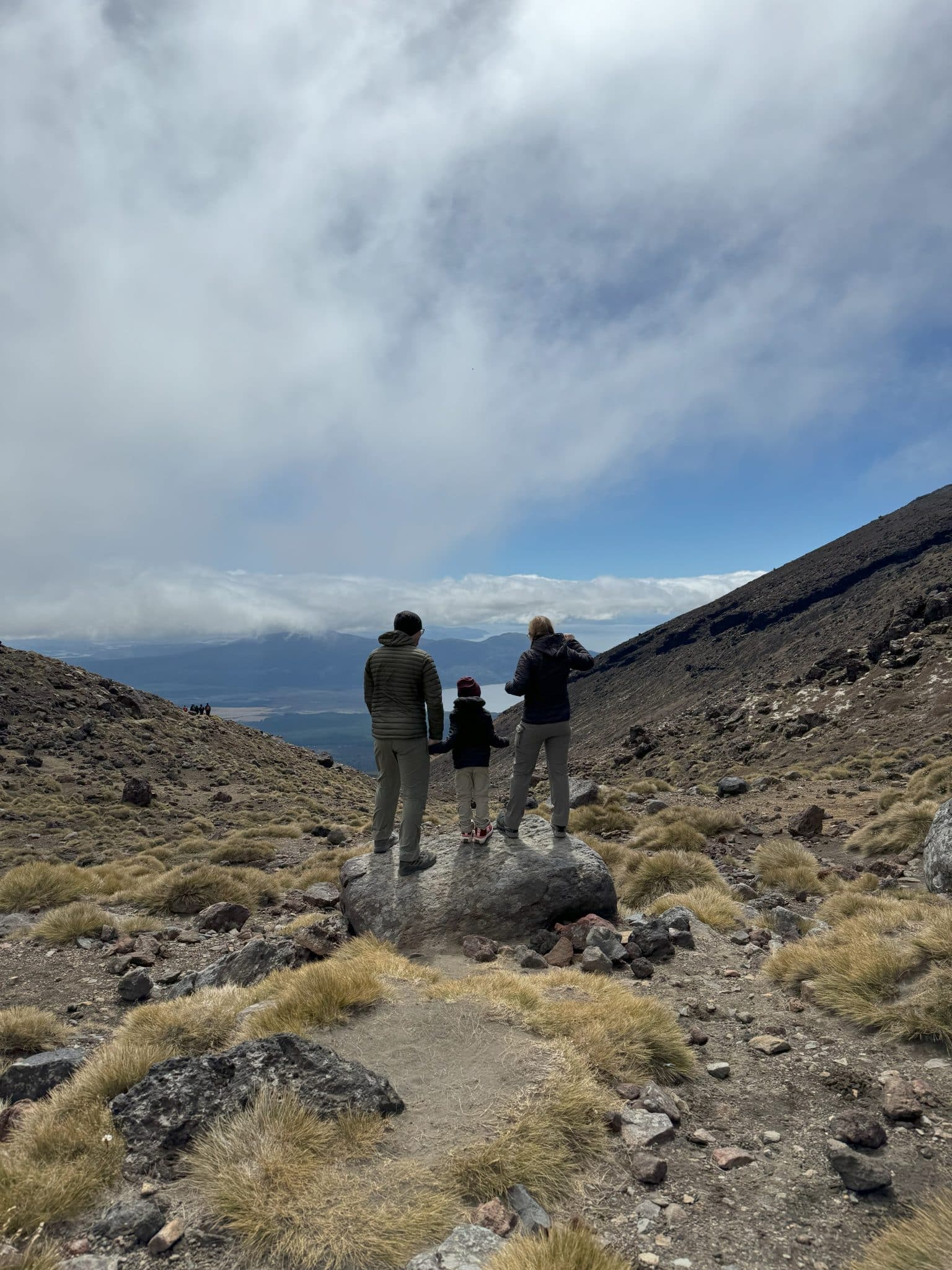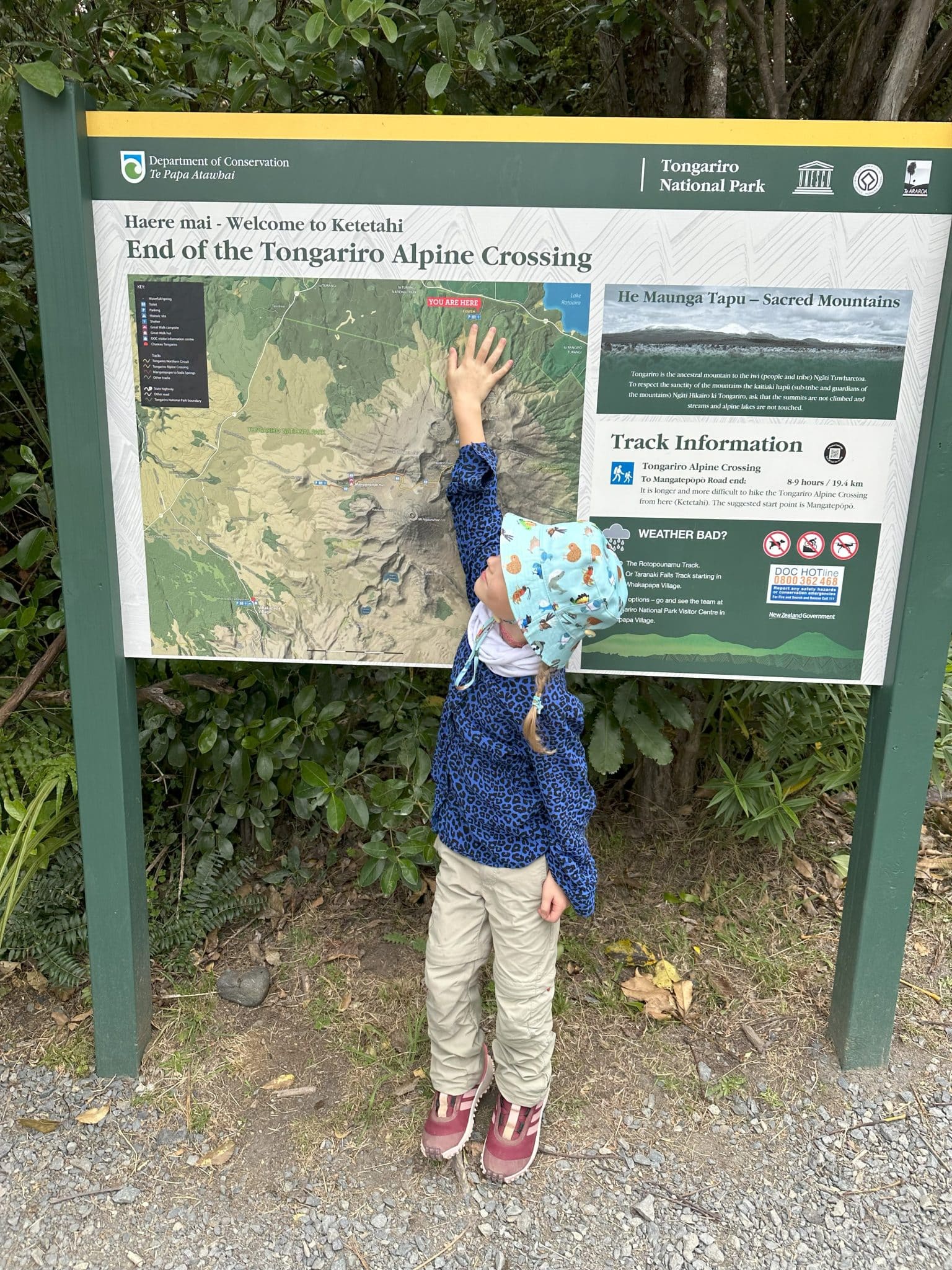 14 d. 5 val. ryto ir mes keliaujame iki Tongariro automobilių aikštelės. Iš ten mus paima transferis ir nuveža iki žygio trasos pradžios. Maori kultūroje kiekvienas žmogus turi pereiti Tongariro ugnikalnio kelią. Oras apsiniaukęs, tad pasiruošę visiems keturiems metų laikams pradedame žygį. 22 km žygis truko 9 val. su šešiamete, bet kalnas ir orai kaprizingi, tad reikia pasverti ir nerizikuoti eiti, jeigu vaikas iki tol nėra ėjęs didesnių atstumų. Vakare grįžę, važiuojame į terminius baseinus atsipalaiduoti.