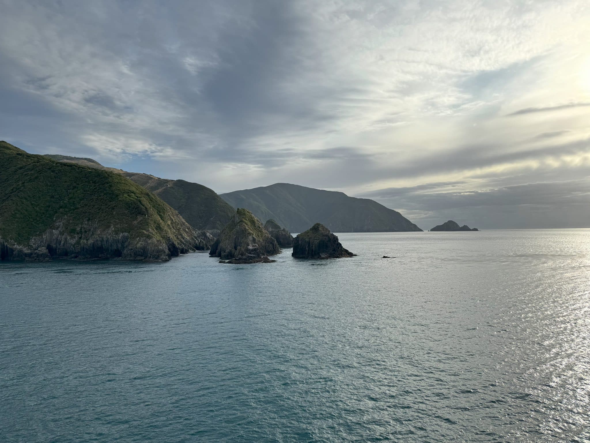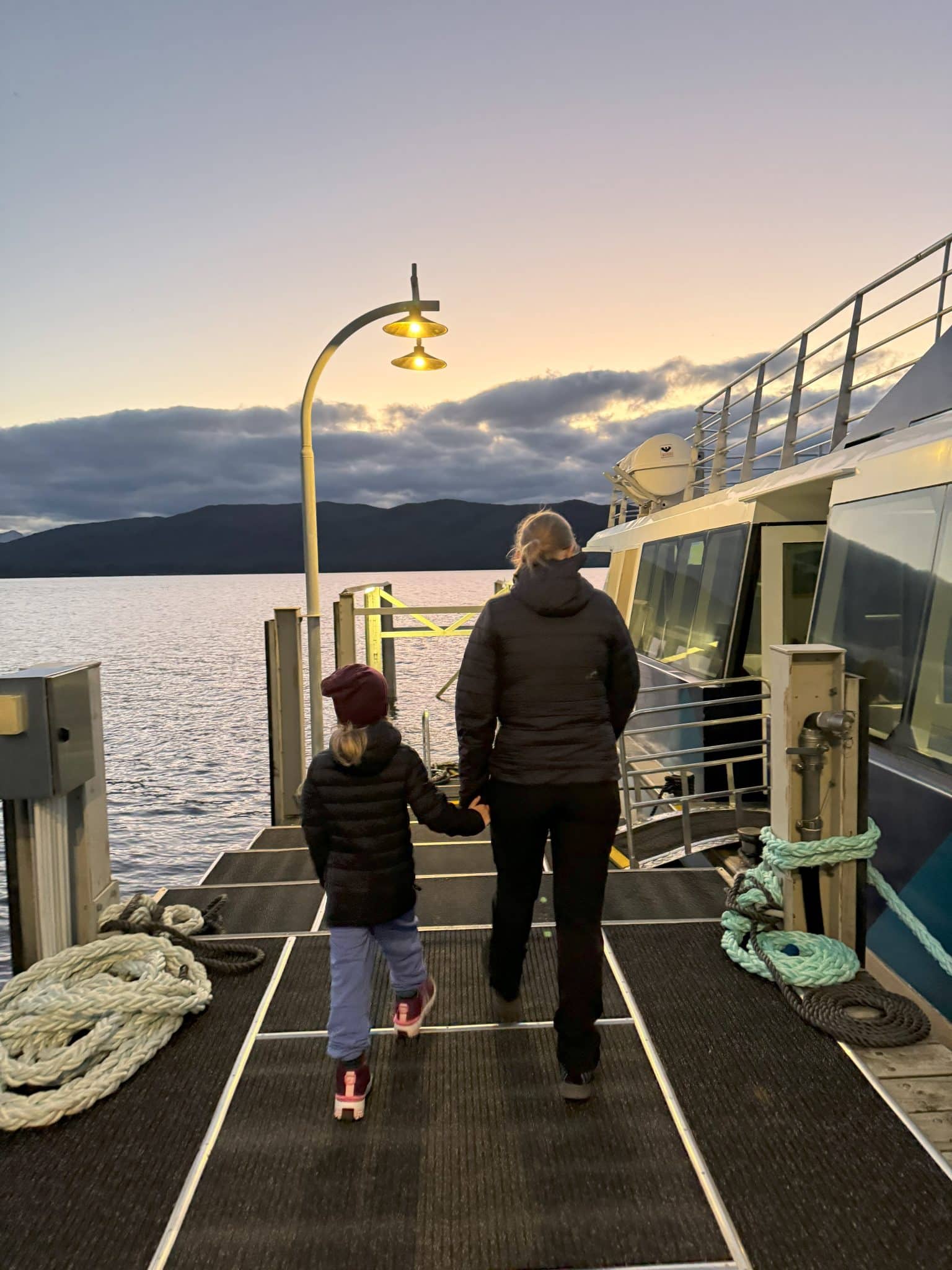 13 d. Ankstyvas rytas, keltu keliamės į Šiaurinę salą. Turime registruotis likus dvi valandos iki išplaukimo. Keltas didelis, pasistatę mašiną einame į viršų įsikurti kelionei, laukia 4 val. kelionė. Kelte erdvės yra skirtingos, radome ir vaikams zoną. Galima užlipti ant denio pasižvalgyti. Kelionė neprailgsta. Atplaukę į Wellingron neužsibūnam, keliaujam toliau iki Turangi, nes iš čia suplanuotas šios kelionės žygių žygis.