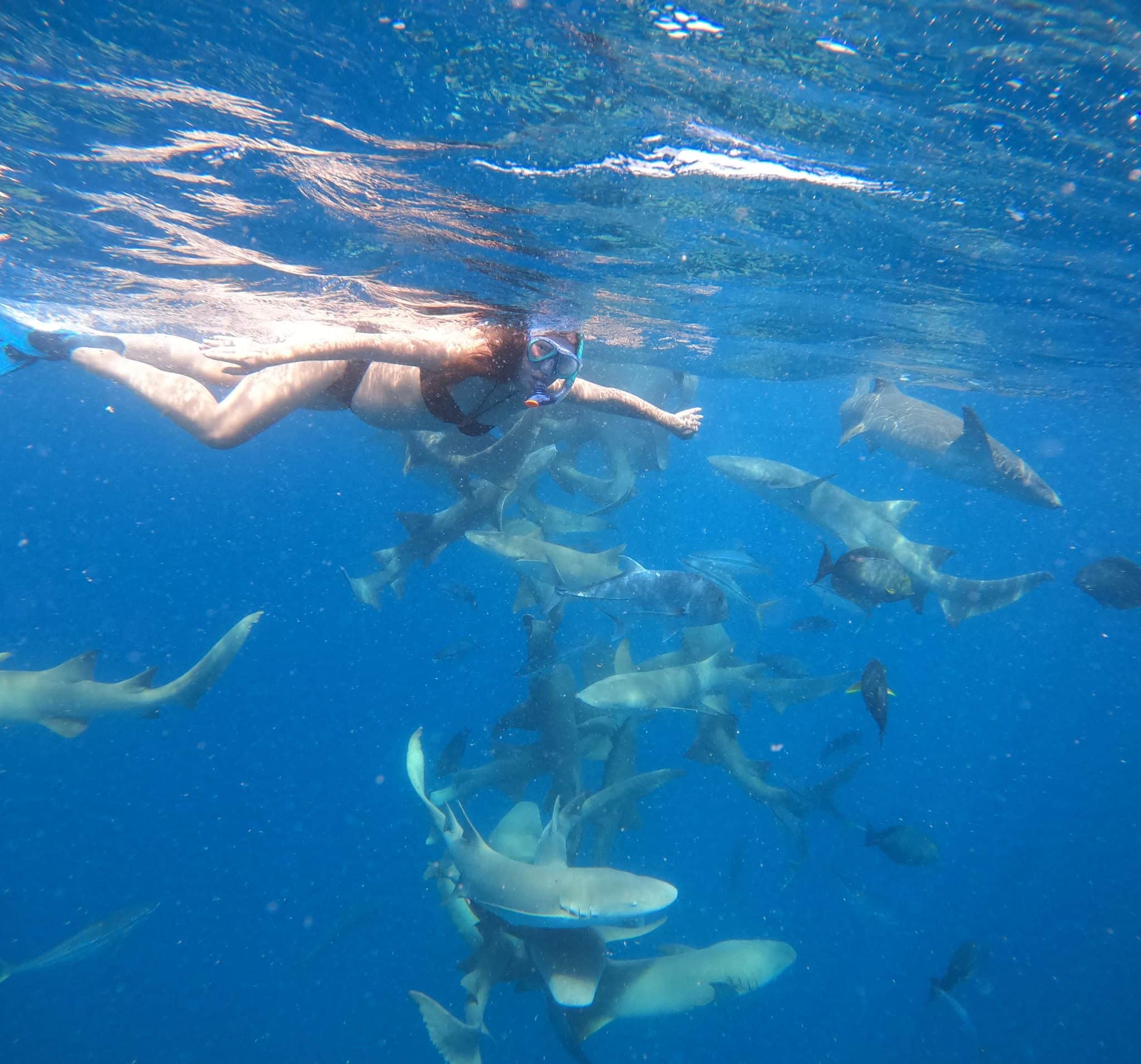 Goda Brusokė: ,,Mano drąsiausias dalykas, kurį dariau nėščia – pasiplaukiojimas su rykliais Maldyvuose!. Baisu nebuvo, nes paviršinis nardymas yra mano mėgstamiausias užsiėmimas, o ir šie rykliai žmonėms nepavojingi.”